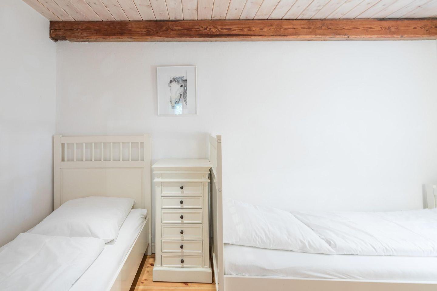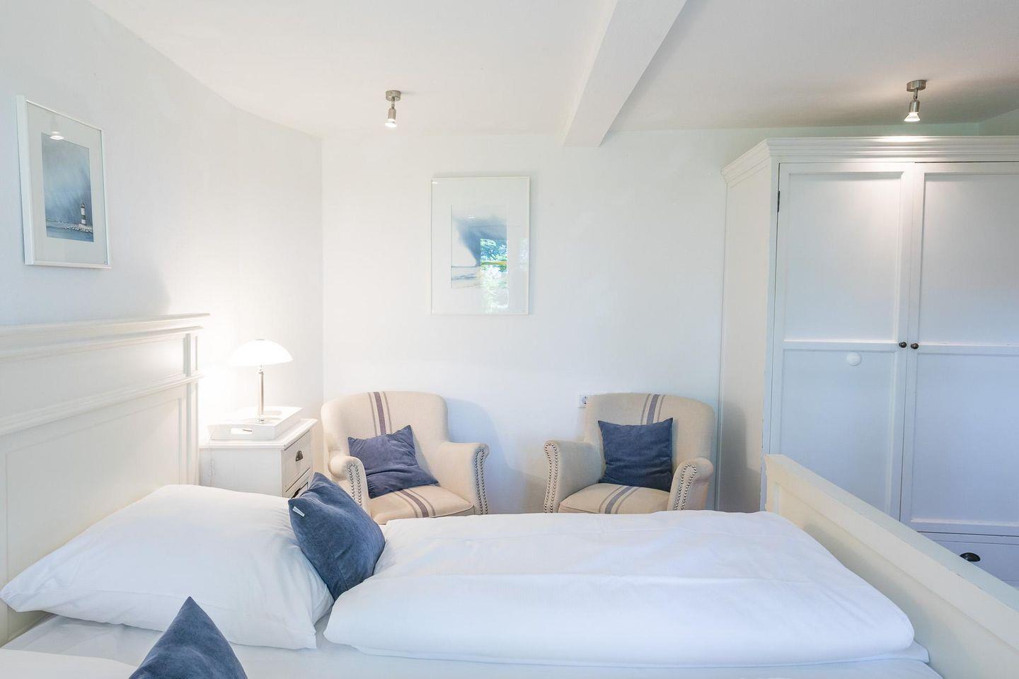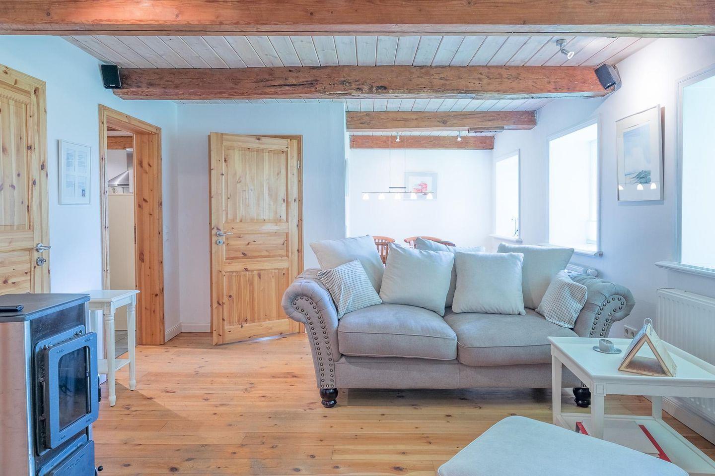 Das 2012 vollständig sanierte Haus ist luxuriös mit Sauna, Whirlpool und Kaminofen für Ihren Wellness-Urlaub ausgestattet. Exklusive Möbel im Landhausstil bilden den Rahmen für Originalgemälde von Künstlern. Eine Heimkinoanlage mit Dolby-Surround ergänzt den Wohnbereich. Die große Küche ist für anspruchsvolle Hobbyköche mit Induktionsherd ausgestattet. Die beiden Schlafräume sind hochwertig möbliert. Dabei wurde Wert auf rückenfreundliche Matratzen sowie einen separaten Arbeitsplatz gelegt. In einem Schlafzimmer befindet sich ein Doppelbett (180 x 200), im anderen Schlafzimmer zwei Einzelbetten. Der Whirlpool im Wellnessbereich verfügt über Ozon-Reinigung (chlorfrei!), die Sauna über einen Bio-Kombiofen. Ein großer, eingezäunter Garten umgibt das Haus.