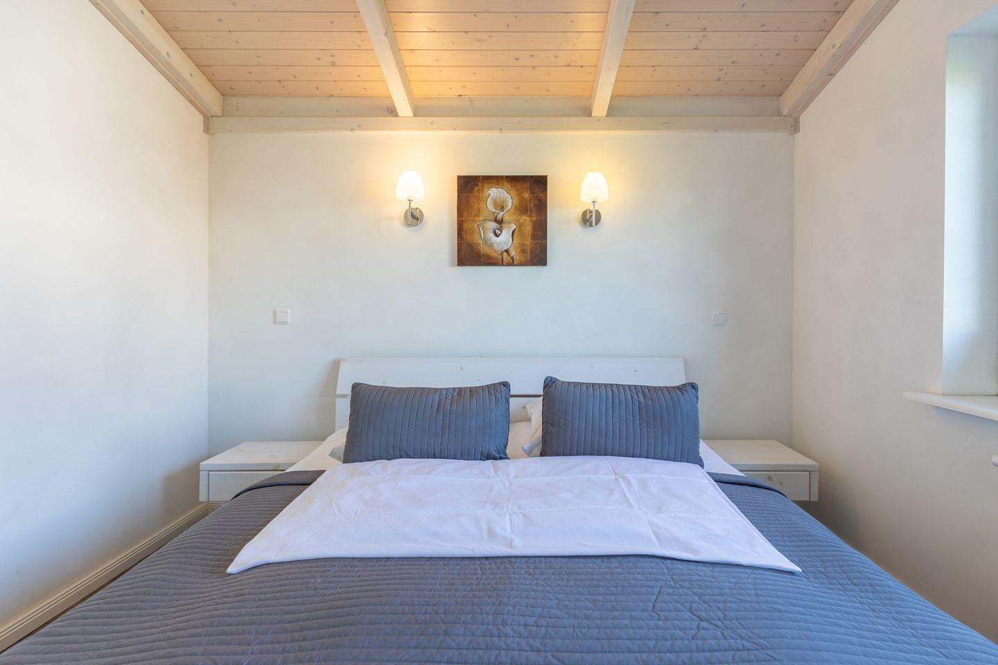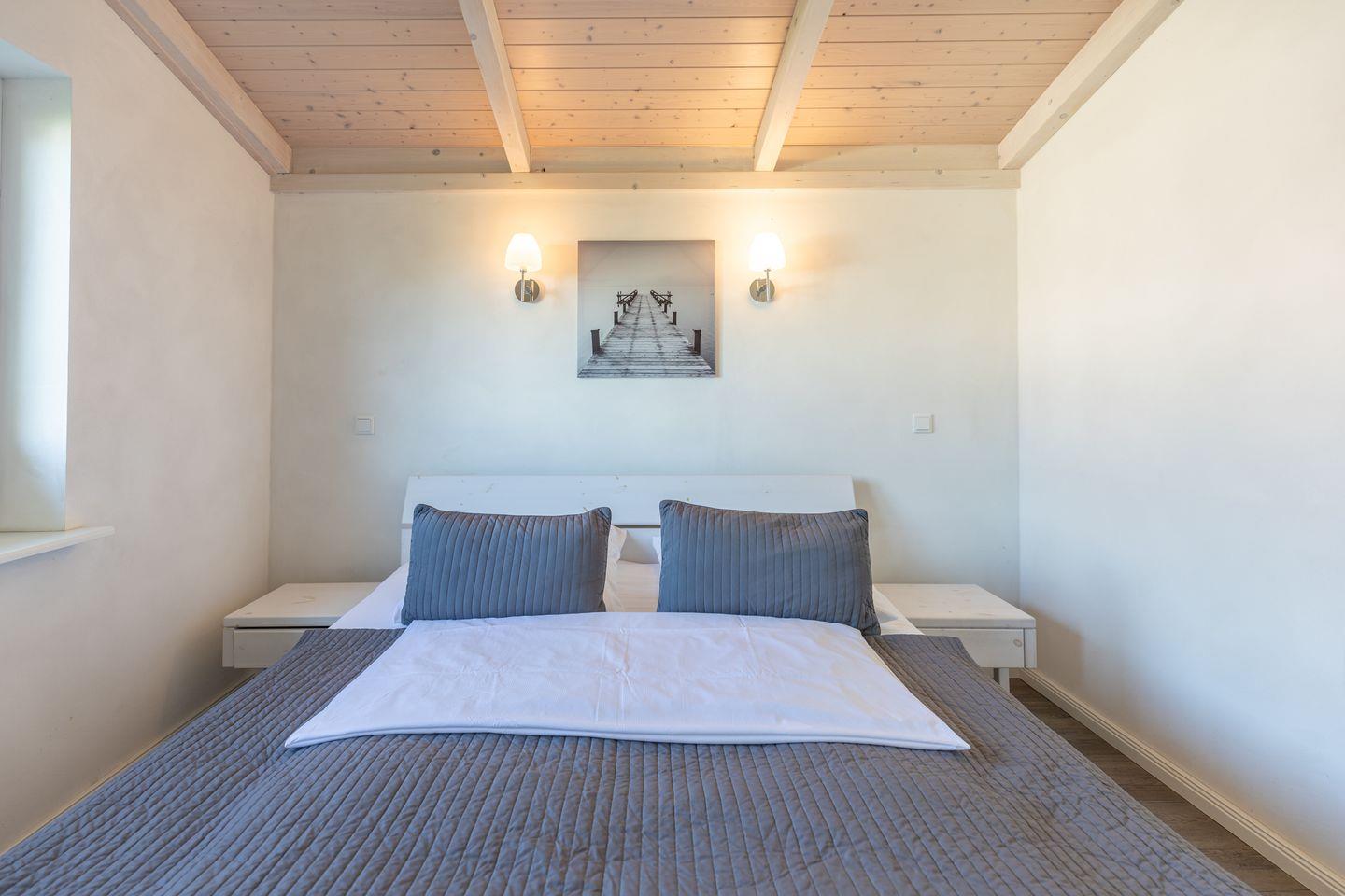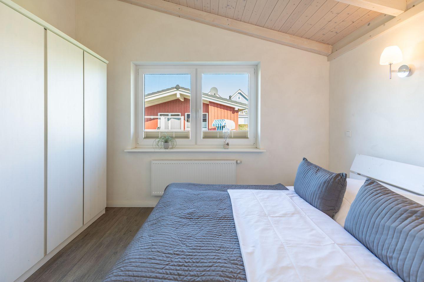 Das 85 qm große Ferienhaus ist modern und exklusiv im skandinavischen Charme eingerichtet. Die zwei Schlafzimmer mit jeweils einem Komfort-Doppelbett (180 x 200 cm) bieten Platz für bis zu vier Personen. Das gemütliche Wohnzimmer ist mit SAT-TV und einem Blu-Ray-DVD-Player ausgestattet. Der Kaminofen sorgt auch in der kälteren Jahreszeit für behagliche Stunden. Die offene Küche bietet Ihnen eine exklusive und umfangreiche Ausstattung, die das Herz eines jeden Hobbykochs höher schlagen lässt: Ceranfeld mit 4 Kochplatten, Backofen, Kühlschrank mit ***Gefrierfach, Mikrowelle, Geschirrspüler, Filterkaffeemaschine, Qbo Essential uvm. Das Badezimmer lässt keine Wünsche offen: zwei Waschbecken, eine große Badewanne, eine ebenerdige Dusche und eine schöne Sauna geben Ihrem Urlaub den richtigen Rahmen. Das Ferienhaus verfügt über ein zusätzliches WC. Auf der überdachten Terrasse können Sie auf bequemen Gartenstühlen und im Strandkorb die Sonne genießen.