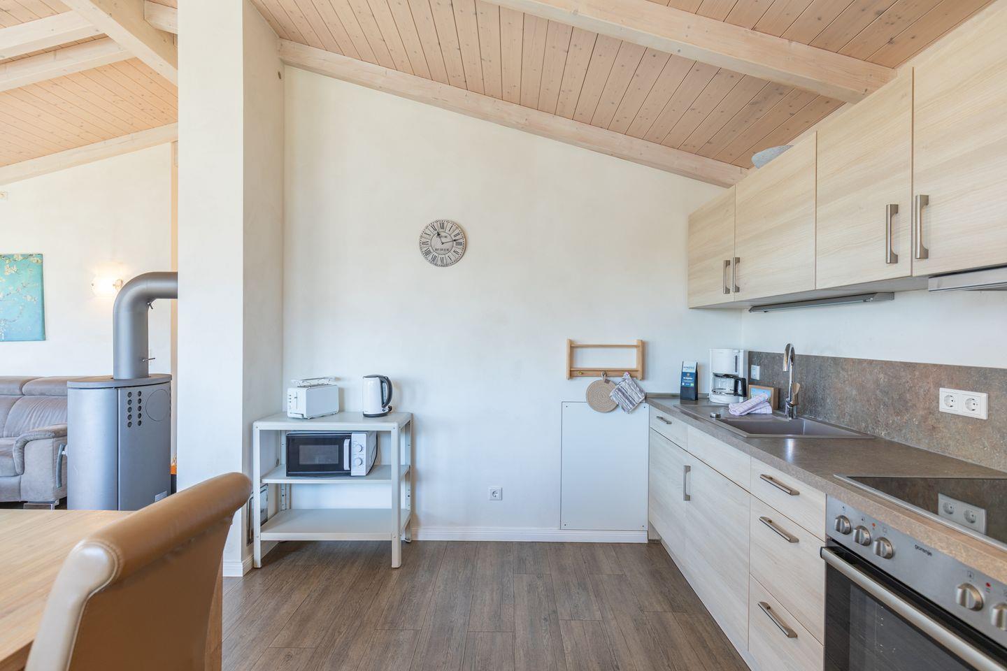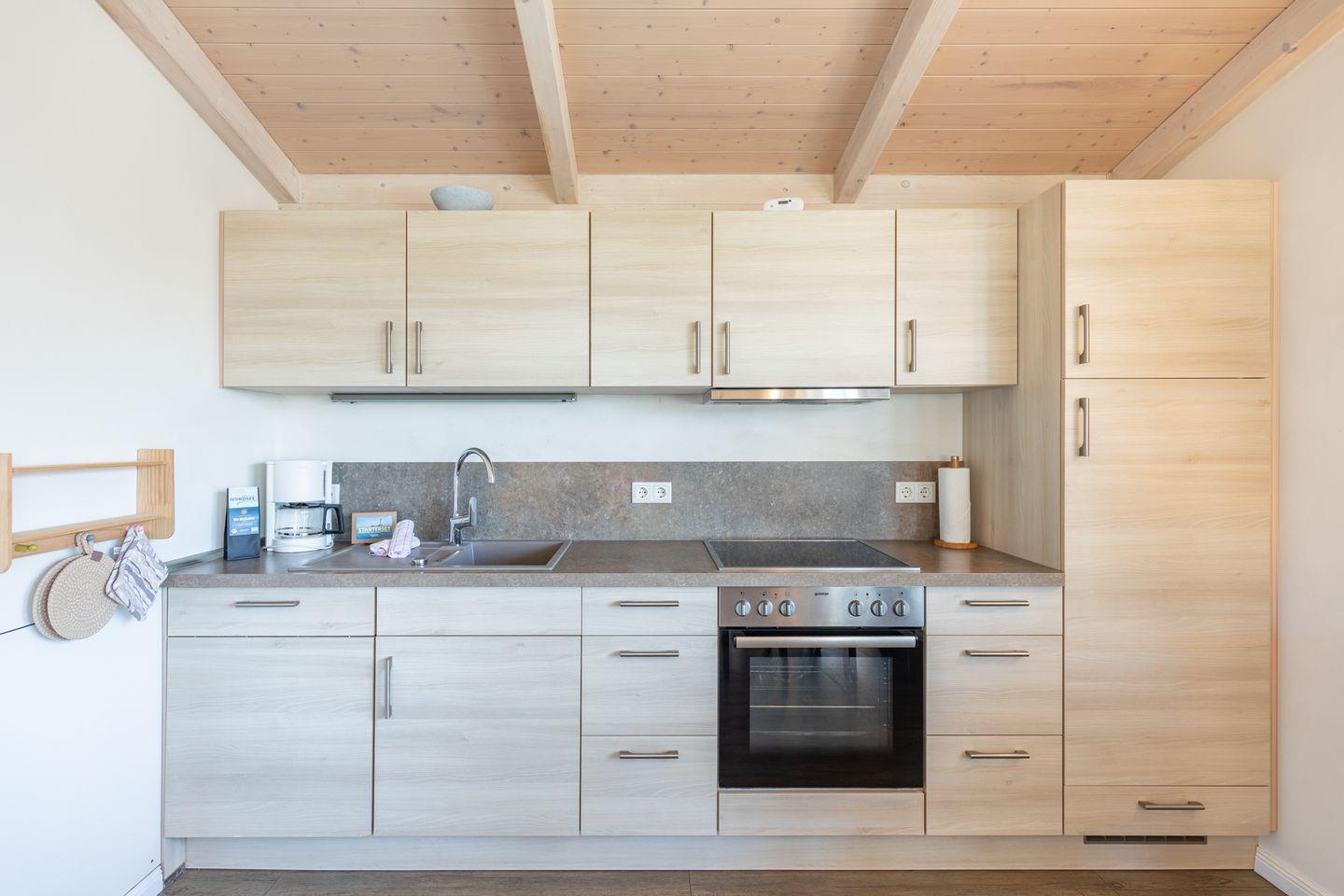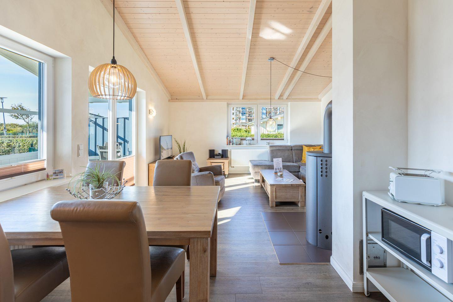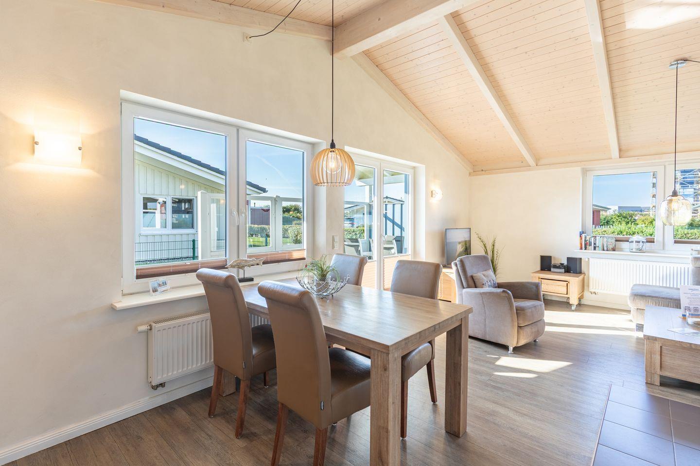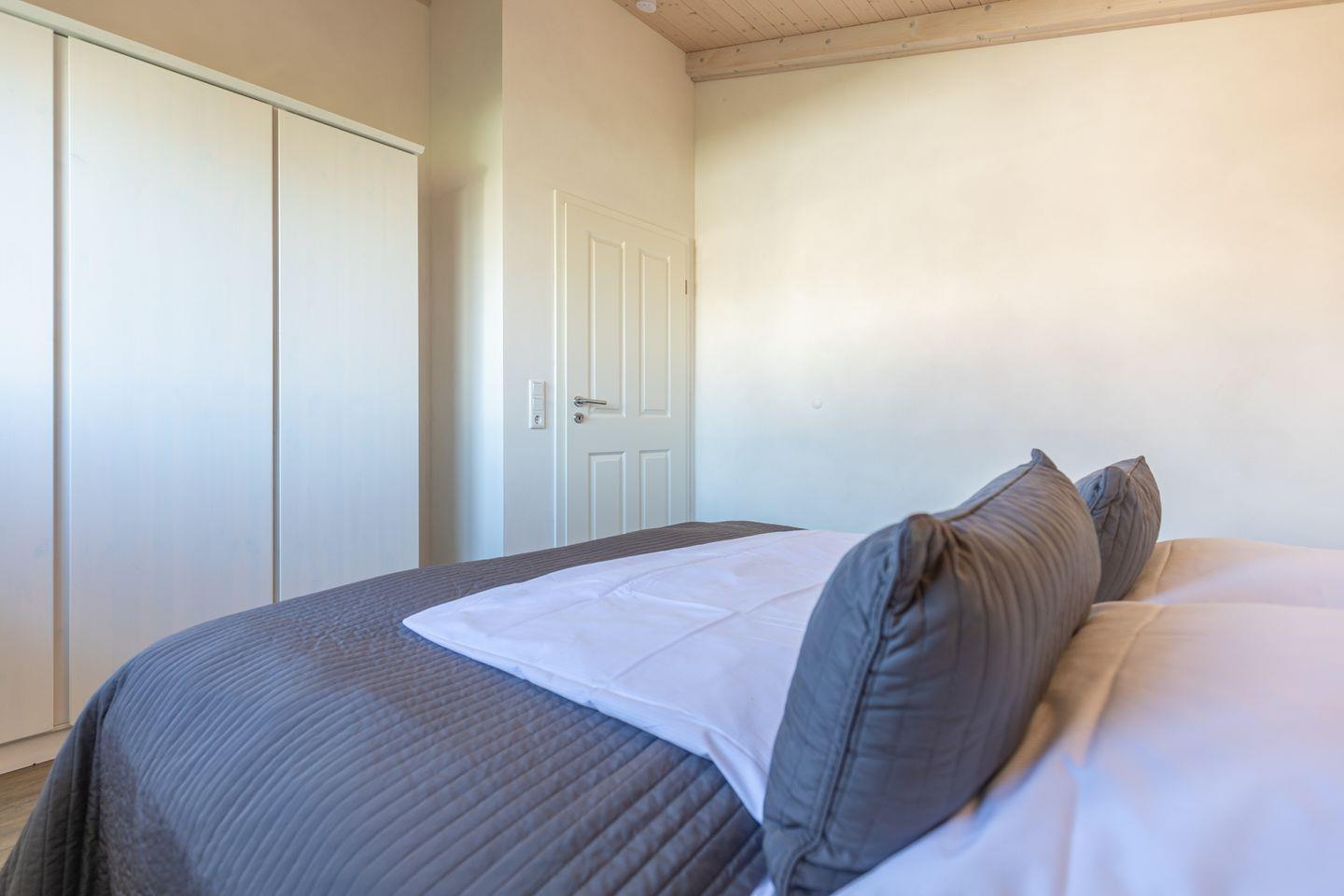 Das 85 qm große Ferienhaus ist modern und exklusiv im skandinavischen Charme eingerichtet. Die zwei Schlafzimmer mit jeweils einen Komfort-Doppelbett (180 × 200 cm) bieten Platz für bis zu 4 Personen. Das gemütliche Wohnzimmer ist mit SAT-TV und einem Blu-ray-DVD-Player ausgestattet. Der Kaminofen sorgt auch in der kälteren Jahreszeit für behagliche Stunden. Die offene Küche bietet Ihnen eine exklusive und umfangreiche Ausstattung, die das Herz eines jeden Hobbykochs höher schlagen lässt: Ceranfeld mit 4 Kochplatten, Backofen, Kühlschrank mit ***Gefrierfach, Mikrowelle, Geschirrspüler, Filterkaffeemaschine uvm. Das Badezimmer lässt keine Wünsche offen: zwei Waschbecken, eine große Badewanne, eine ebenerdige Dusche und eine schöne Sauna geben Ihrem Urlaub den richtigen Rahmen. Das Ferienhaus verfügt über ein zusätzliches WC. Auf der überdachten, windgeschützten Terrasse können Sie auf bequemen Gartenstühlen, den Sonnenliegen oder im Strandkorb die Sonne genießen.