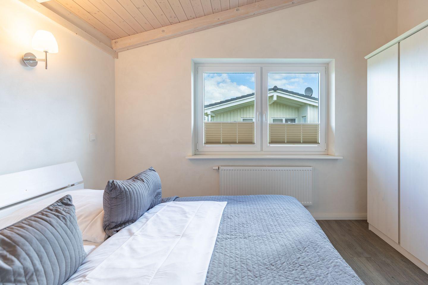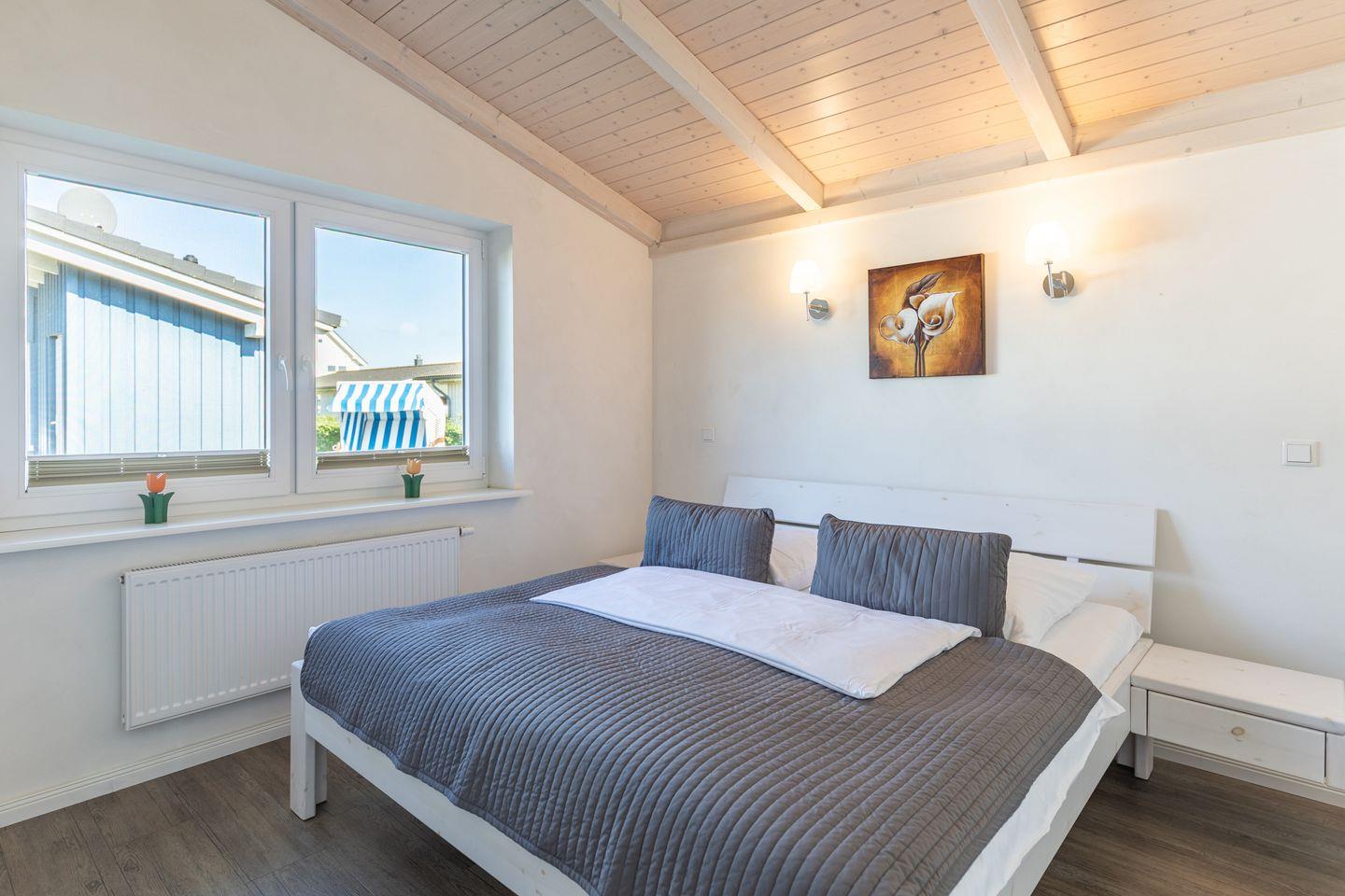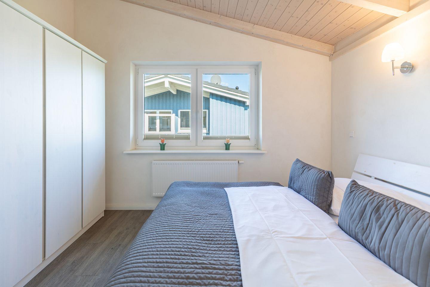 Das 85 qm große Ferienhaus ist modern und exklusiv im skandinavischen Charme eingerichtet. Die zwei Schlafzimmer mit jeweils einen Komfort-Doppelbett (180 x 200 cm) bieten Platz für bis zu vier Personen. Das gemütliche Wohnzimmer ist mit einem Smart-TV ausgestattet. Der Kaminofen sorgt auch in der kälteren Jahreszeit für behagliche Stunden. Die offene Küche bietet Ihnen eine exklusive und umfangreiche Ausstattung, die das Herz eines jeden Hobbykochs höher schlagen lässt: Ceranfeld mit 4 Kochplatten, Backofen, Kühlschrank mit ***Gefrierfach, Mikrowelle, Geschirrspüler, Filterkaffeemaschine uvm. Das Badezimmer lässt keine Wünsche offen: zwei Waschbecken, eine große Badewanne, eine ebenerdige Dusche und eine schöne Sauna geben Ihrem Urlaub den richtigen Rahmen. Das Ferienhaus verfügt über ein zusätzliches WC. Auf der überdachten, windgeschützten Terrasse können Sie auf bequemen Gartenstühlen, den Sonnenliegen oder im Strandkorb die Sonne genießen.
