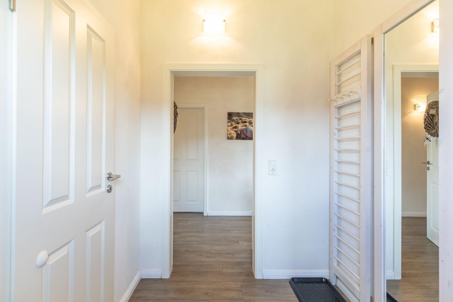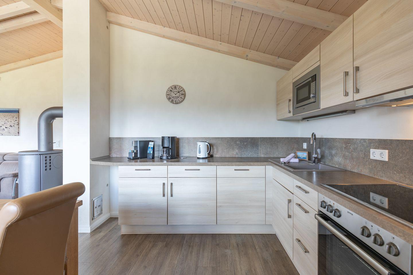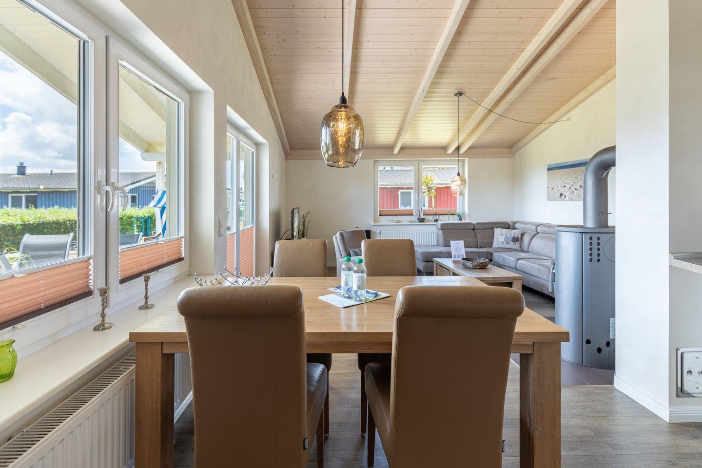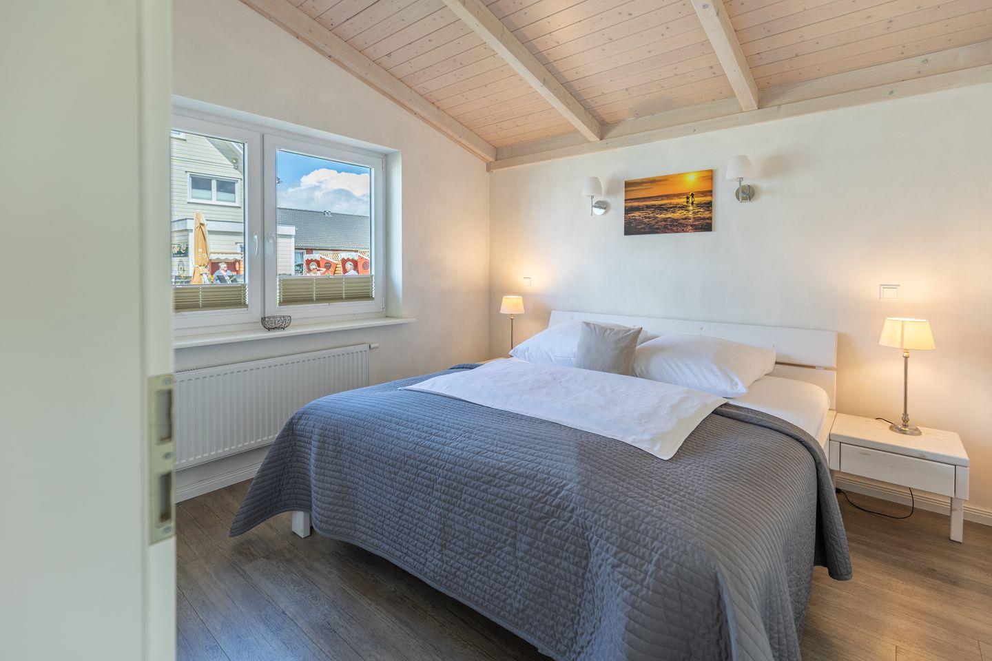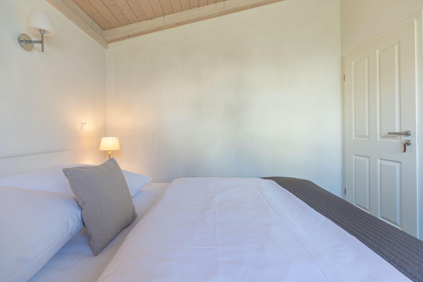 Das 85 qm große Ferienhaus ist modern und exklusiv im skandinavischen Charme eingerichtet. Die zwei Schlafzimmer mit jeweils einen Komfort-Doppelbett (180 x 200 cm) bieten Platz für bis zu vier Personen. Das gemütliche Wohnzimmer ist mit SAT-TV und einem Blu-Ray-DVD-Player ausgestattet. Der Kaminofen sorgt auch in der kälteren Jahreszeit für behagliche Stunden. Die offene Küche bietet Ihnen eine exklusive und umfangreiche Ausstattung, die das Herz eines jeden Hobbykochs höher schlagen lässt: Ceranfeld mit 4 Kochplatten, Backofen, Kühlschrank mit ***Gefrierfach, Mikrowelle, Geschirrspüler, Filterkaffeemaschine,Qbo Essential uvm. Das Badezimmer lässt keine Wünsche offen: zwei Waschbecken, eine große Badewanne, eine ebenerdige Dusche und eine schöne Sauna geben Ihrem Urlaub den richtigen Rahmen. Das Ferienhaus verfügt über ein zusätzliches WC. Auf der überdachten, windgeschützten Terrasse können Sie auf bequemen Gartenstühlen oder im Strandkorb die Sonne genießen.