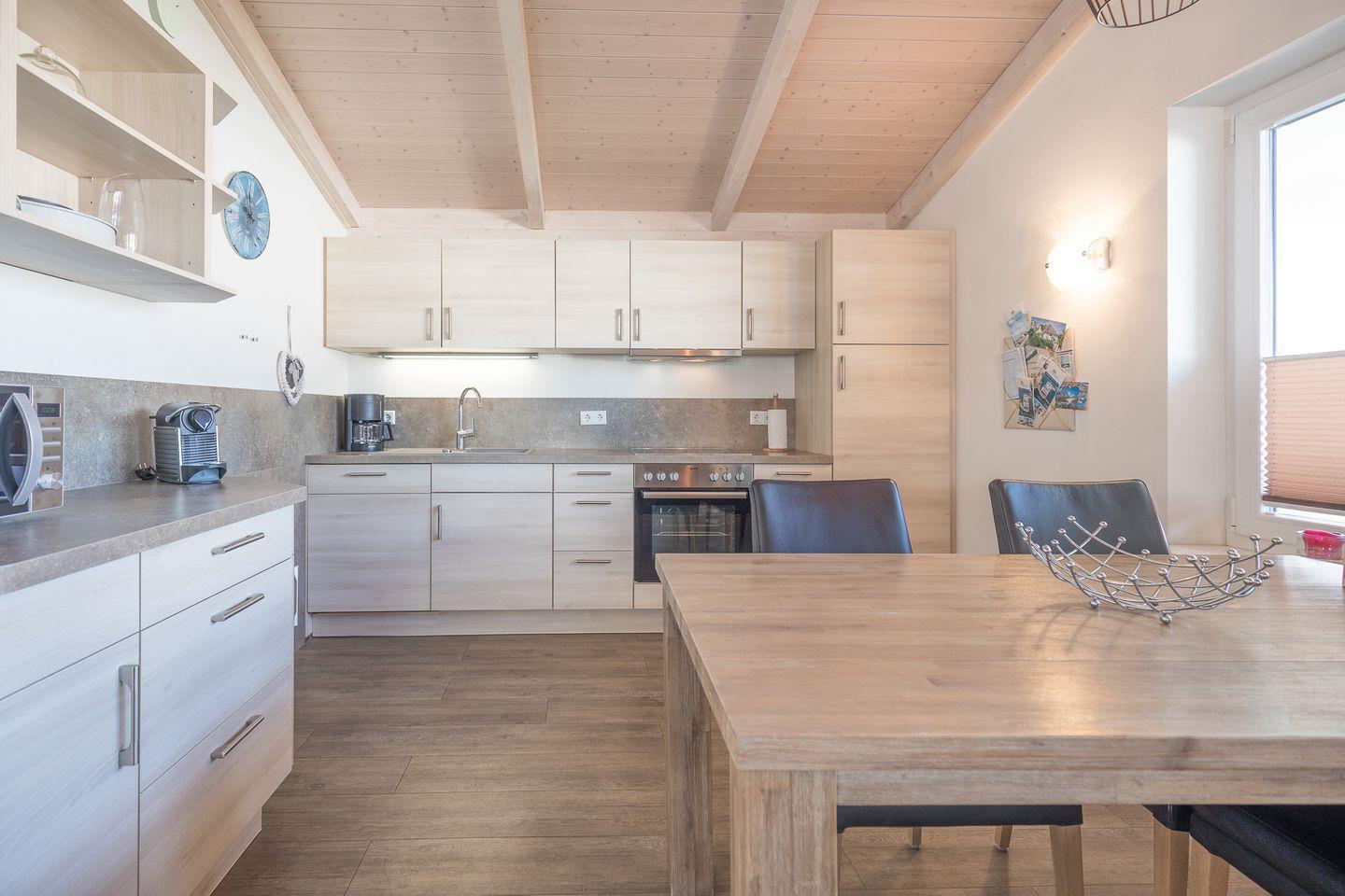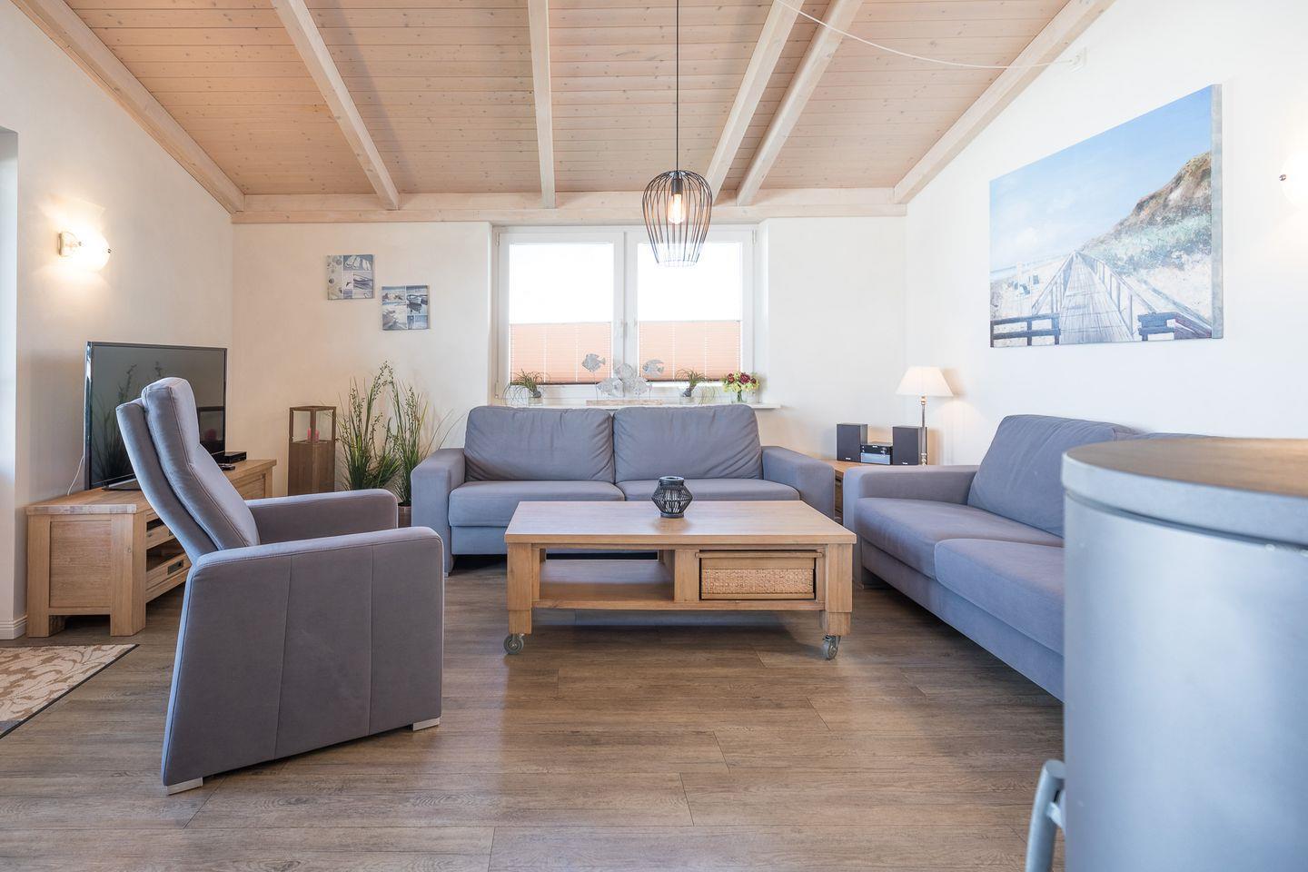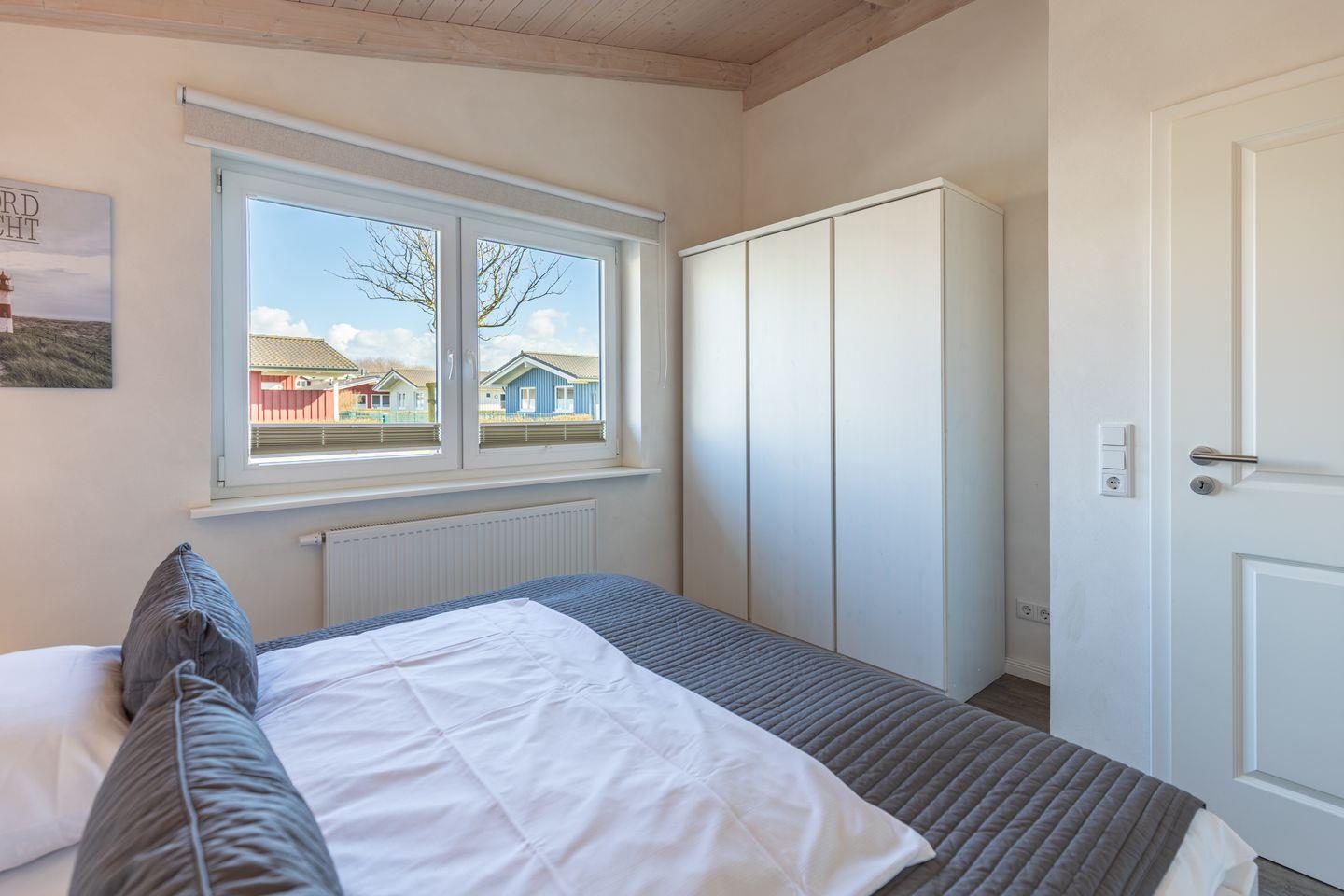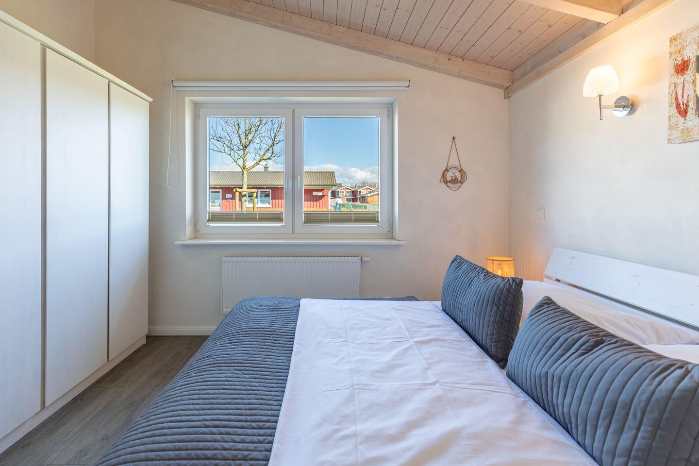 Das 85 qm große Ferienhaus ist modern und exklusiv im skandinavischen Charme eingerichtet. Die zwei Schlafzimmer mit jeweils einen Komfort-Doppelbett (180 x 200 cm) bieten Platz für bis zu vier Personen. Das gemütliche Wohnzimmer ist mit SAT-TV und einem Blu-Ray-DVD-Player ausgestattet. Der Kaminofen sorgt auch in der kälteren Jahreszeit für behagliche Stunden. Die offene Küche bietet Ihnen eine exklusive und umfangreiche Ausstattung, die das Herz eines jeden Hobbykochs höher schlagen lässt: Ceranfeld mit 4 Kochplatten, Backofen, Kühlschrank mit ***Gefrierfach, Mikrowelle, Geschirrspüler, Filterkaffeemaschine uvm. Das Badezimmer lässt keine Wünsche offen: zwei Waschbecken, eine große Badewanne, eine ebenerdige Dusche und eine schöne Sauna geben Ihrem Urlaub den richtigen Rahmen. Das Ferienhaus verfügt über ein zusätzliches WC. Auf der überdachten, windgeschützten Terrasse können Sie auf bequemen Gartenstühlen, den Sonnenliegen oder im Strandkorb die Sonne genießen.