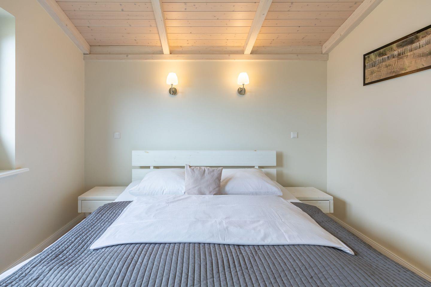 Das 85 qm große Ferienhaus ist modern und exklusiv im skandinavischen Charme eingerichtet. Die zwei Schlafzimmer mit jeweils einen Komfort-Doppelbett (180 x 200 cm) bieten Platz für bis zu vier Personen. Das gemütliche Wohnzimmer ist mit SAT-TV und einem Blu-Ray-DVD-Player ausgestattet. Der Kaminofen sorgt auch in der kälteren Jahreszeit für behagliche Stunden. Die offene Küche bietet Ihnen eine exklusive und umfangreiche Ausstattung, die das Herz eines jeden Hobbykochs höher schlagen lässt: Ceranfeld mit 4 Kochplatten, Backofen, Kühlschrank mit ***Gefrierfach, Mikrowelle, Geschirrspüler, Filterkaffeemaschine uvm. Das Badezimmer lässt keine Wünsche offen: zwei Waschbecken, eine große Badewanne, eine ebenerdige Dusche und eine schöne Sauna geben Ihrem Urlaub den richtigen Rahmen. Das Ferienhaus verfügt über ein zusätzliches WC. Auf der überdachten, windgeschützten Terrasse können Sie auf bequemen Gartenstühlen, den Sonnenliegen oder im Strandkorb die Sonne genießen.