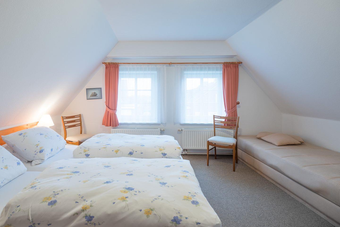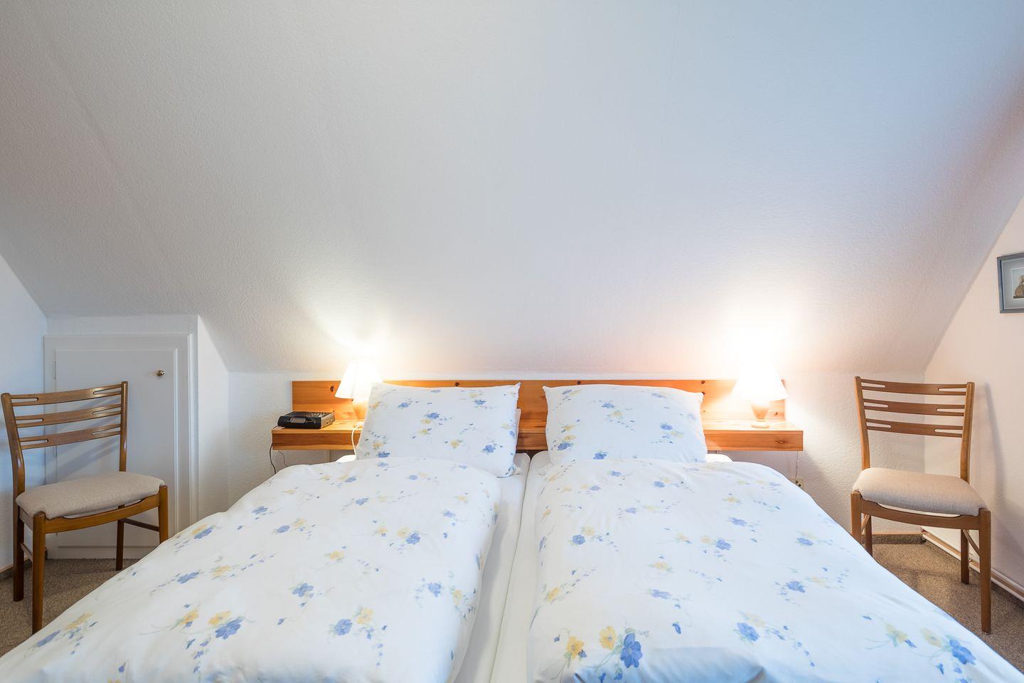 Das Schlafzimmer ist mit einem gemütlichen Doppelbett (180 x 200 cm), einem Einzelbett und einem geräumigen Kleiderschrank eingerichtet.