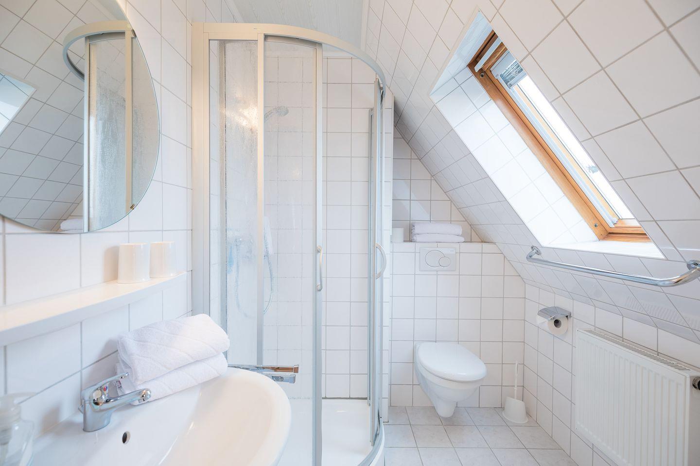 Ein modernes Duschbad mit WC rundet die Ausstattung dieser Ferienwohnung ab und sorgt für zusätzlichen Komfort.