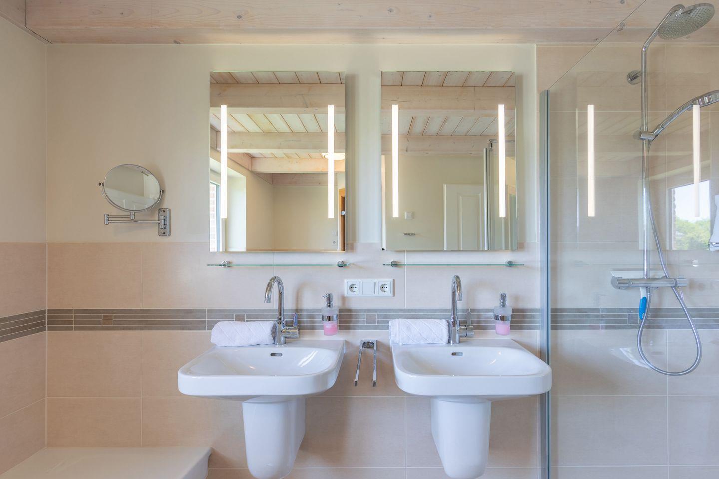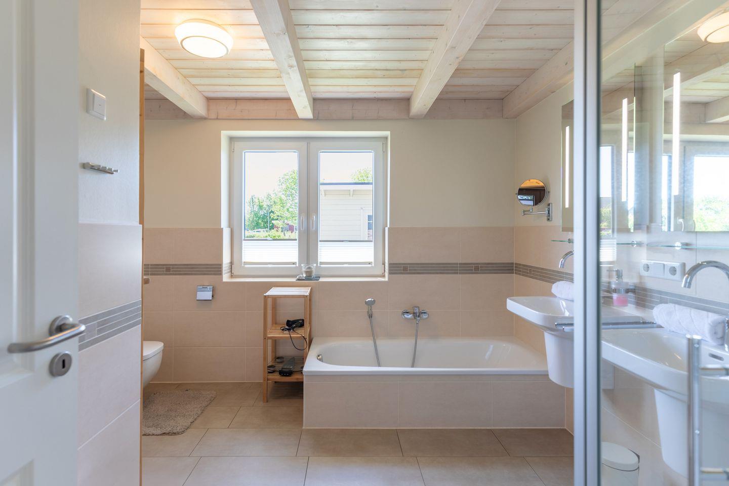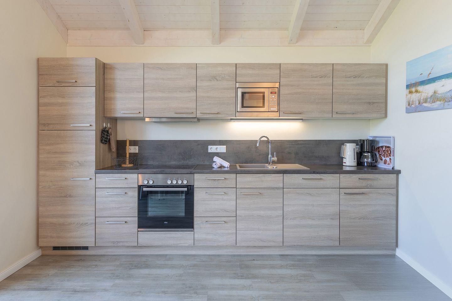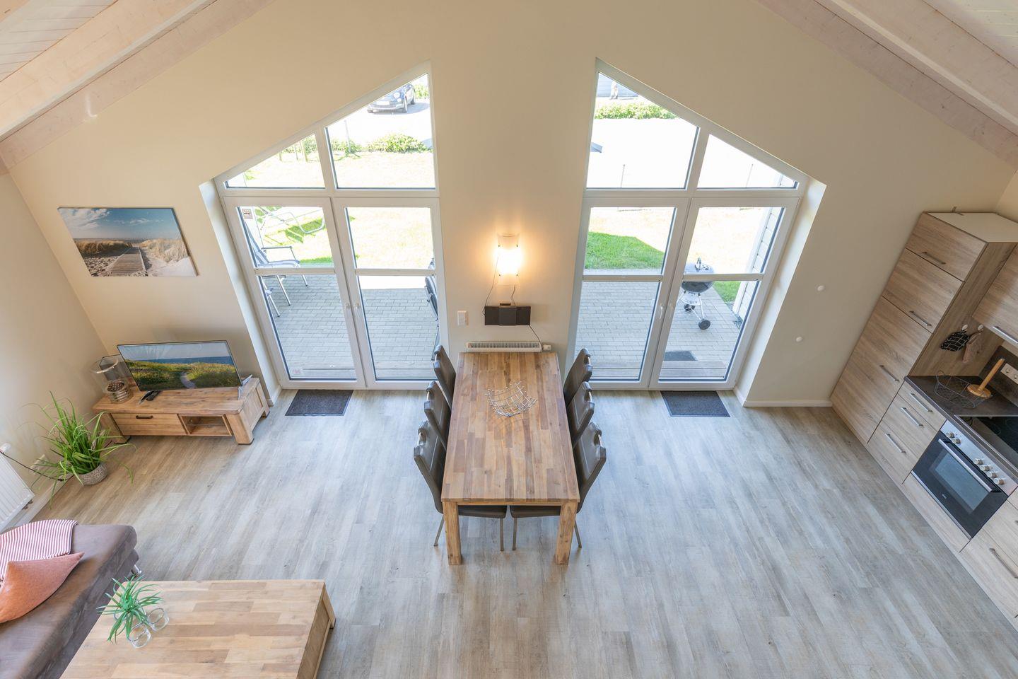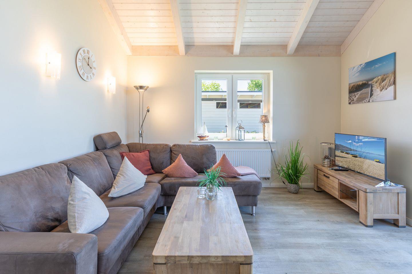 Das 85 qm große Ferienhaus ist modern und exklusiv im skandinavischen Charme eingerichtet. Die zwei Schlafzimmer mit jeweils einen Komfort-Doppelbett (180 x 200 cm) bieten Platz für bis zu vier Personen. Das gemütliche Wohnzimmer ist mit SAT-TV und einem Blu-Ray-DVD-Player ausgestattet. Der Kaminofen sorgt auch in der kälteren Jahreszeit für behagliche Stunden. Die offene Küche bietet Ihnen eine exklusive und umfangreiche Ausstattung, die das Herz eines jeden Hobbykochs höher schlagen lässt: Ceranfeld mit 4 Kochplatten, Backofen, Kühlschrank mit ***Gefrierfach, Mikrowelle, Geschirrspüler, Filterkaffeemaschine uvm. Das Badezimmer lässt keine Wünsche offen: zwei Waschbecken, eine große Badewanne, eine ebenerdige Dusche und eine schöne Sauna geben Ihrem Urlaub den richtigen Rahmen. Das Ferienhaus verfügt über ein zusätzliches WC. Auf der überdachten Terrasse können Sie auf bequemen Gartenstühlen und -liegen die Sonne genießen.