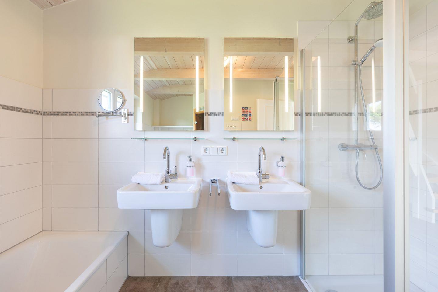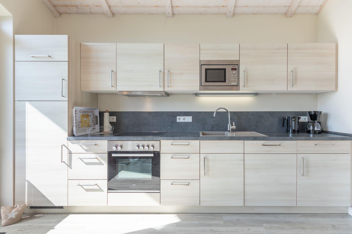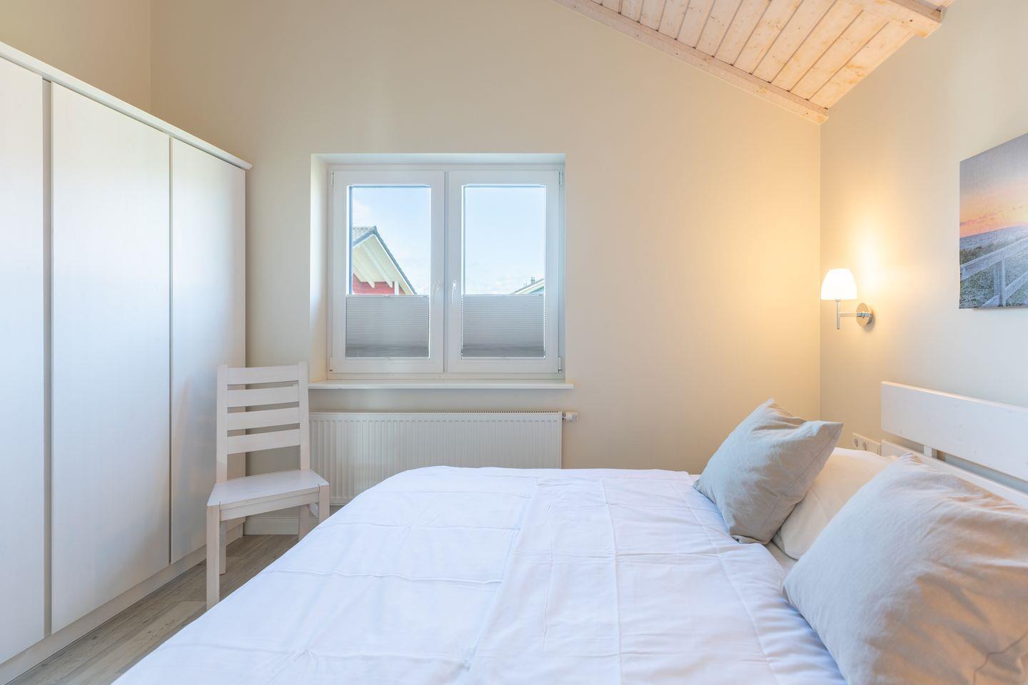 Das 85 qm große Ferienhaus ist modern und exklusiv im skandinavischen Charme eingerichtet. Die zwei Schlafzimmer mit jeweils einem Komfort-Doppelbett (180 × 200 cm) bieten Platz für bis zu vier Personen. Das gemütliche Wohnzimmer ist mit SAT-TV ausgestattet. Der Kaminofen sorgt auch in der kälteren Jahreszeit für behagliche Stunden. Die offene Küche bietet Ihnen eine exklusive und umfangreiche Ausstattung, die das Herz eines jeden Hobbykochs höher schlagen lässt: Ceranfeld mit 4 Kochplatten, Backofen, Kühlschrank mit ***Gefrierfach, Mikrowelle, Geschirrspüler, Filterkaffeemaschine u. v. m. Das Badezimmer lässt keine Wünsche offen: zwei Waschbecken, eine große Badewanne, eine ebenerdige Dusche und eine schöne Sauna geben Ihrem Urlaub den richtigen Rahmen. Das Ferienhaus verfügt über ein zusätzliches WC. Auf der überdachten Terrasse können Sie auf bequemen Gartenstühlen und -liegen die Sonne genießen.