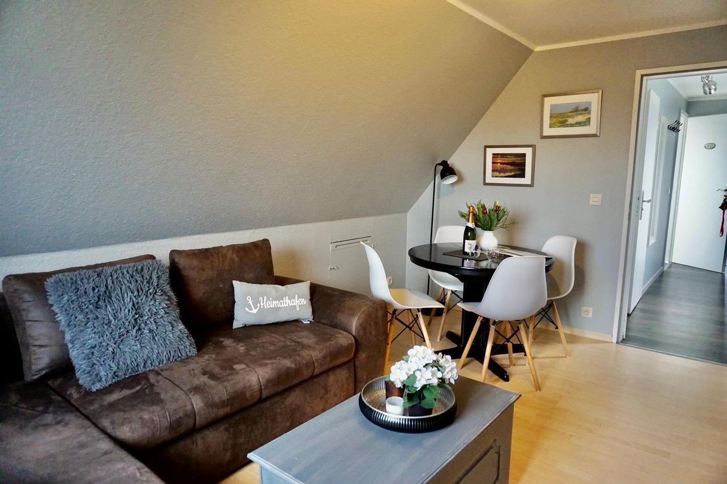 Die gemütliche Ferienwohnung ,,Deichblick'' bietet im Dachgeschoss auf 55 qm Platz für bis zu 3 Personen. Dank des Doppelbettes und dem Schlafsofas ist die Wohnung für 2 Erwachsene und 1 Kind geeignet.