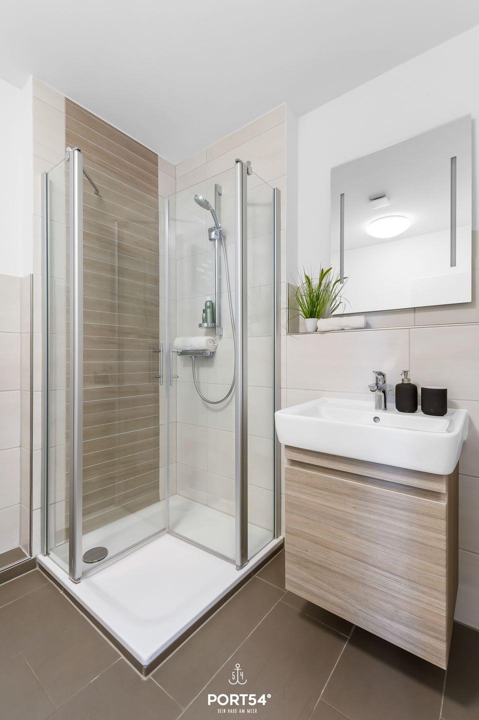 Die Wohnung überzeugt durch ihre helle und freundliche Atmosphäre. Große Oberlichtfenster lassen viel Tageslicht herein und schaffen ein angenehmes Wohngefühl. Der offene Wohn- und Küchenbereich ist modern gestaltet und perfekt geeignet für Selbstversorger und entspannte Abende. Das moderne Badezimmer mit Dusche bietet zusätzlichen Komfort und eine hochwertige Ausstattung.