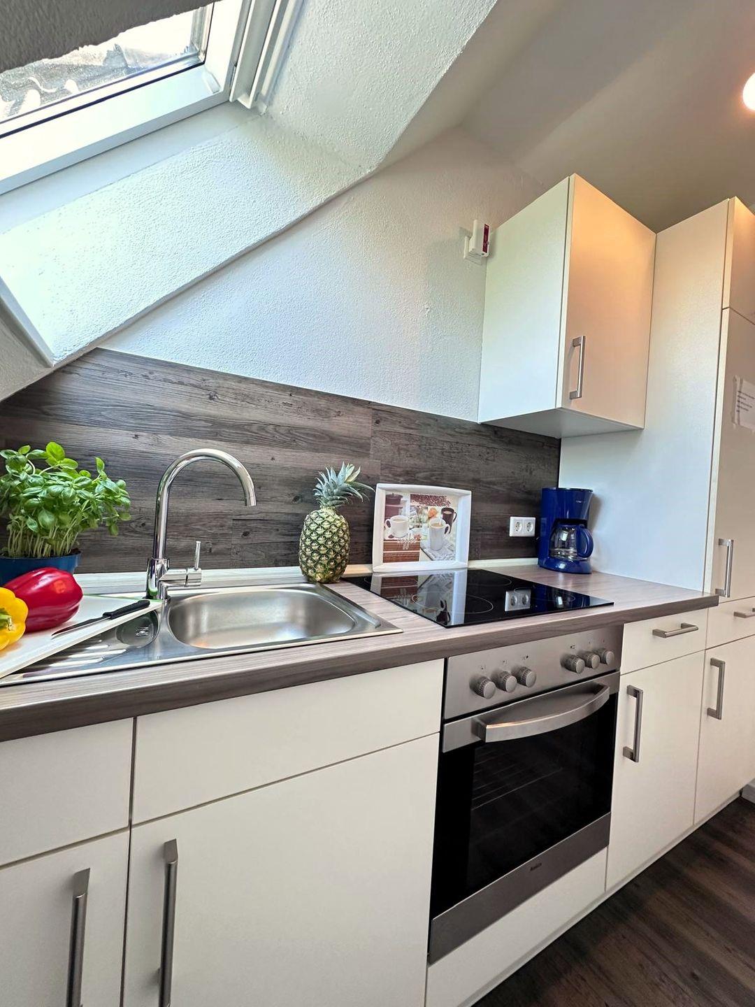 Eine gute ausgestattete Küche, die zum Kochen und Genießen einlädt