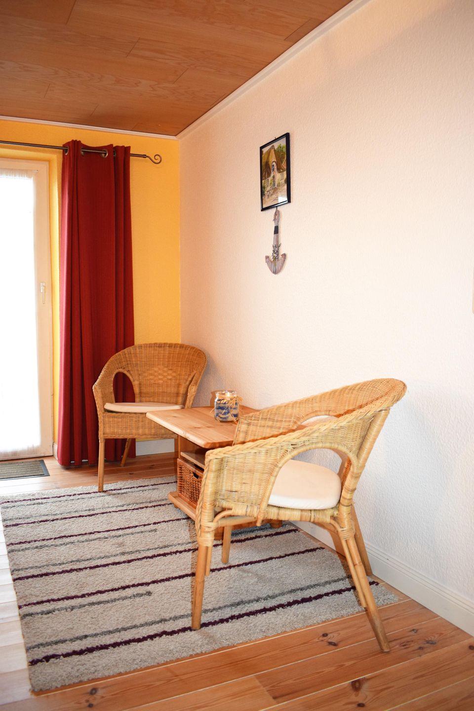 Die Ferienwohnung verfügt über zwei einladende Schlafzimmer, die für eine angenehme Nachtruhe sorgen. Der lichtdurchflutete Wohnbereich mit einer komfortablen Sofaecke lädt dazu ein, gemeinsam Zeit zu verbringen und entspannte Abende zu genießen. Hier können Sie bei gutem Wetter mit Blick in den Garten sitzen oder sich mit einem spannenden Film entspannen – der Fernseher mit digitalem Anschluss steht Ihnen zur Verfügung. Für Familien mit Kindern stehen eine Auswahl an Spielen zur Verfügung, damit auch die kleinen Gäste auf ihre Kosten kommen, außerdem stehen bei Bedarf ein Babybett und ein Hochstuhl bereit.