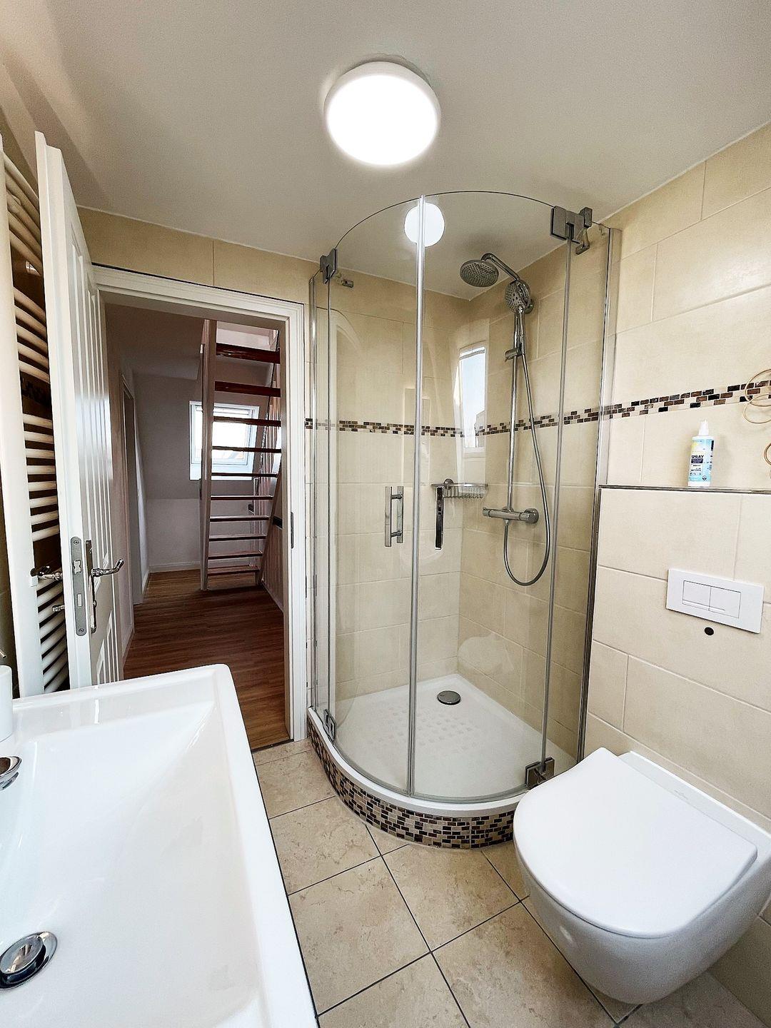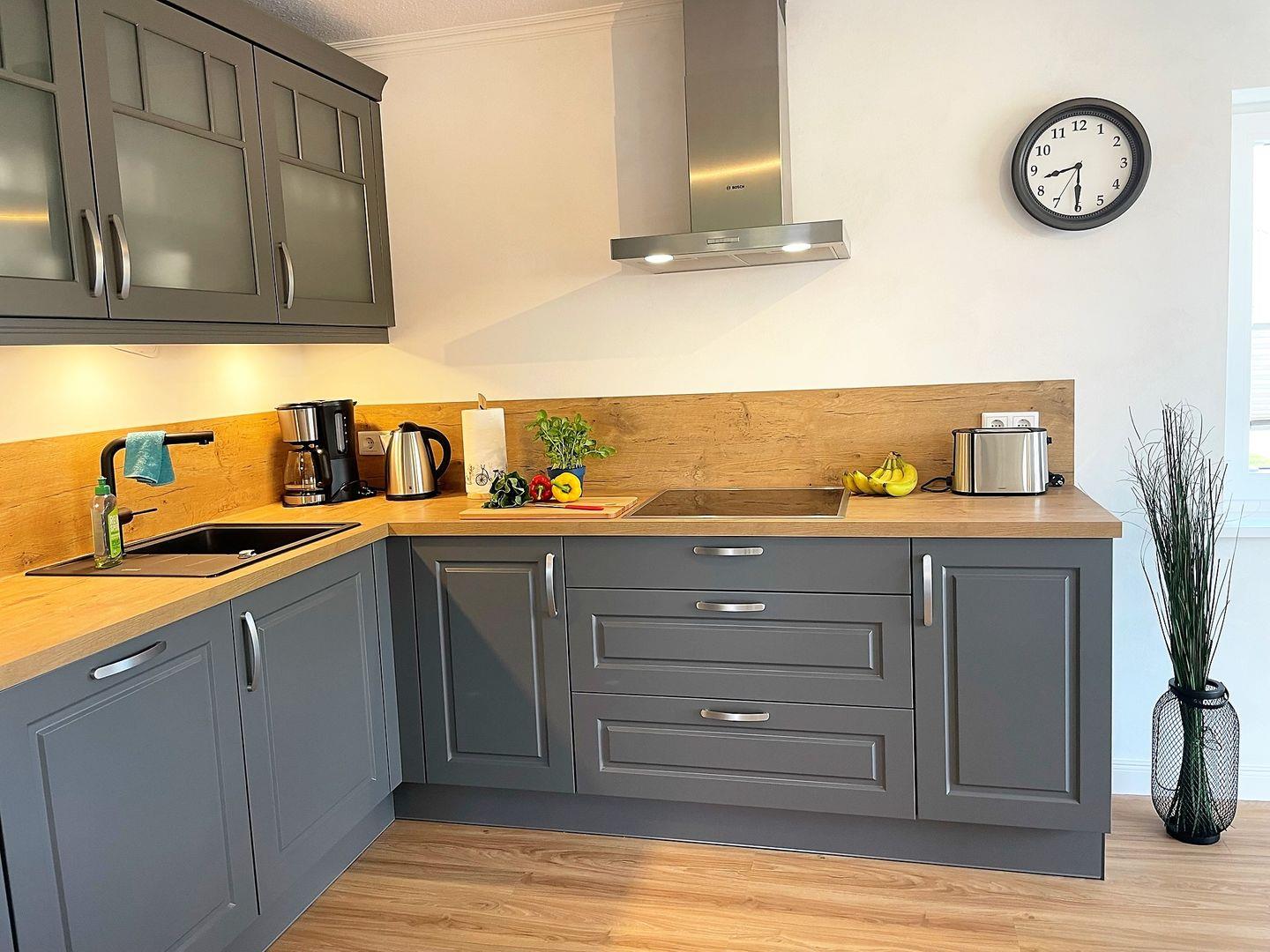 Das Ferienhaus erstreckt sich über 3 Etagen und verfügt über insgesamt 5 Zimmer, darunter 4 gemütliche Schlafzimmer, die Ihnen den idealen Raum für erholsame Nächte bieten. Morgens können Sie fröhlich am Esstisch in der offenen Küche, die perfekt in das großzügige Wohnzimmer integriert ist, das Frühstück zubereiten. Die moderne Küche ist bestens ausgestattet mit einem Herd, Backofen, Kühlschrank, Geschirrspüler und sogar einer Mikrowelle. Hier können Sie schmackhafte Mahlzeiten zubereiten und die gemeinsame Zeit genießen.