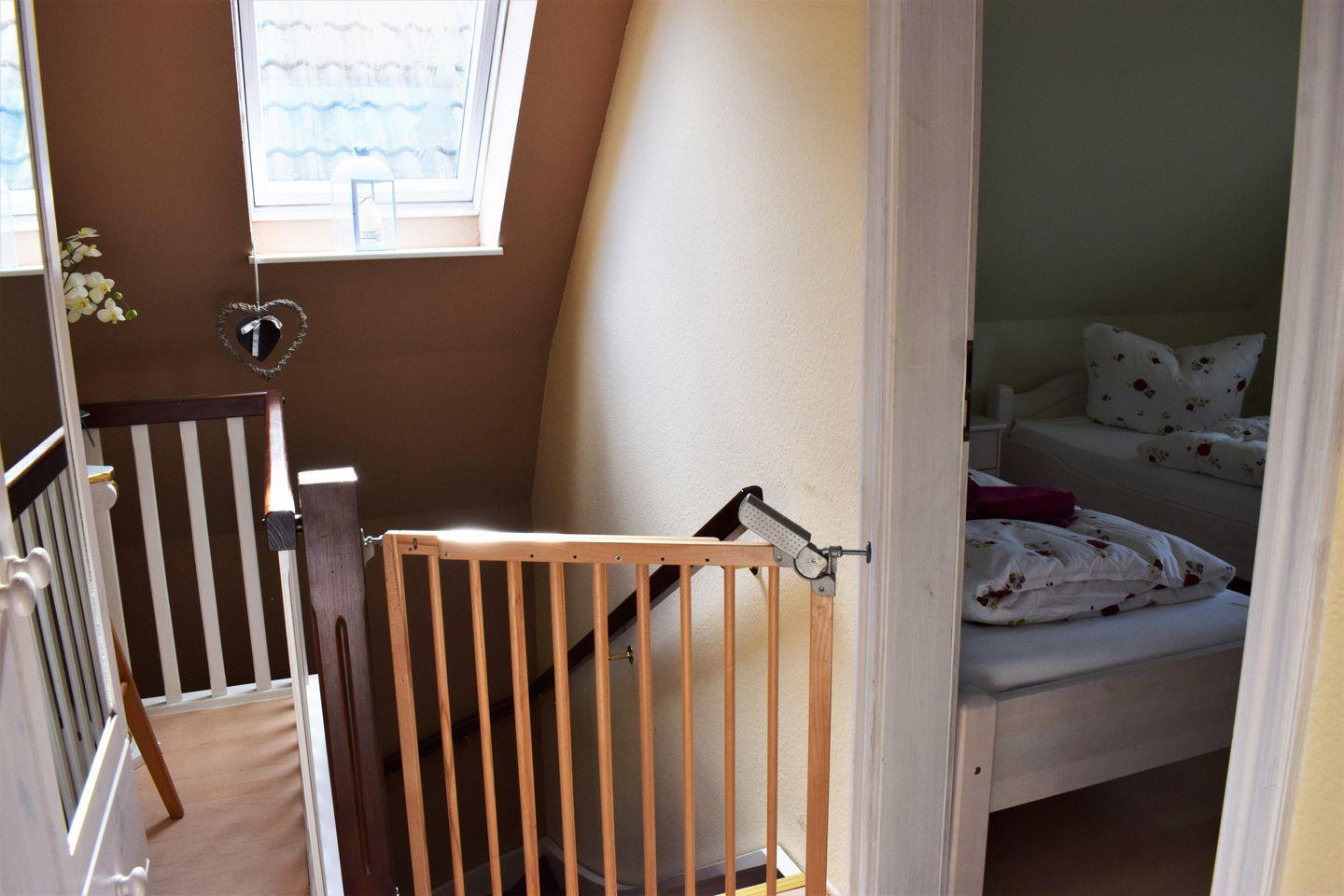 Dies Ferienhaus wurde liebevoll und sehr ansprechend eingerichtet und verfügt über eine Wohnfläche von ca. 96m². Im Erdgeschoss befinden sich der Flur, ein Bad mit WC und Dusche, ein Wohnraum mit Sitzecke und Essbereich mit direktem Terrassenzugang, Küche mit Spülmaschine und Gefrierschrank sowie eine Waschküche mit Waschmaschine und Trockner. Im Obergeschoss finden Sie drei Schlafzimmer (das 1. Schlafzimmer mit zwei einzelnen Betten, das 2. Schlafzimmer mit einem Doppelbett und das dritte Schlafzimmer mit einem Einzelbett und einer Klappmatratze) und das Bad mit Badewanne und WC. Ein Kinderbett, Hochstuhl, Babywanne und Wickelauflage sind vorhanden. Die Treppe ist im Obergeschoss mit einer Kindertür gesichert. Im Garten stehen Gartenmöbel und ein Grill zur Verfügung.