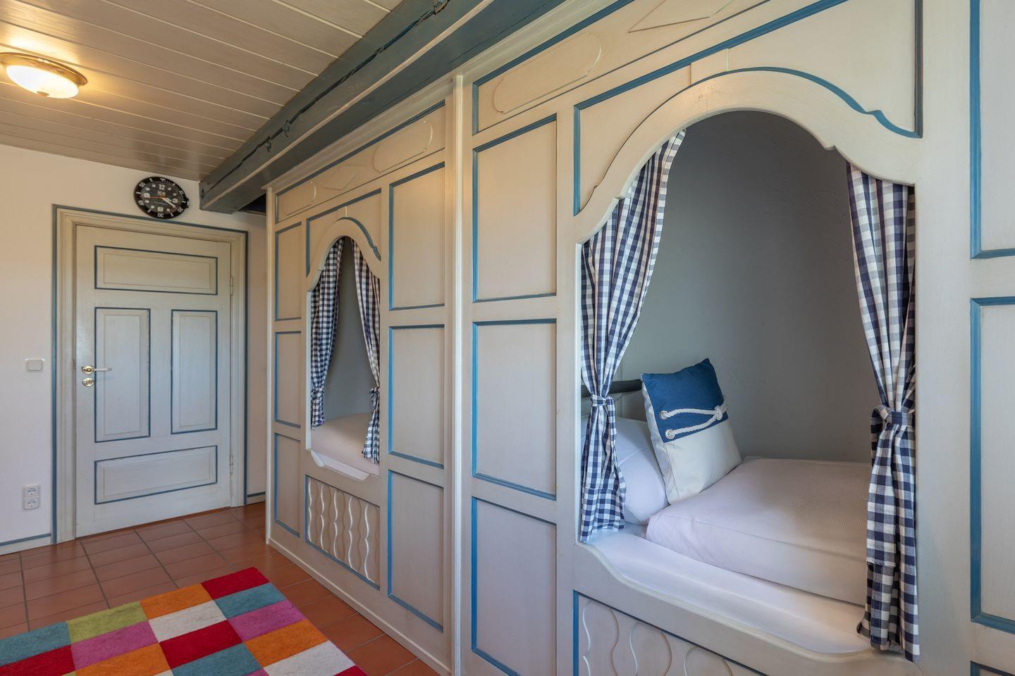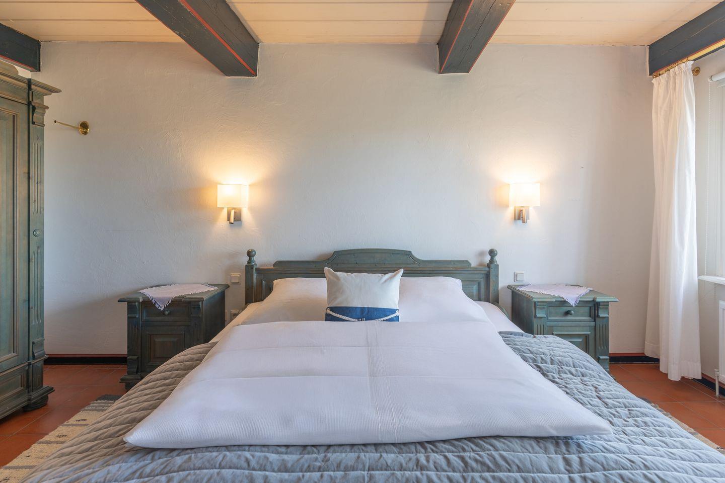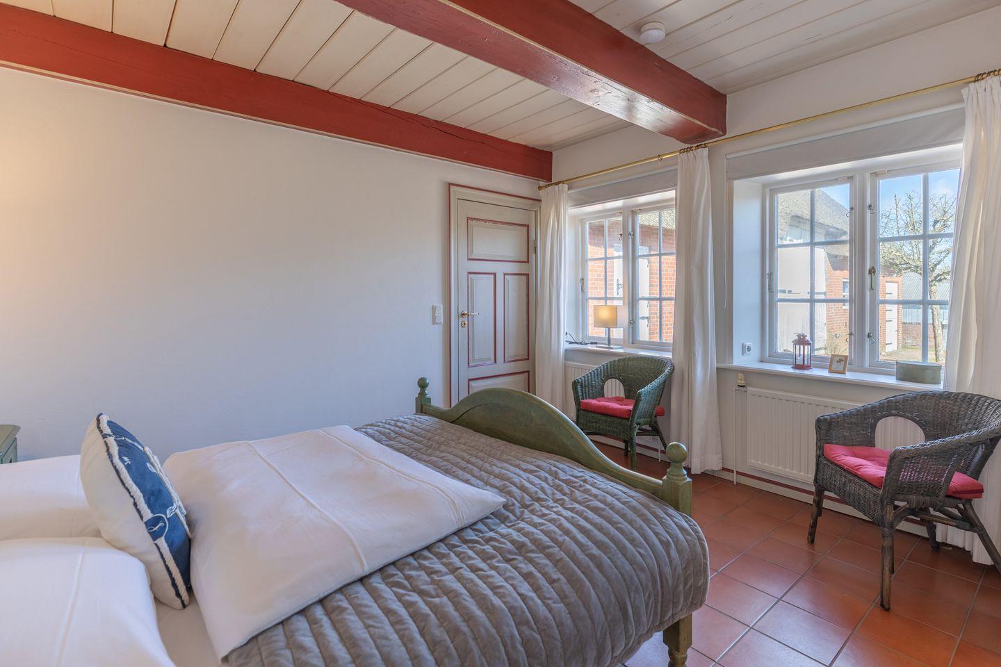 Das Ferienhaus ist in einem Landhausstil eingerichtet und bietet somit eine heimische Umgebung. Es gibt insgesamt drei Schlafzimmer. Zwei davon haben ein bequemes Doppelbett (180 x 200). Eines der beiden Schlafzimmer mit Doppelbett bietet Ihnen ein eigenes Badezimmer, sowie auch einen kleinen Raum, der als Ankleidezimmer gedacht ist. Das dritte Schlafzimmer bietet zwei Kojen / Alkovenbetten (90 x 200), sowie auch ein Babybett. Dieses Schlafzimmer eignet sich besonders für Kinder!
