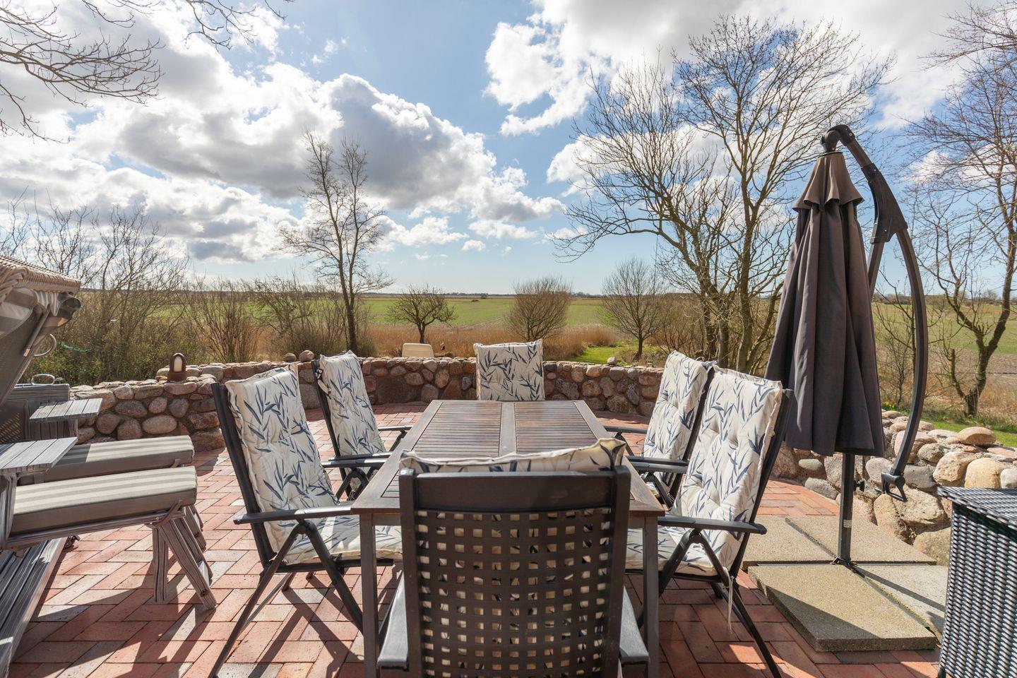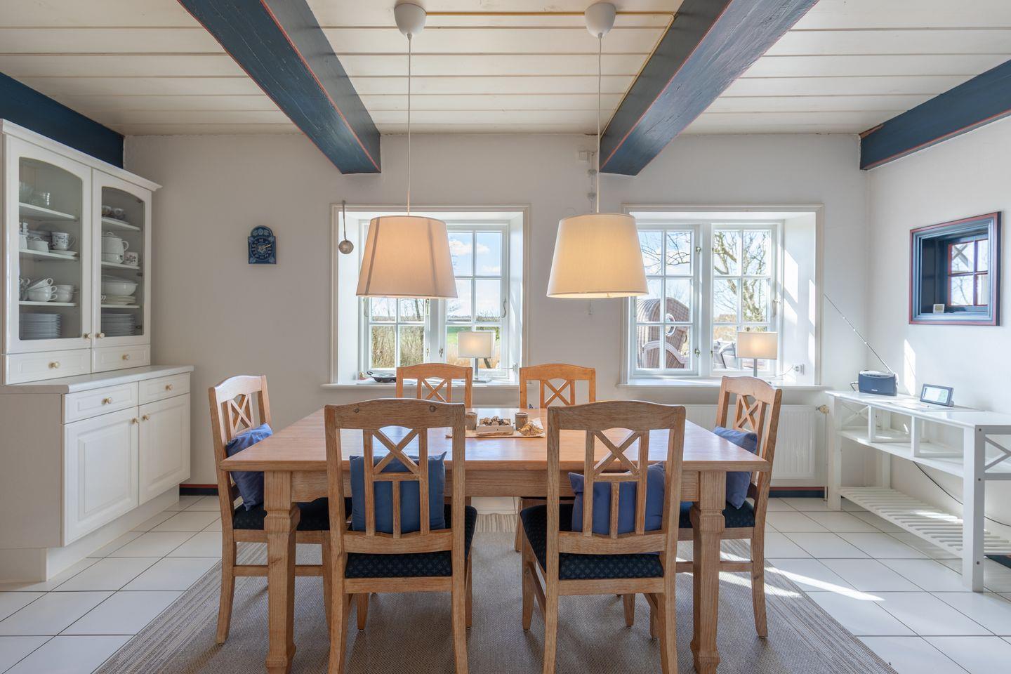Dank der ruhigen, ländlichen Lage können Sie hier abschalten und die Natur genießen. Das ebenerdige Haus erstreckt sich über 150 m² und bietet in der Umgebung viel Platz für ausgedehnte Spaziergänge. Ein Auto ist empfehlenswert, da die Dagebüller Mole 13 km und der nächste Supermarkt 9,3 km entfernt liegen.