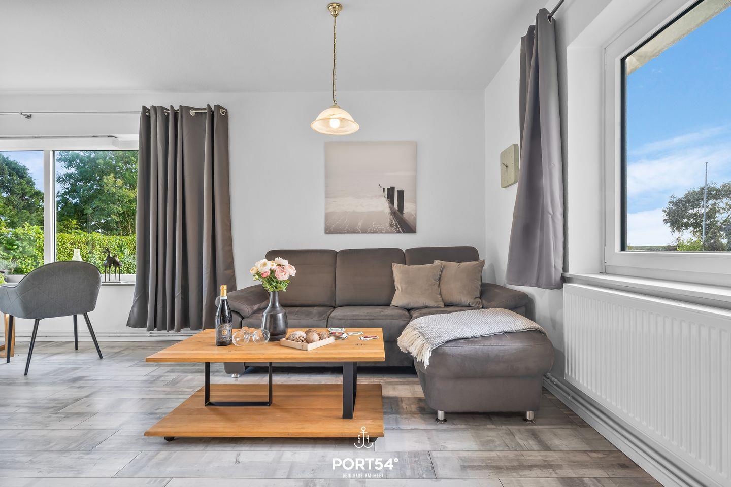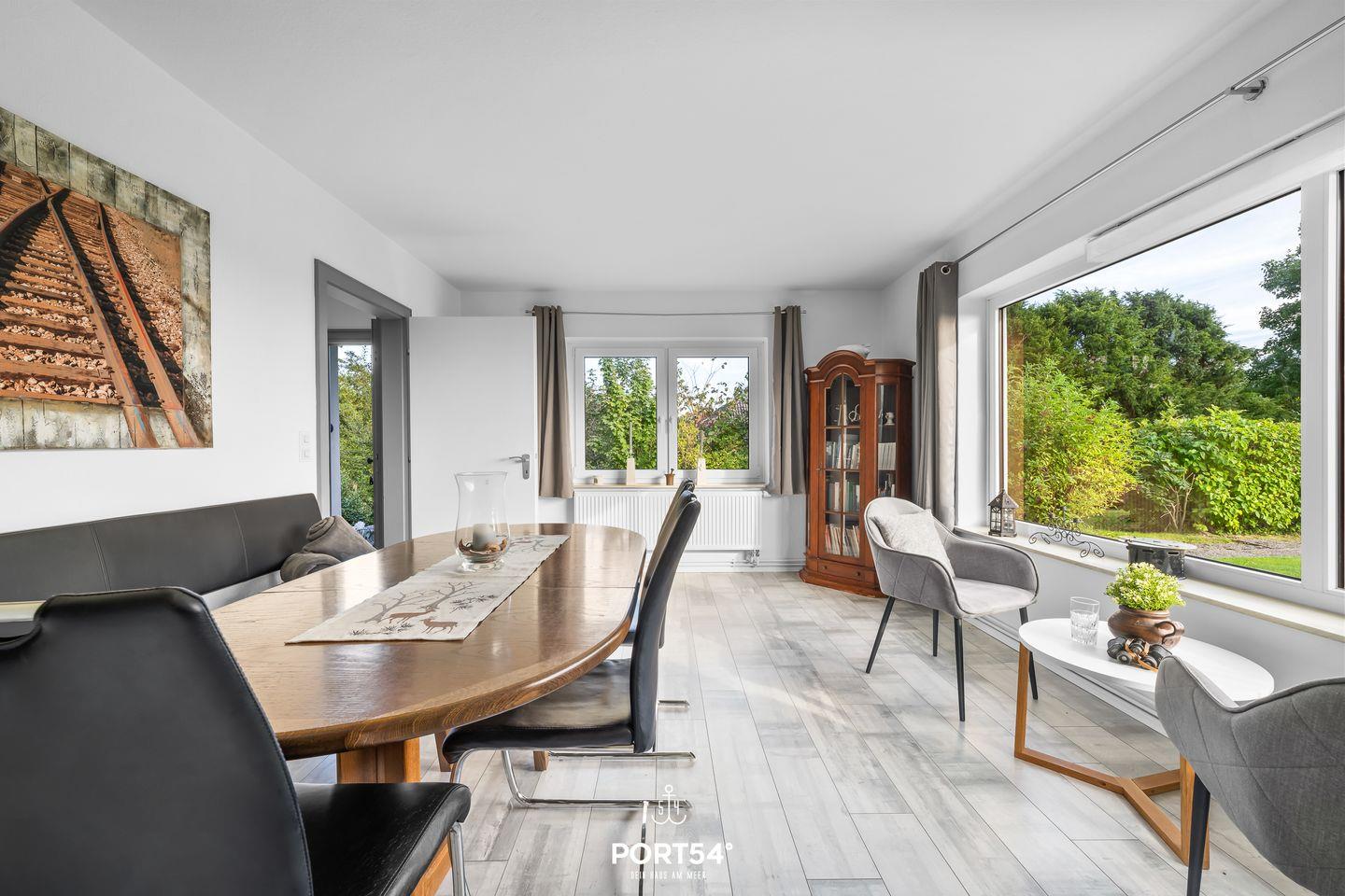 Der Wohnbereich bildet das Herzstück des Hauses: eine gemütliche Sofaecke lädt zu entspannten Fernsehabenden oder geselligen Spieleabenden ein. Die offene Küche ist ideal für alle, die gerne kochen – ausgestattet mit modernen Geräten, ausreichend Geschirr und Besteck. Der angrenzende Essbereich bietet Platz für gemeinsame Mahlzeiten – oder Sie verlegen das Essen direkt auf die Terrasse. Für unsere kleinen Gäste steht vor Ort ein Kinderhochstuhl bereit.