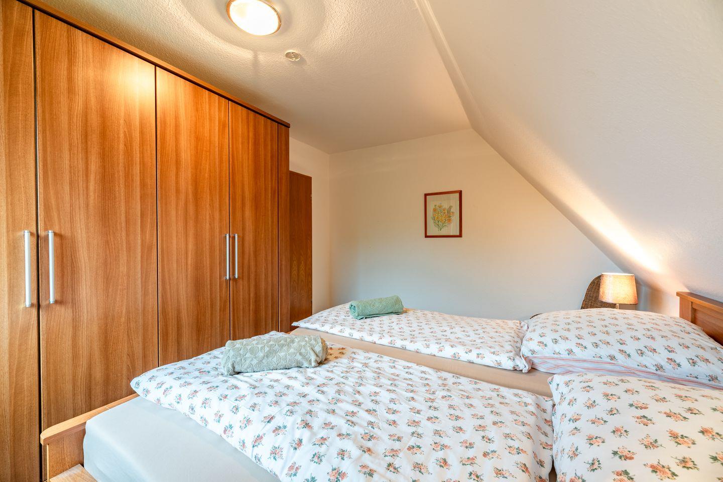 Die Ferienwohnung überzeugt mit zwei komfortablen Schlafzimmern die einen gemütlichen Rückzugsort für erholsame Nächte bieten. Im großzügigen Wohnbereich, ausgestattet mit einer Sofaecke und einem Esstisch für gemeinsame Mahlzeiten, kann man die gemeinsame Zeit in vollen Zügen genießen. Die Küche bietet alle modernen Annehmlichkeiten, die Sie benötigen, um auch im Urlaub mühelos zu kochen. Hier finden Sie einen Geschirrspüler, einen Herd, einen Backofen, einen Kühlschrank mit Gefrierfach, eine Kaffeemaschine und sämtliches Geschirr, um sich das Frühstück oder ein schönes Abendessen zuzubereiten.