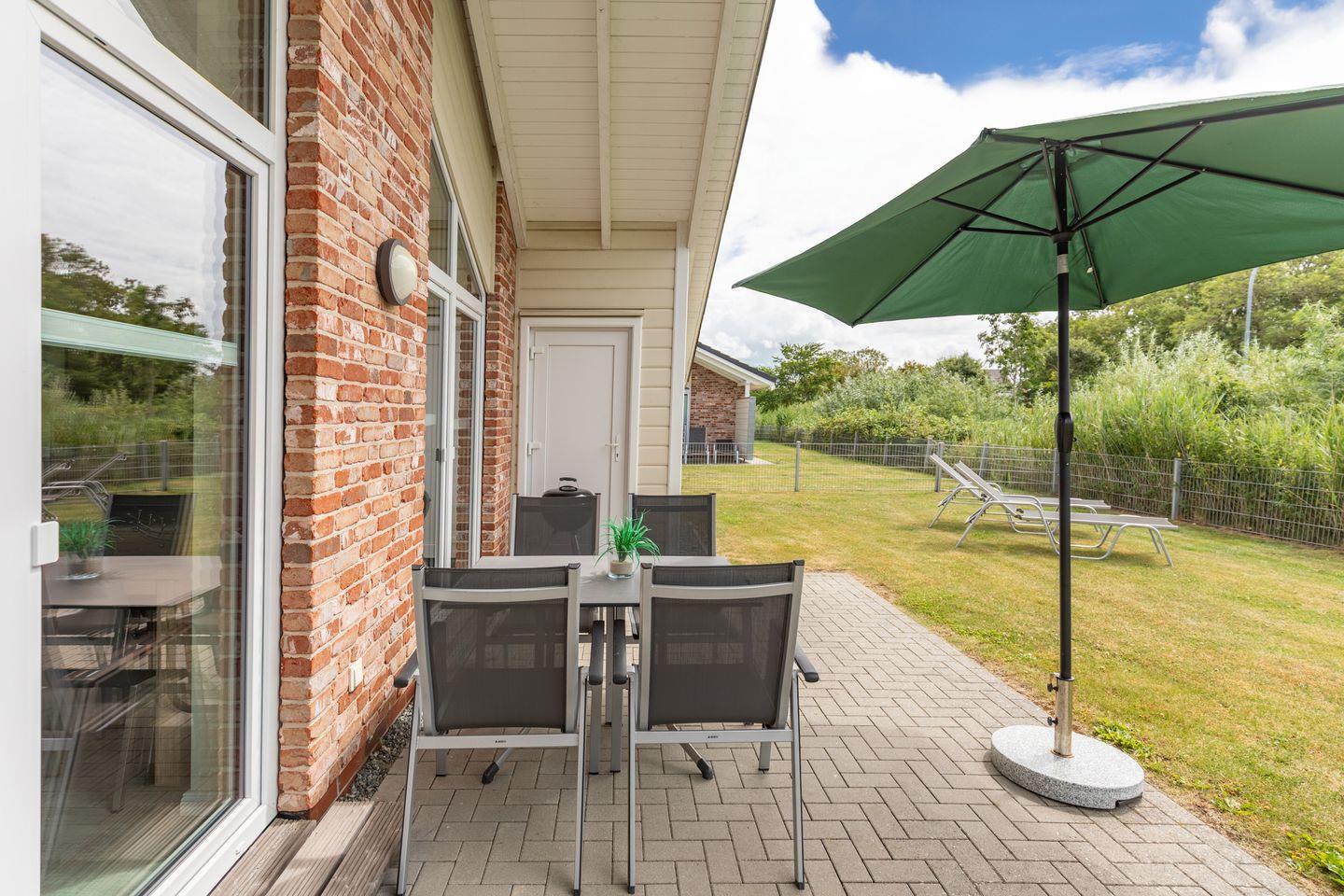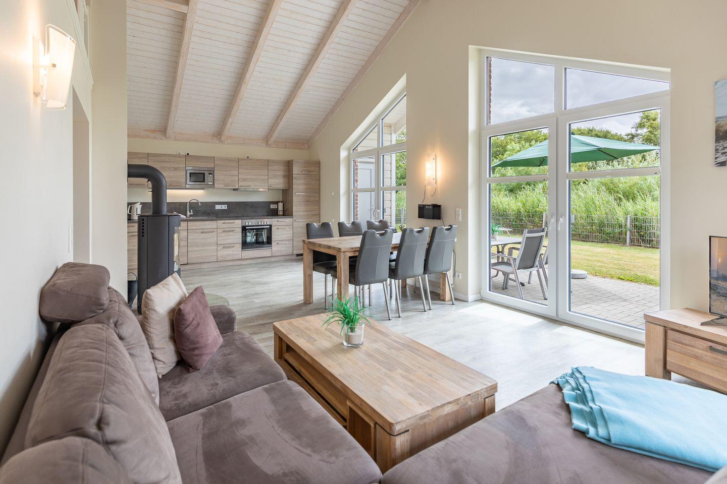 Luxuriöses ebenerdiges Ferienhaus "Salzwiese" in Dagebüll mit Sauna, Kamin und großer Terrasse nahe der Nordsee für bis zu 4 Personen.