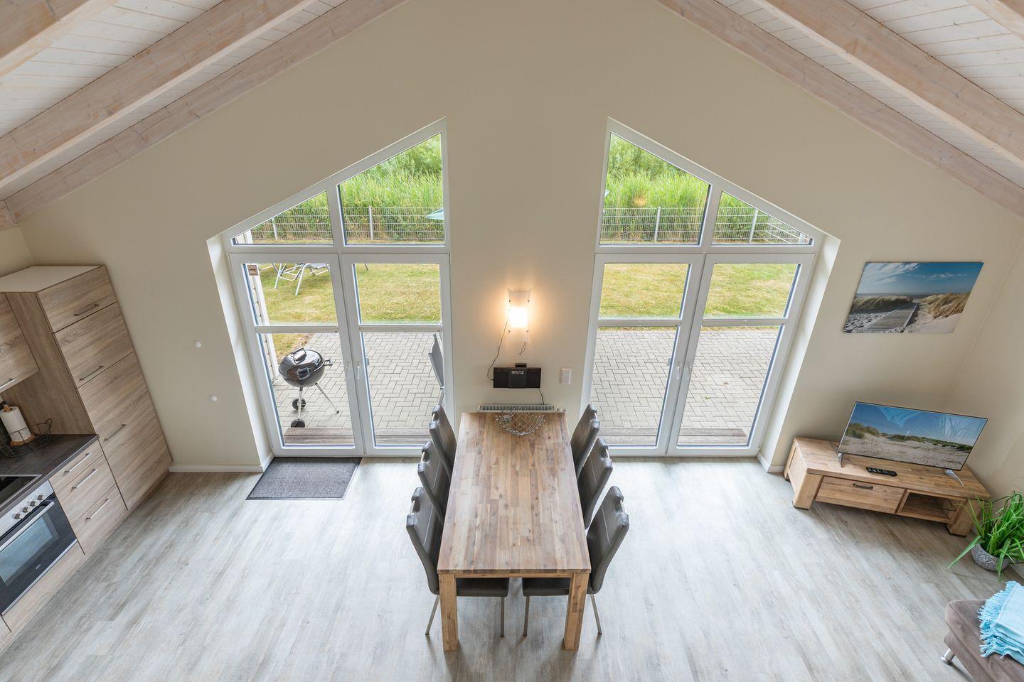 Das 80 m² große Ferienhaus besticht durch seinen modernen, exklusiven Einrichtungsstil im skandinavischen Charme. Zwei Schlafzimmer mit jeweils einem komfortablen Doppelbett (180 x 200 cm) bieten Platz für bis zu vier Personen.