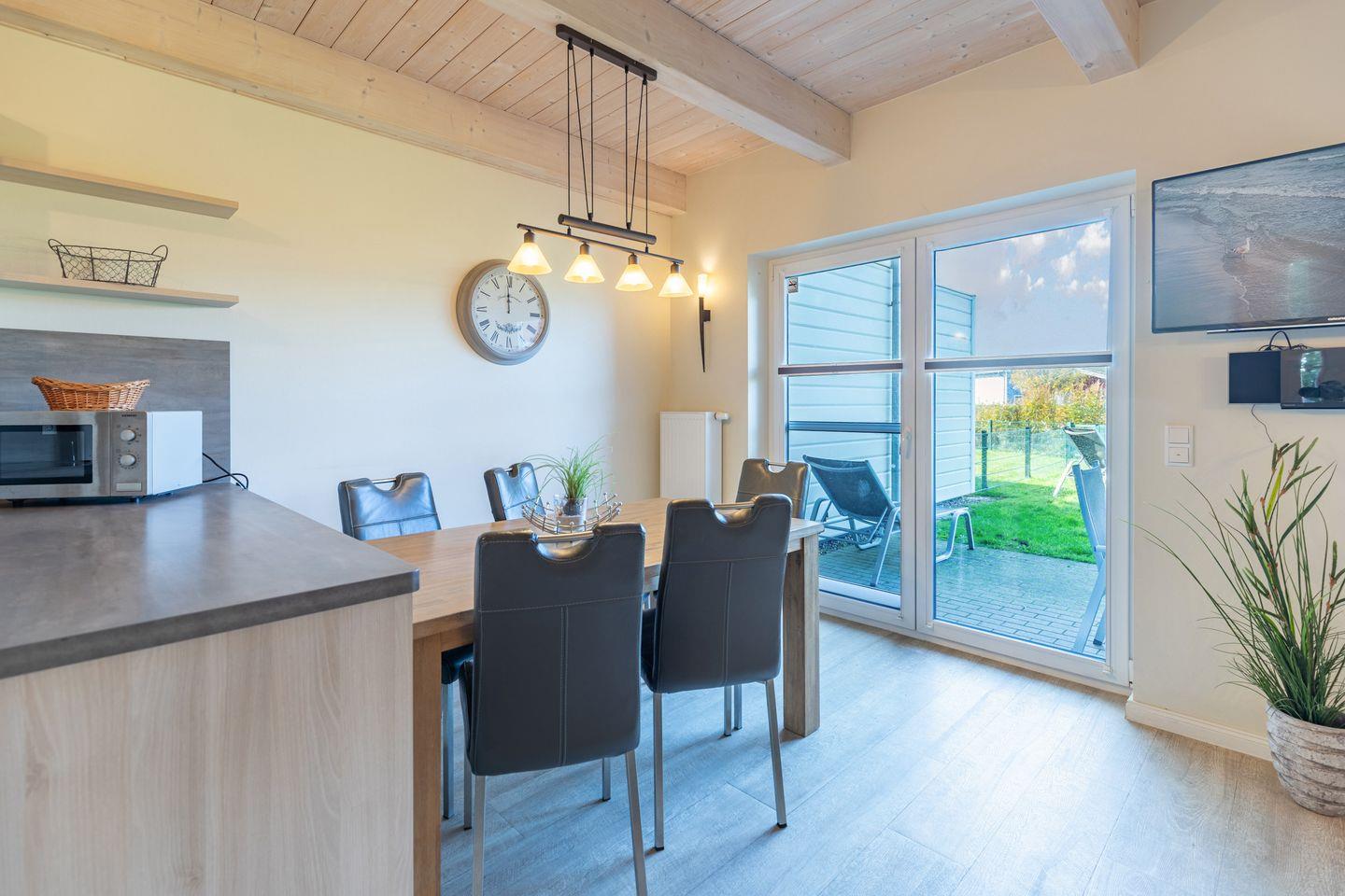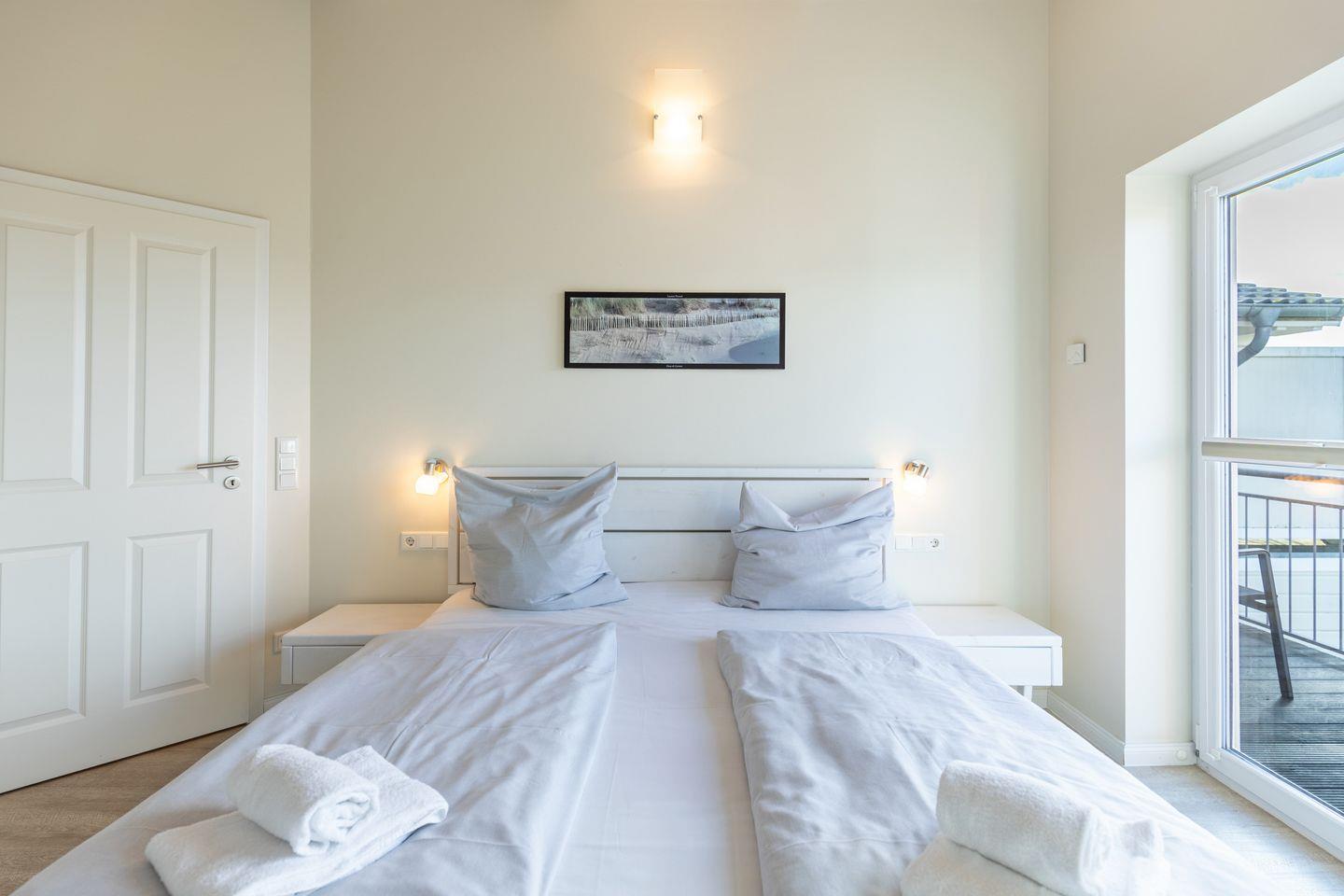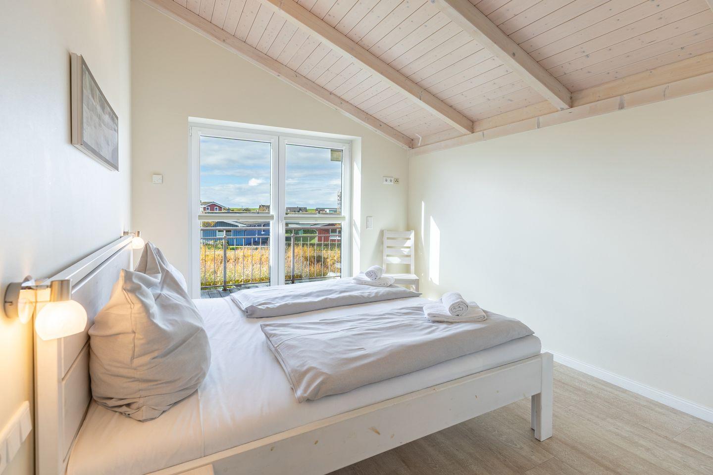Das 100 qm große Ferienhaus ist modern und exklusiv im skandinavischen Charme eingerichtet. Zwei der Schlafzimmer sind mit jeweils einem Komfort-Doppelbett (180 × 200 cm) ausgestattet, das Schlafzimmer im EG verfügt über ein Einzelbett (130 × 200 cm). Insgesamt bietet das Haus Platz für bis zu fünf Personen.