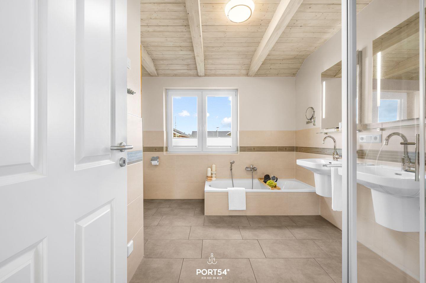 Im Haus stehen dir zwei Schlafzimmer mit Laminatboden und Doppelbetten zur Verfügung. Zwei Klappmatratzen auf der Galerie bieten weitere Schlafmöglichkeiten für Kinder. Für die Kleinen gibt es mehrere Spielmöglichkeiten, darunter einen kleinen Tischkicker. Auch ein Babybett und ein Kinderhochstuhl sind vorhanden. Das Badezimmer ist hochwertig ausgestattet und bietet Dusche, Badewanne, Waschbecken sowie Tageslicht. Zusätzlich gibt es ein Gäste-WC. Für deinen Komfort steht außerdem eine Waschmaschine zur Eigennutzung bereit.