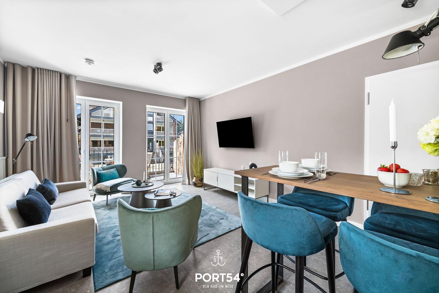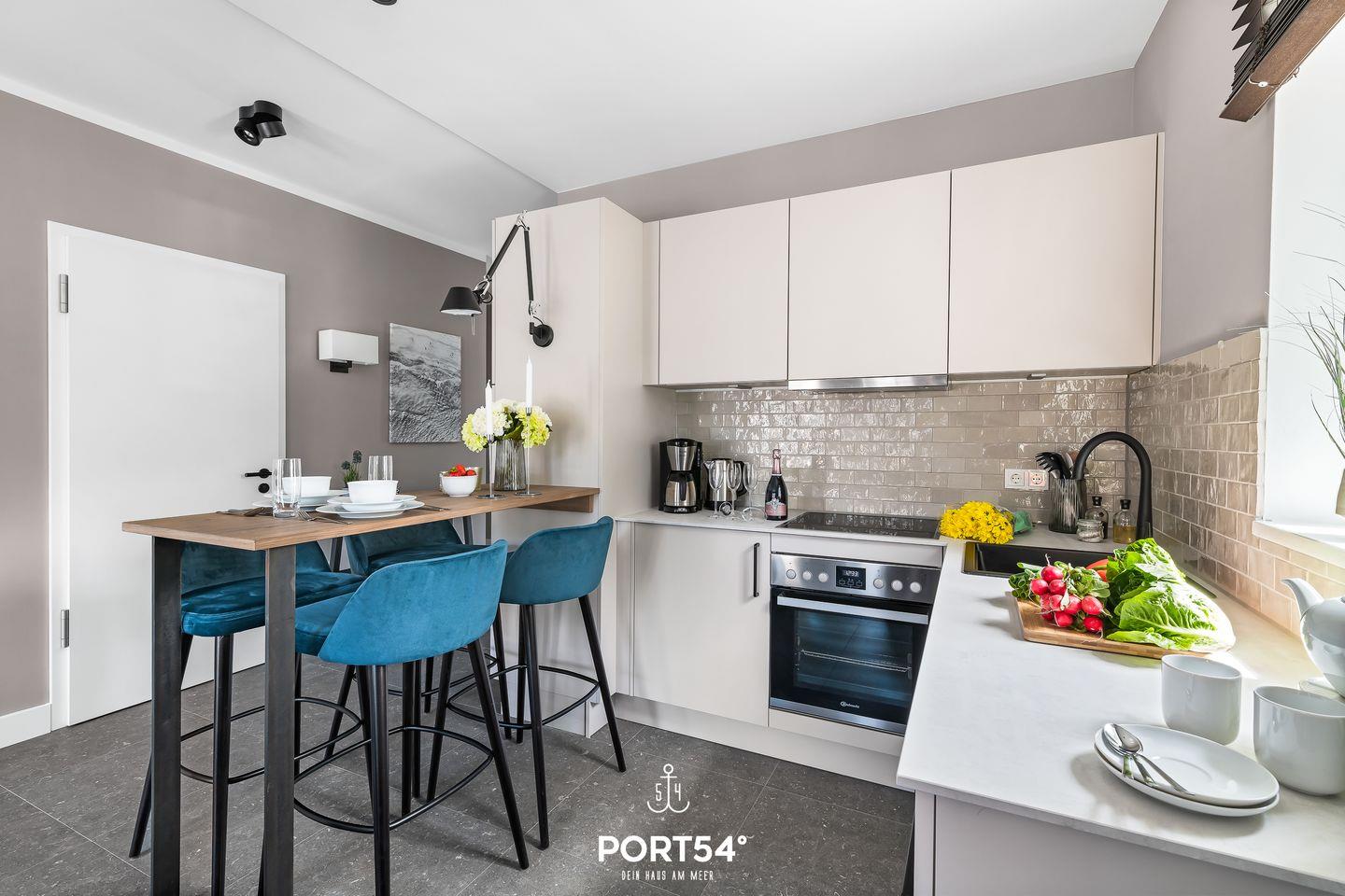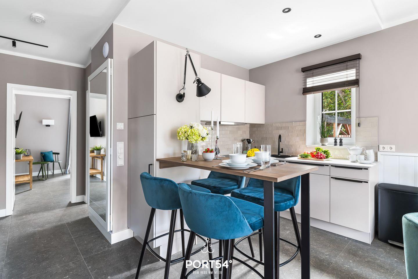 Die Wohnung verfügt über ein separates Schlafzimmer mit einem gemütlichen Doppelbett (180×200 cm) sowie über ein helles Wohnzimmer mit Schlafsofa, auf dem zwei weitere Personen übernachten können. Die offene, moderne Küche ist neu und hochwertig ausgestattet und fügt sich harmonisch in den Wohnbereich ein. Der Wohnbereich lädt dich zum Entspannen nach einem erlebnisreichen Tag an der Nordsee ein. Ergänzt wird das Apartment durch ein modernes Badezimmer mit Dusche, das durch klare Linien und zeitloses Design überzeugt.