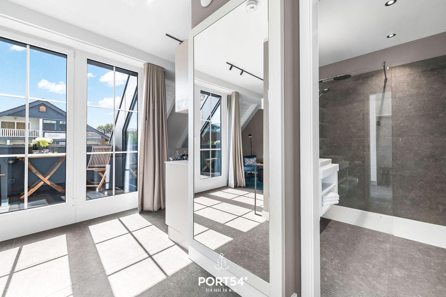 Moderne Ferienwohnung The View A9 mit Meerblick, Sauna, Balkon und privatem Parkplatz in Dagebüll, ideal für Nordseeurlaub.