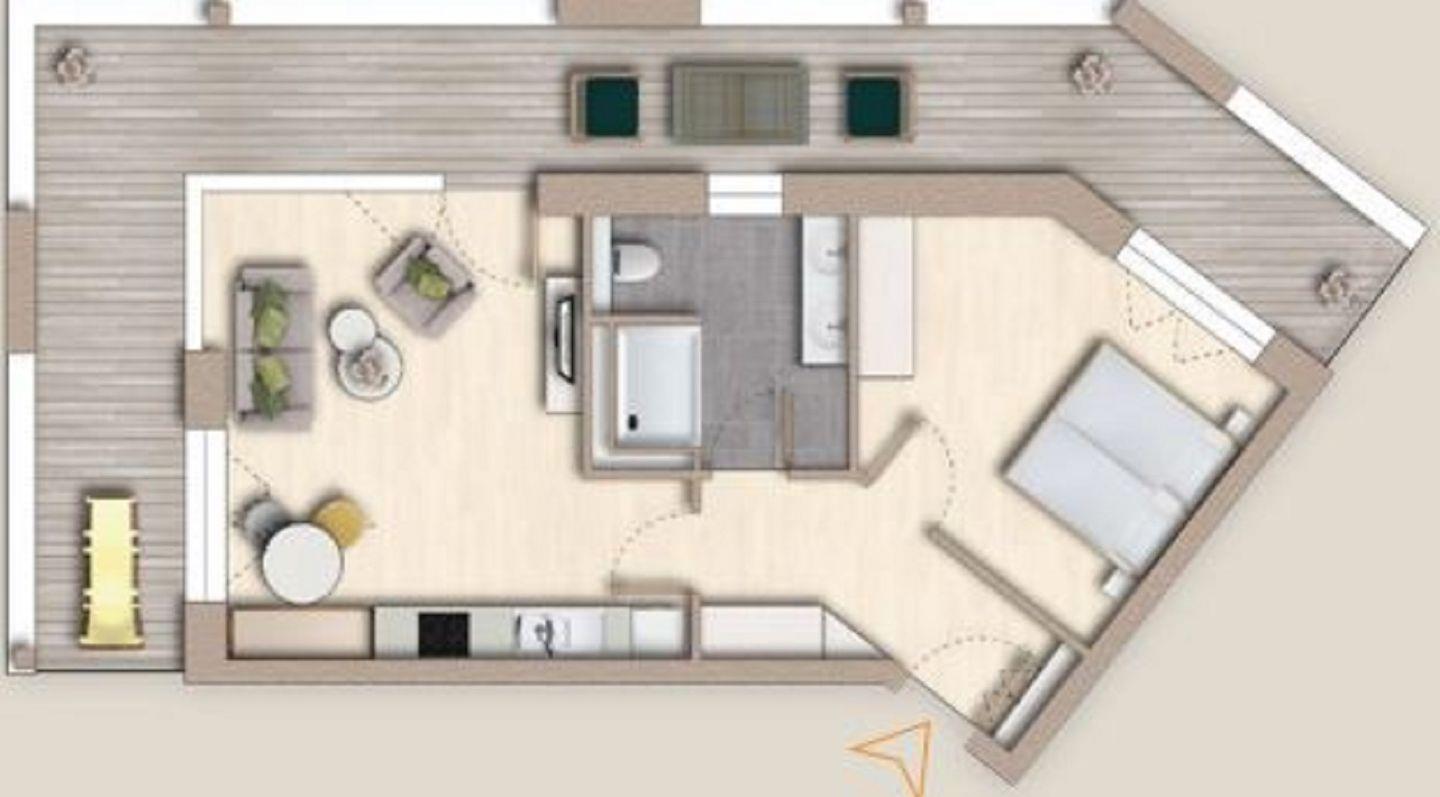 Zur Wohnung gehören ein Balkon mit Gartenmöbeln sowie ein kostenloser Tiefgaragenstellplatz. Ein Aufzug erleichtert dir den Zugang. Zusätzlich kannst du die Sauna nutzen.