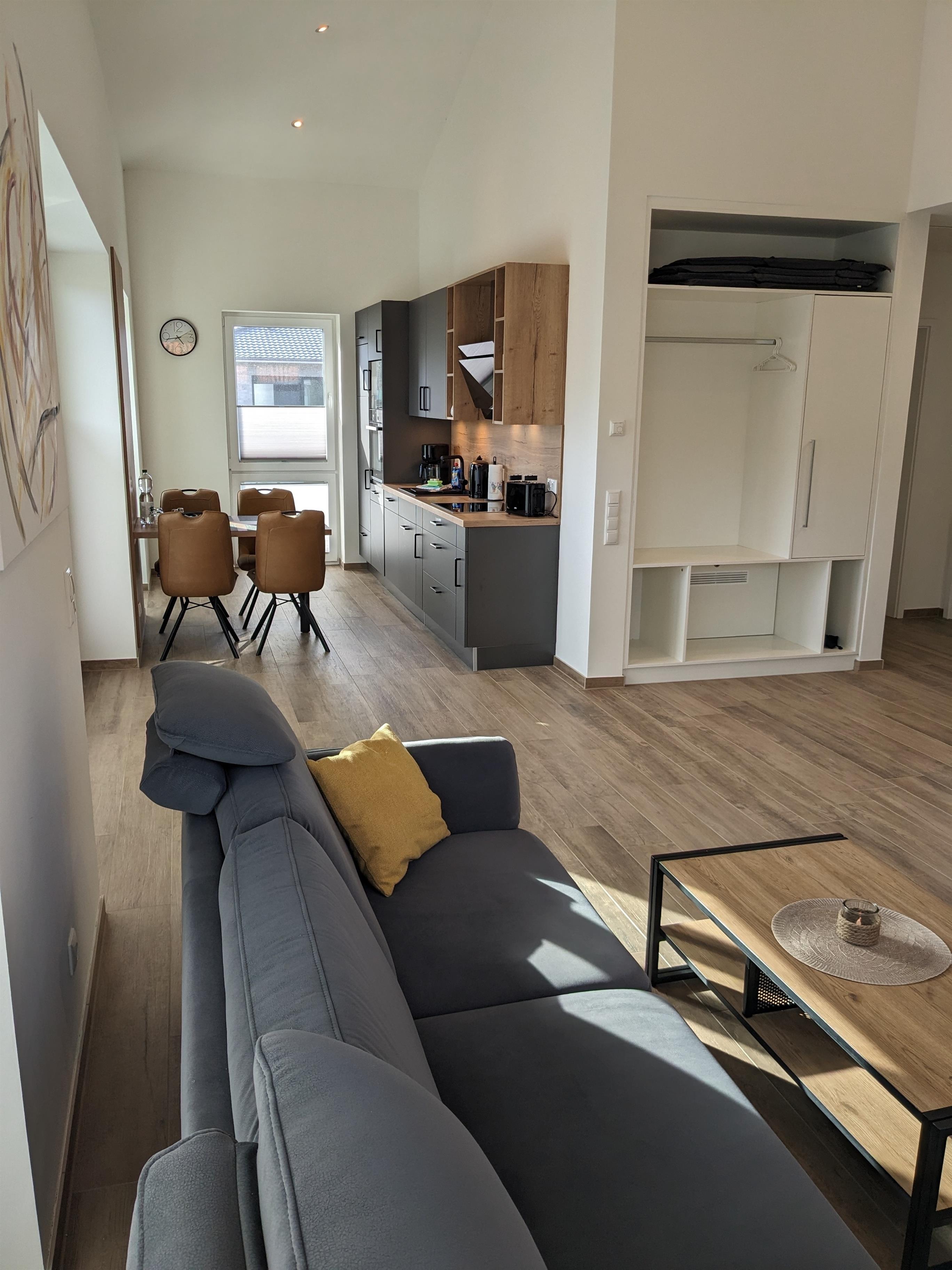 Die im April 2023 fertiggestellte Wohnung bietet Komfort und Raum für bis zu vier Gäste und ein Reisebett.