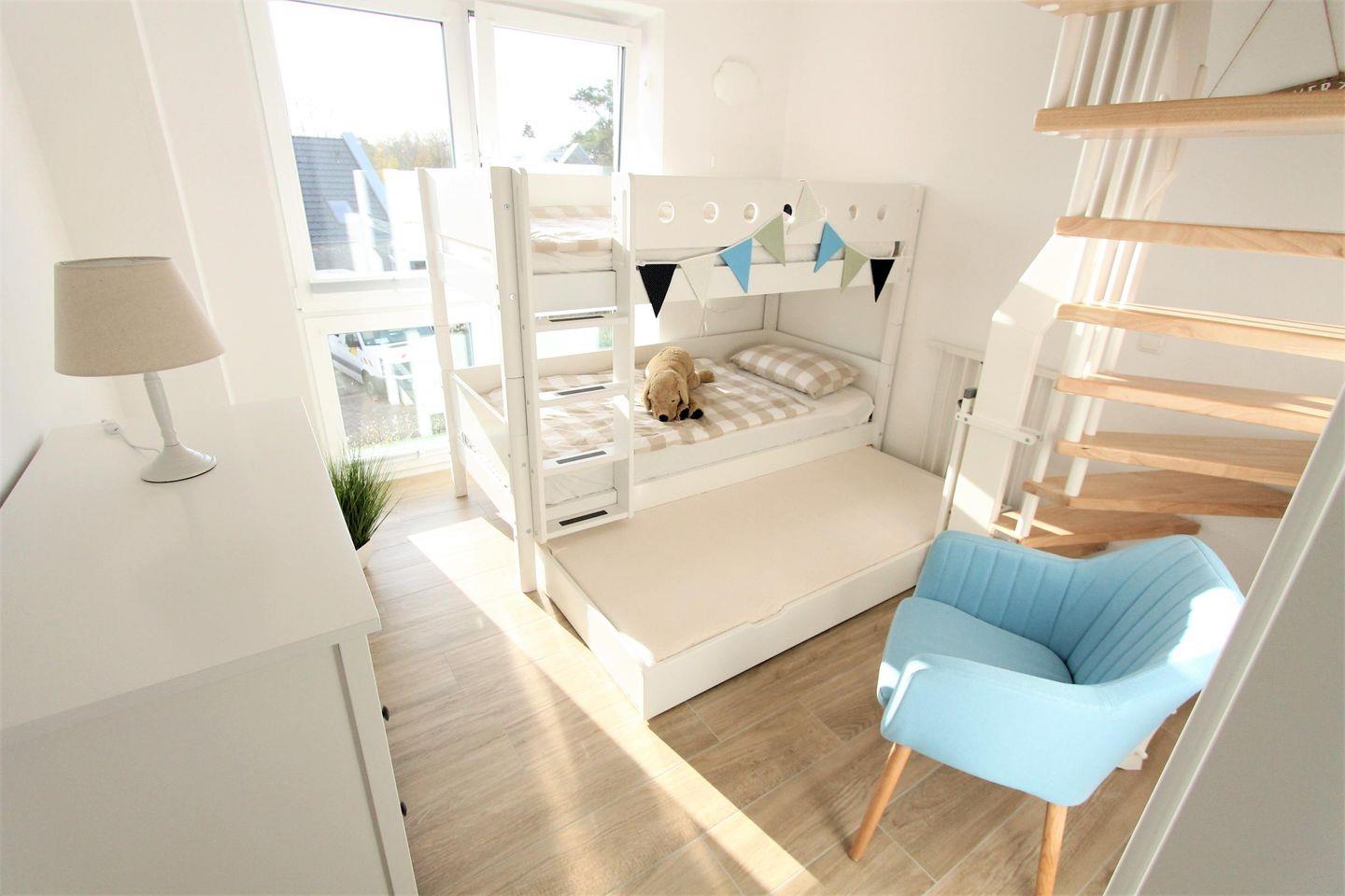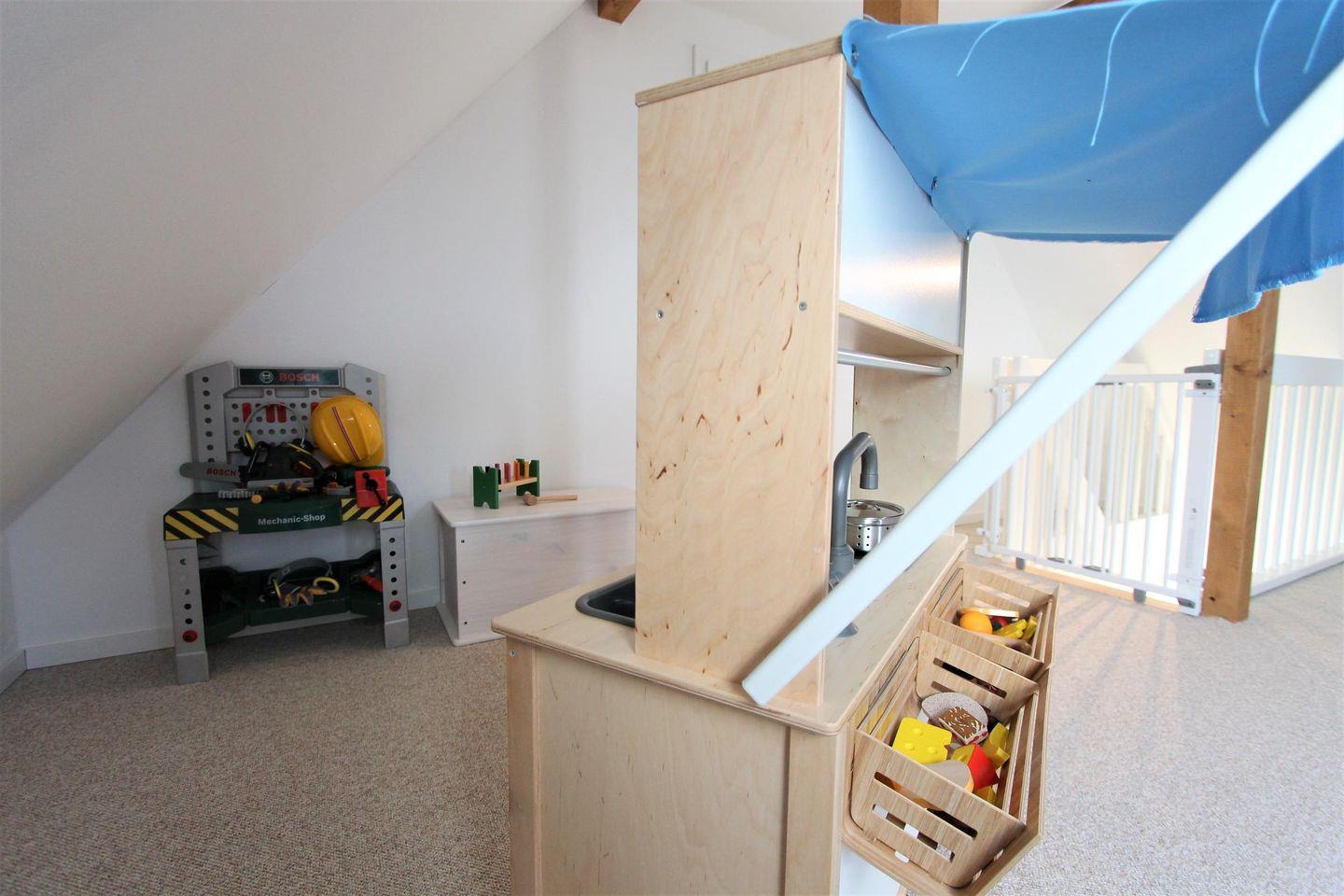 Da wir selbst glückliche Eltern von zwei Kindern sind, haben wir bei der Einrichtung unseres Ferienhauses insbesondere auch Wert auf eine sichere und kinderfreundliche Einrichtung gelegt. Hierzu zählt auch das liebevoll gestaltete Dachgeschoss, das viel Platz für die Kleinen zum Spielen bietet.
