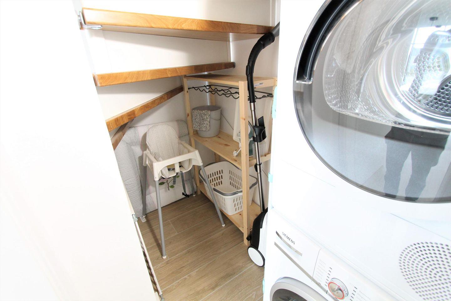 Waschmaschine, Trockner, Staubsauger, Besen und Handfeger, Reinigungsutensilien, Wäscheständer plus Klammern, Wäschekorb, Bügelbrett und Bügeleisen, Sammelbehälter (Glas, Papier)