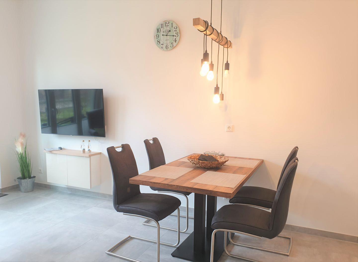 Besonderen Wert wurde auf die Ausstattung gelegt, um einen komfortablen Aufenthalt für alle Gäste zu gewährleisten. Für kalte Tage sorgt die Fußbodenheizung in der gesamten Wohnung, und die zentrale Heizungsanlage sorgt dafür, dass es immer angenehm warm ist. Im Wohnzimmer steht eine bequeme Sofaecke bereit, um entspannende Stunden vor dem Fernseher zu genießen.