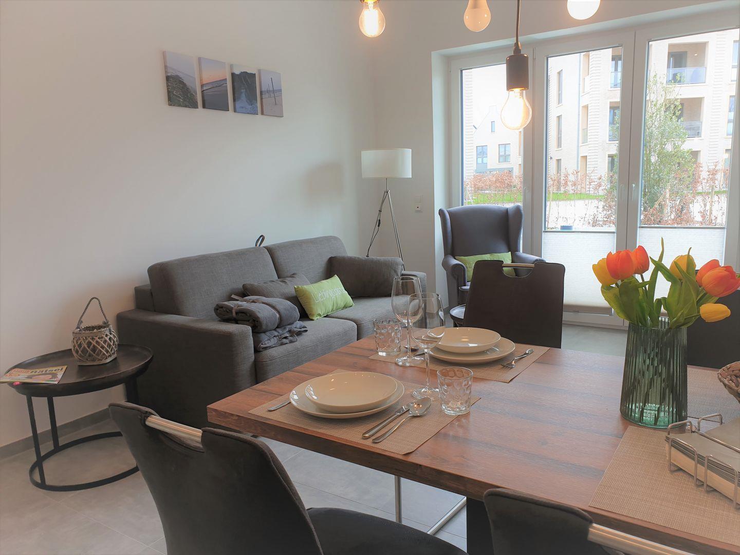 Allgemein: Apartment ca. 48 m², Erdgeschoss, 2 Personen, kostenfreier Pkw-Stellplatz, Fußbodenheizung, WLAN, Nichtraucherwohnung, keine Haustiere