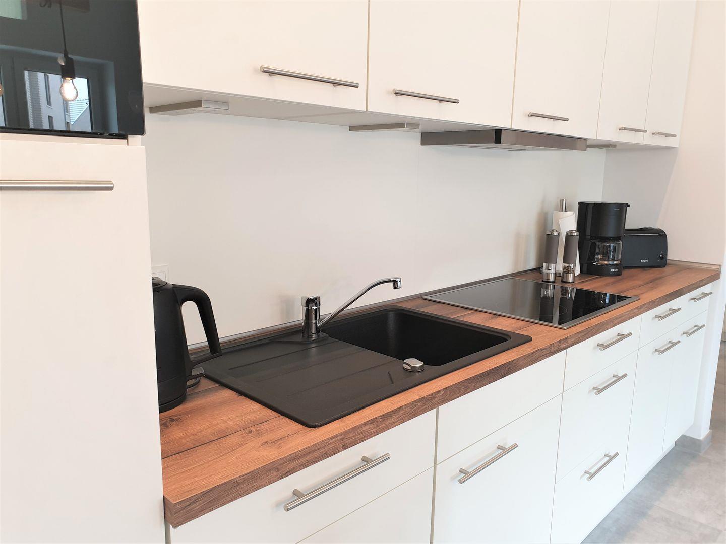 Das Apartment verfügt über ein gemütliches Schlafzimmer, ein stilvolles Badezimmer mit einer bodengleichen Dusche und ein offenes Wohn- und Esszimmer, das für gesellige Abende einlädt. Die offene Küche ist komplett ausgestattet mit modernen Geräten wie einem Cerankochfeld, einem Kühlschrank mit Gefrierfach, einem Spülmaschine, einem Backofen sowie nützlichen Küchenutensilien. Egal, ob Sie sich ein schnelles Frühstück oder ein festliches Dinner zubereiten möchten, hier finden Sie alles, was Sie brauchen. Der angrenzende Essbereich ist der perfekte Ort, um gemeinsam zu schlemmen und die Erlebnisse des Tages Revue passieren zu lassen.