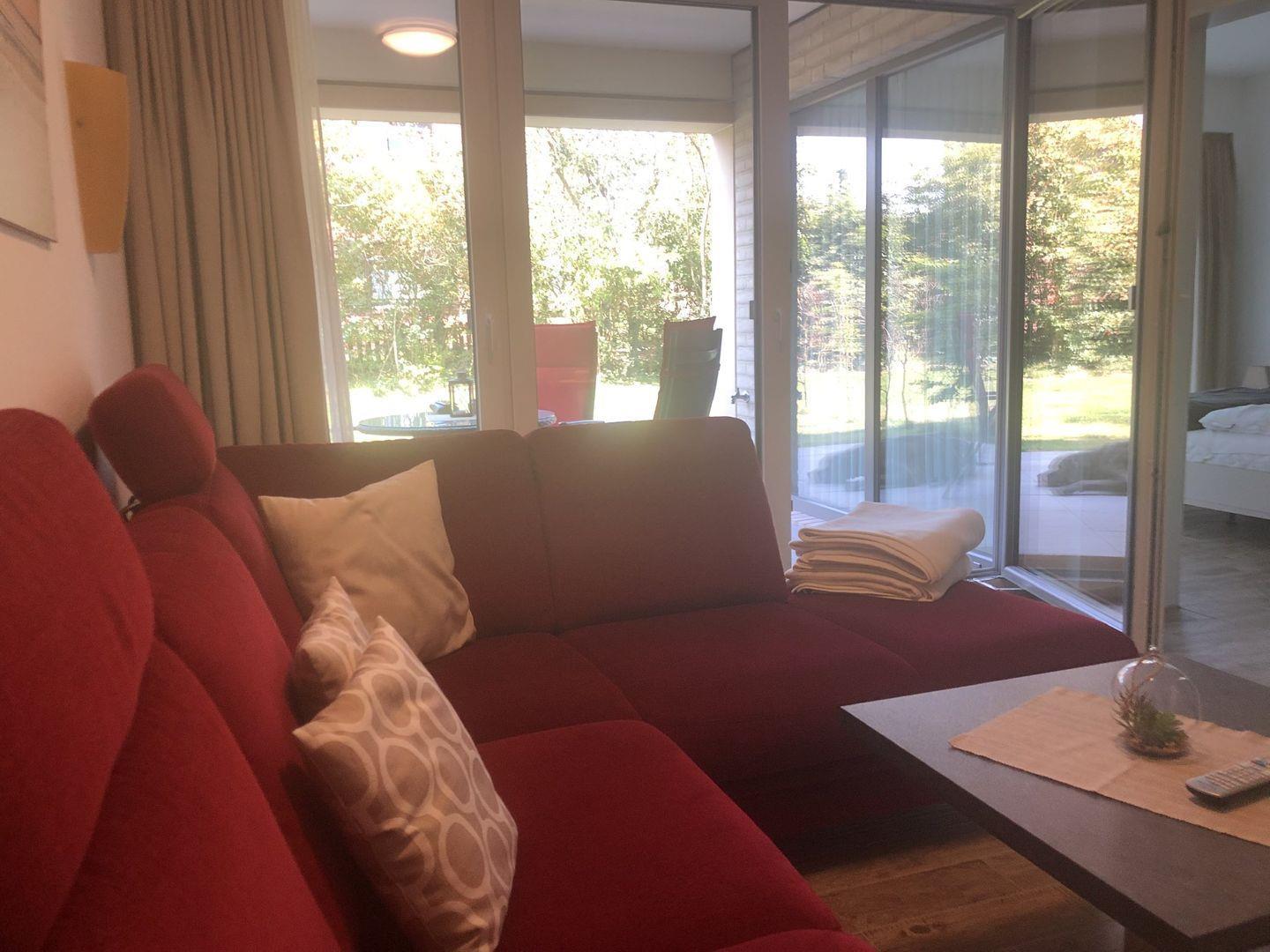 Ein großzügiger gemütlicher Wohn und Essbereich mit dem Blick durch die bodentiefen Fenster wird Sie begeistern. Die Wohnung ist hell und modern eingerichtet.