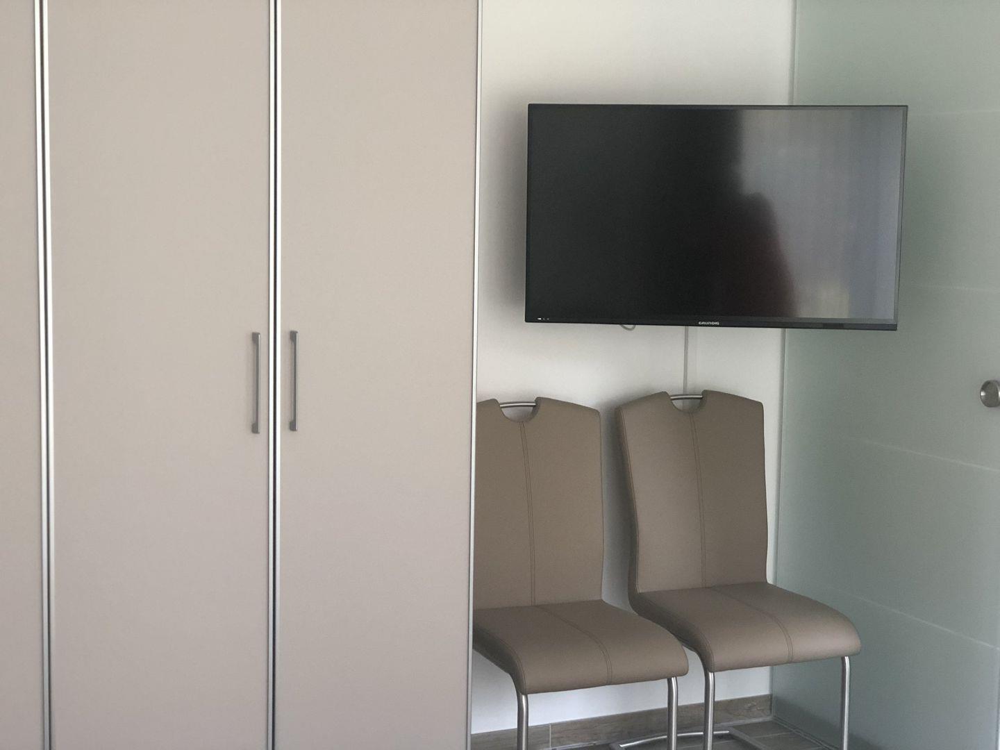 Auch im separaten Schlafzimmer komfortablem Doppelbett, Flat-TV und großem Kleiderschrank bietet viel Tageslicht.
