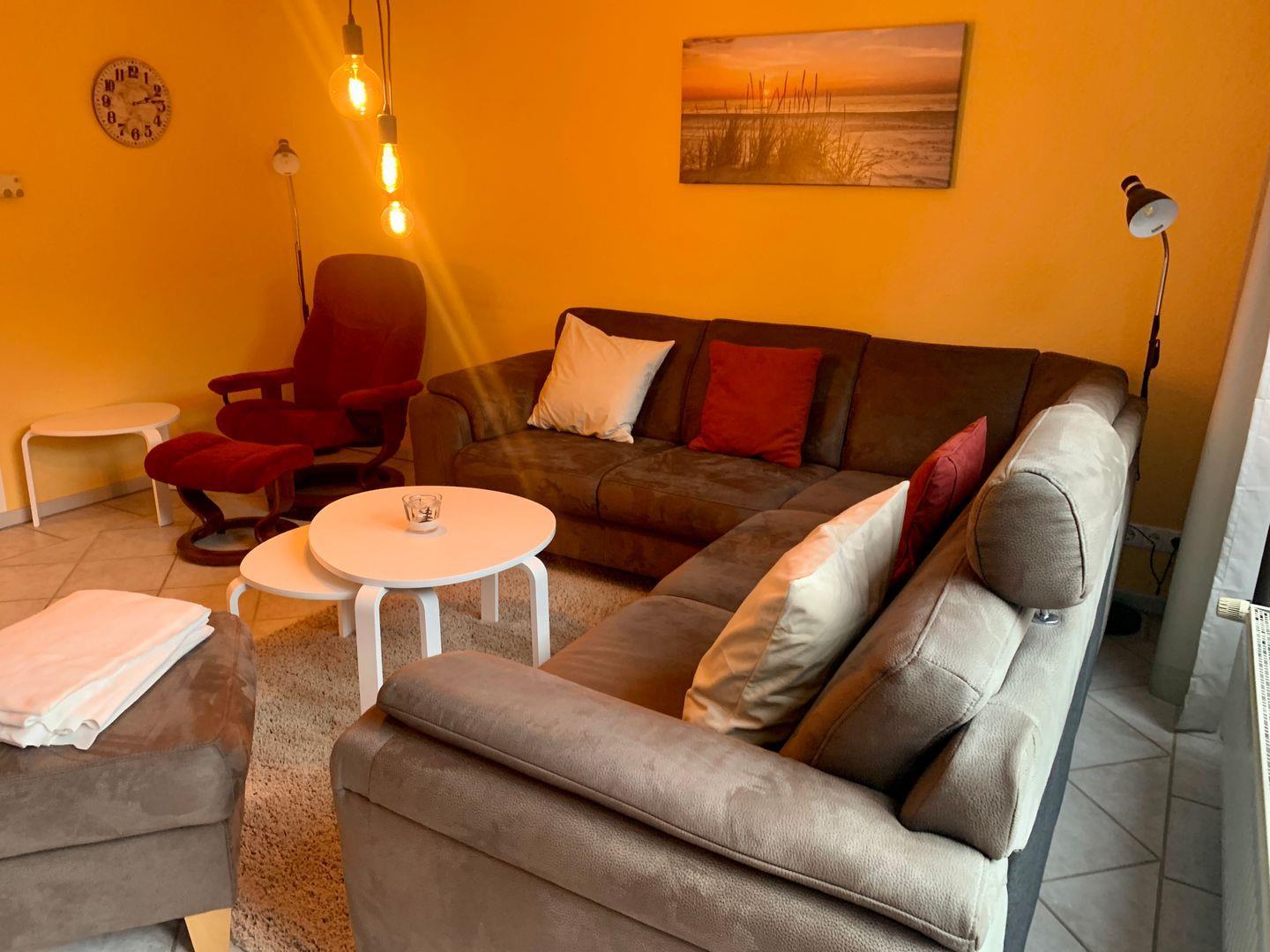 Das Große Freiheit Ferienhaus in Dangast bietet auf 100 m² Platz für bis zu 6 Gäste in 3 Schlafzimmern. Die moderne Unterkunft verfügt über eine offene Küche, ein gemütliches Wohnzimmer mit Sofaecke und drei Fernsehern, ideal für Familien und Freunde.