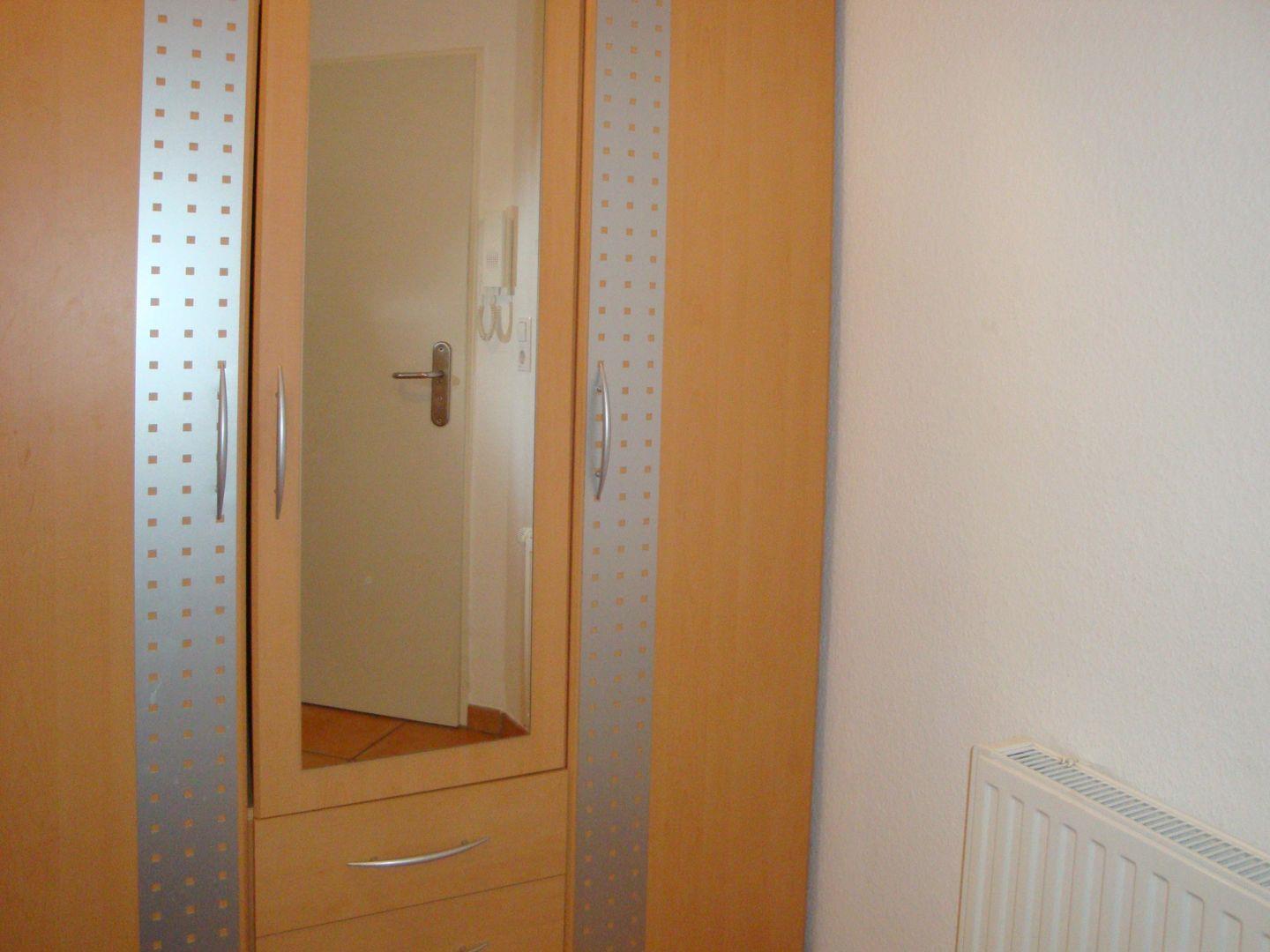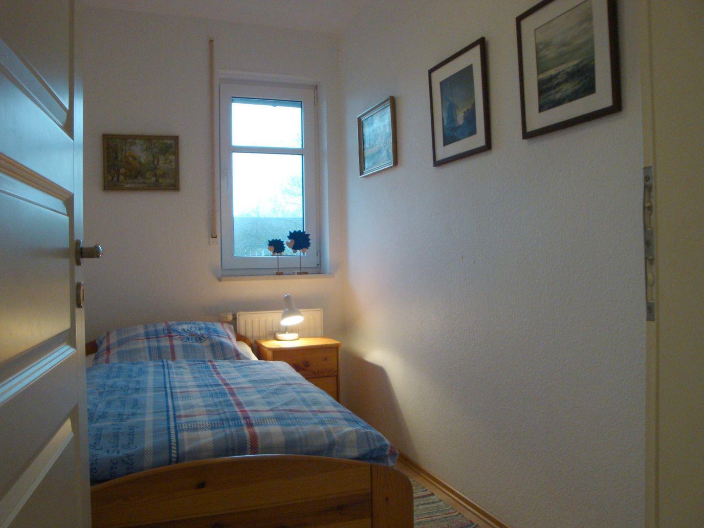 2. Schlafzimmer: Schlafzimmer mit einem Einzelbett (Maße: 90 x 200 cm), Kleiderschrank, Rolladen zur Verdunkelung