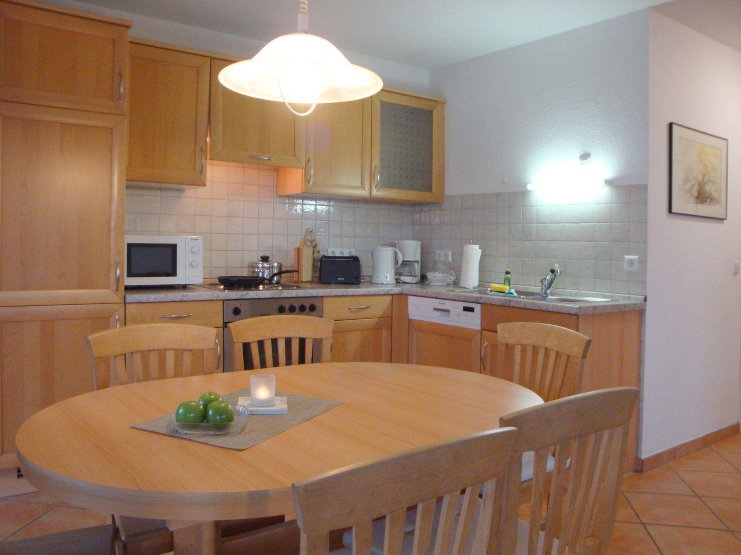 Kochbereich: offener, voll ausgestatteter Kochbereich, Geschirrspüler, Kochfeld, Mikrowelle, Backofen, Kaffeemaschine, Kühlschrank mit Gefrierfach, Eierkocher, Wasserkocher, Toaster, Mixer