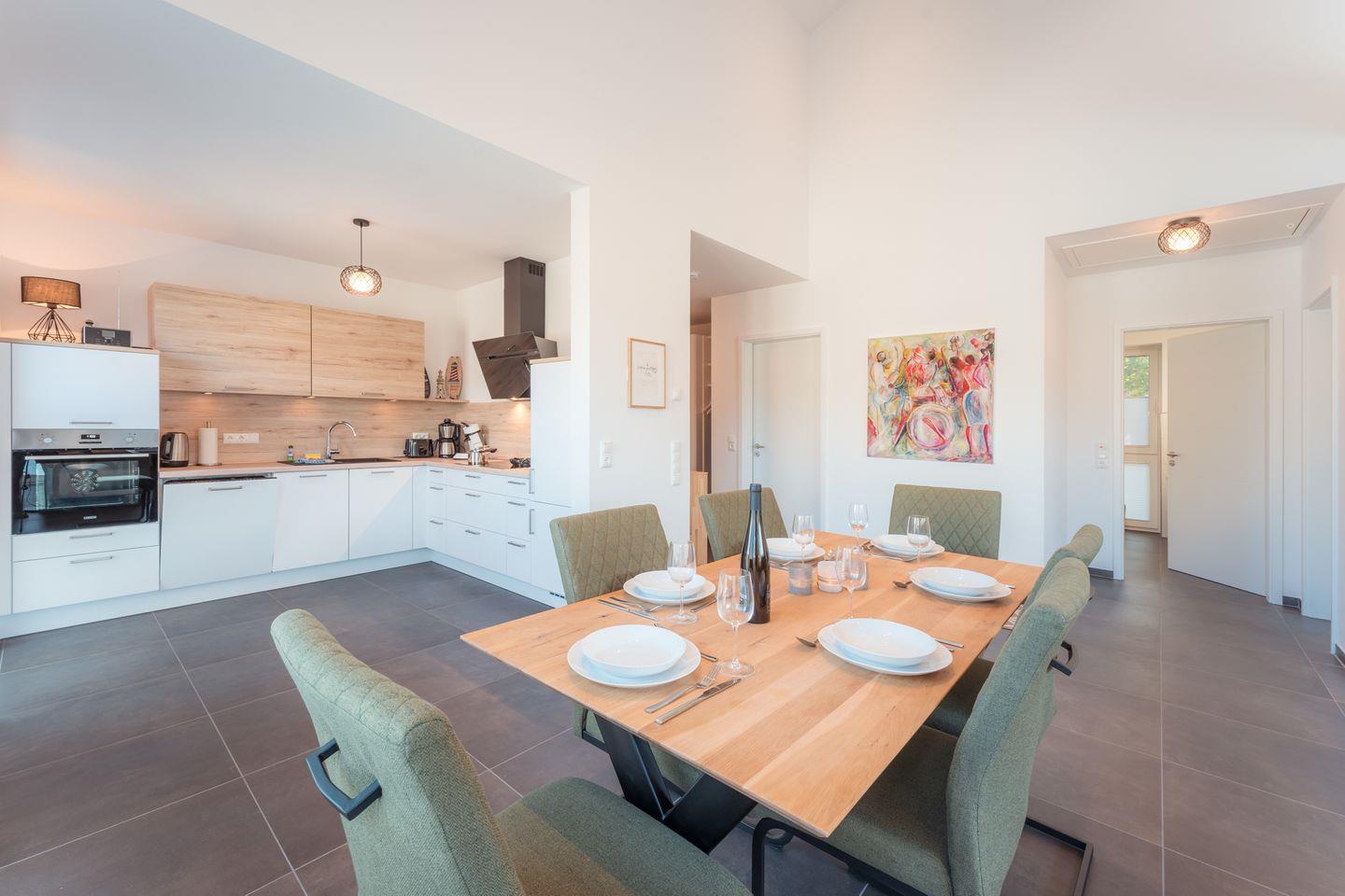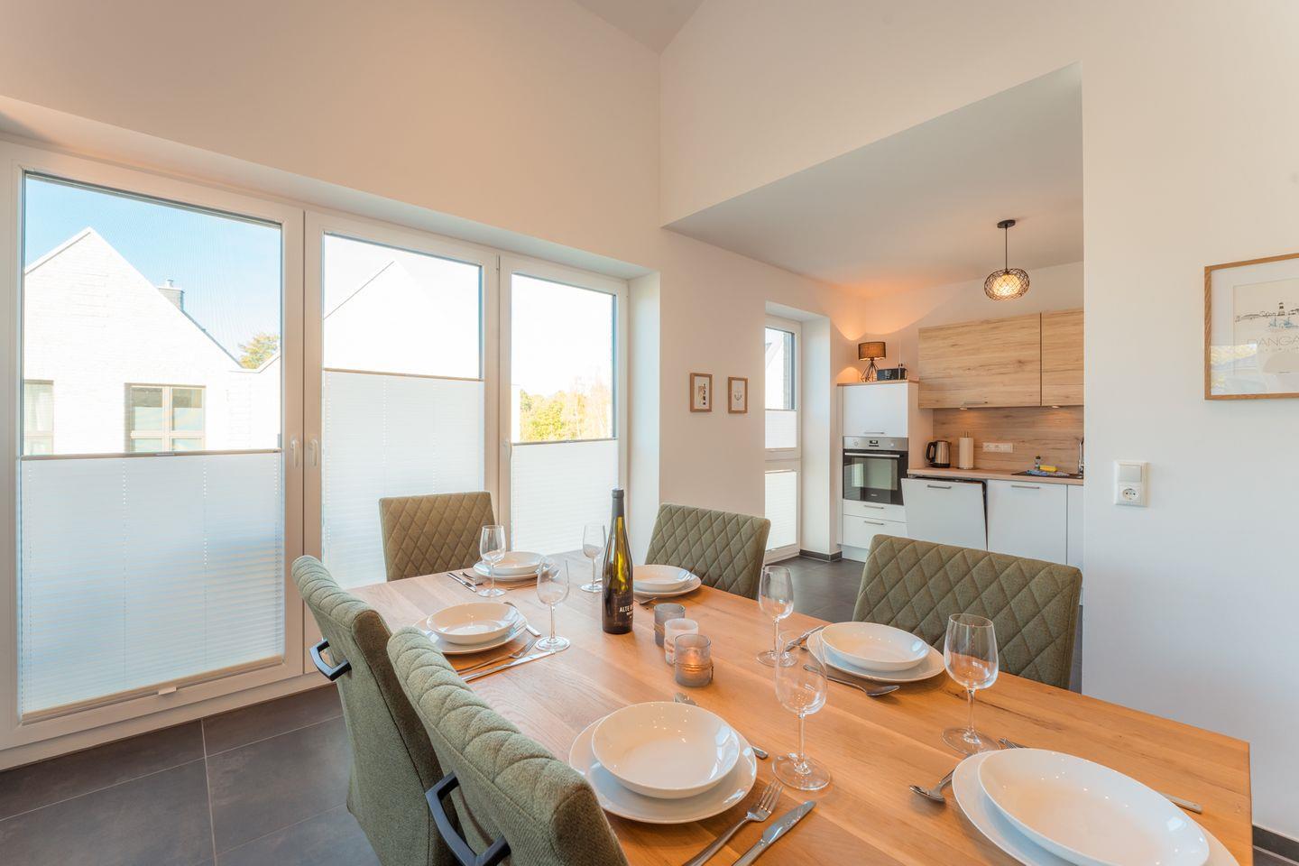 Esszimmer: großer Tisch mit 6 bequemen Stühlen