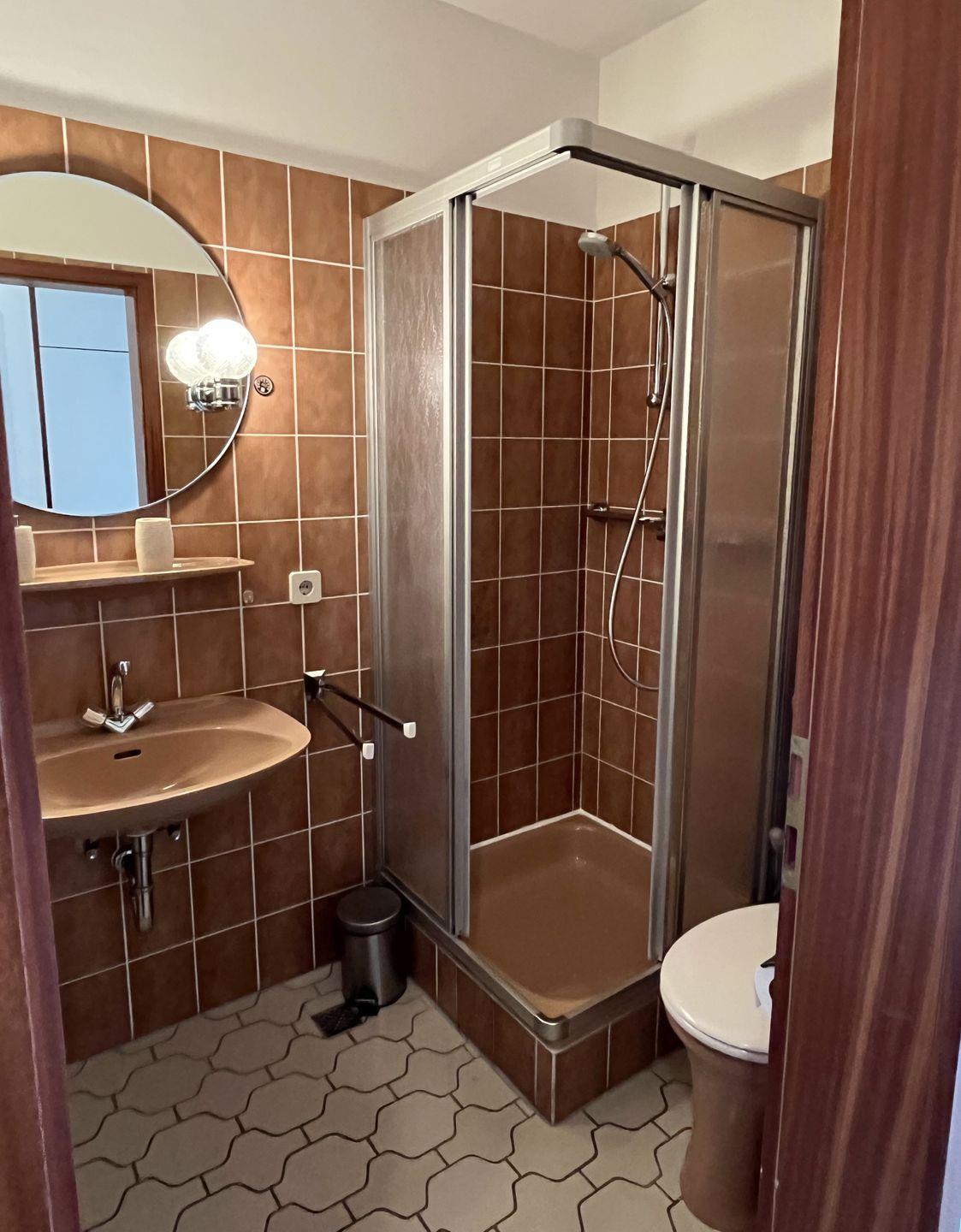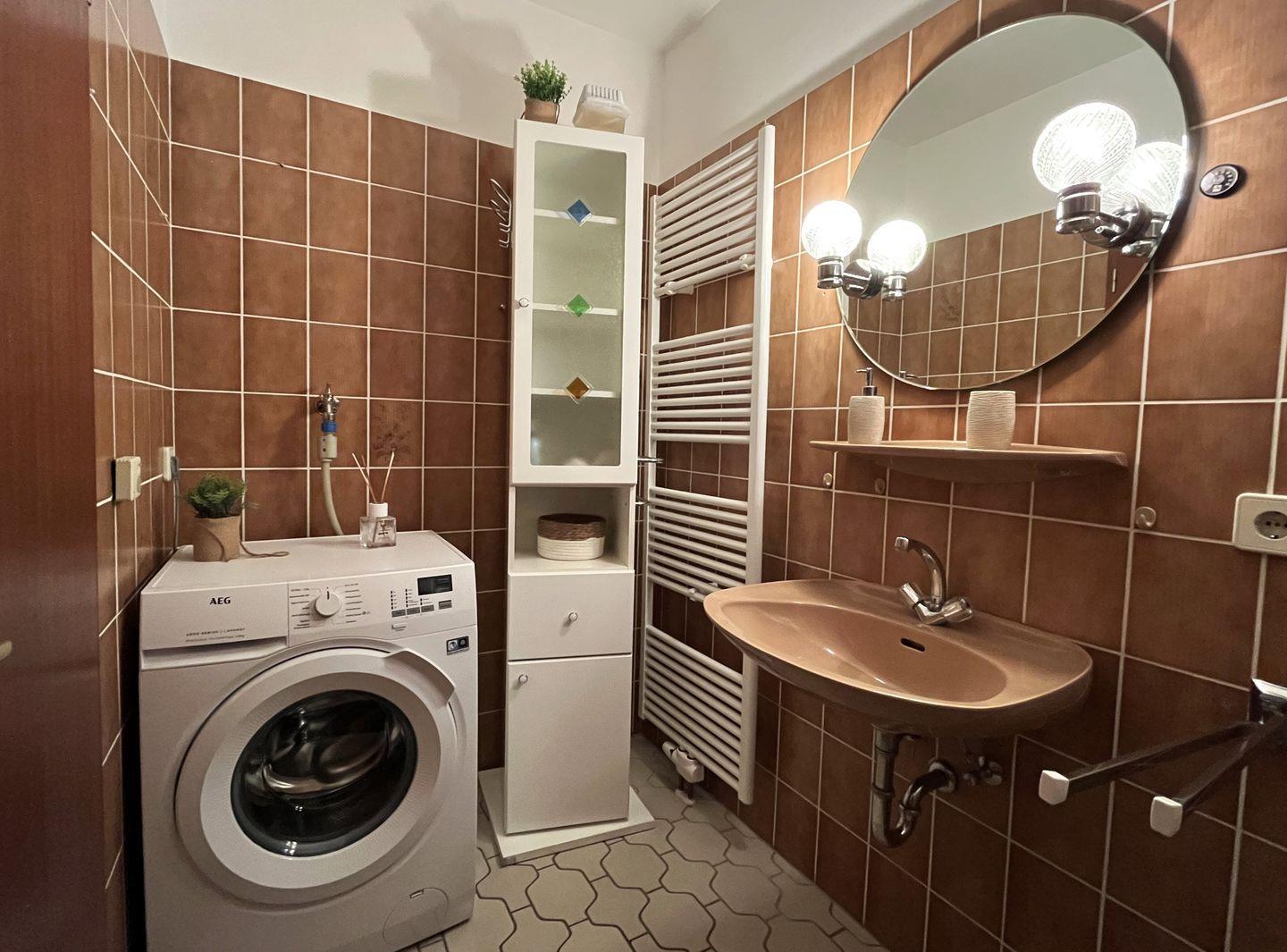 Im Bad finden Sie eine Dusche, eine Waschmaschine und natürlich ein WC und einen Waschtisch.