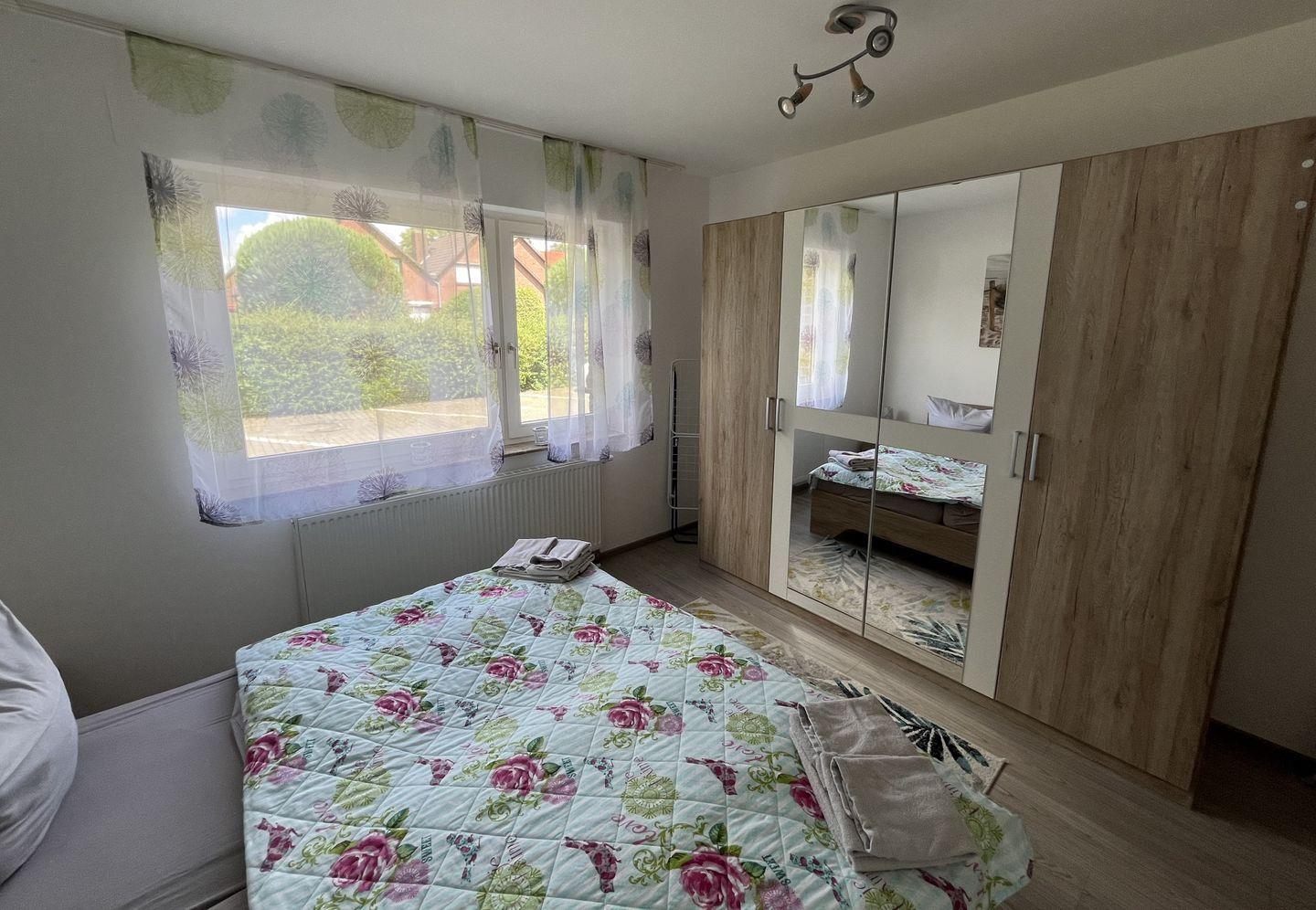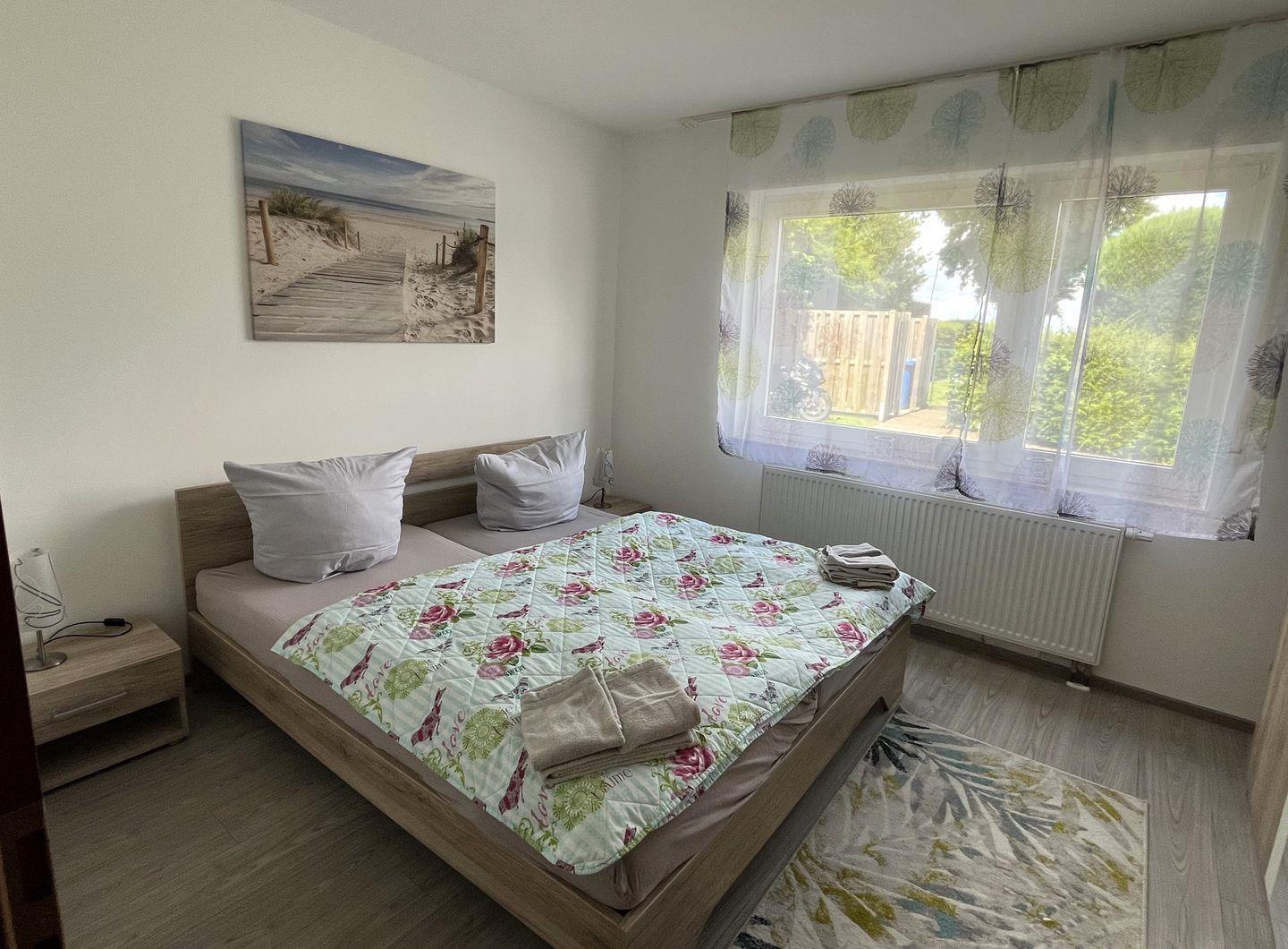 Im Schlafzimmer steht ein Doppelbett in der Größe 180 x 200 cm (2 Einzelmatratzen 90x200 cm). Ein großer Kleiderschrank bietet viel Stauraum für Ihre Kleidung.