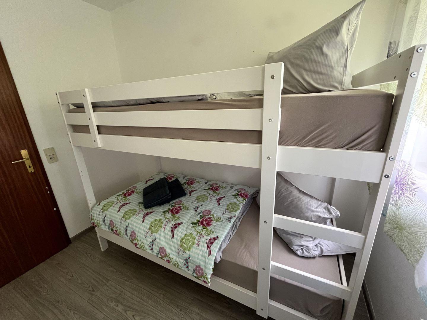 Im gemütlichen "Kinderzimmer" mit Etagenbett (2 Matratzen 90x200 cm) und Kommode finden die dritte und vierte Person ihre Schlafmöglichkeit