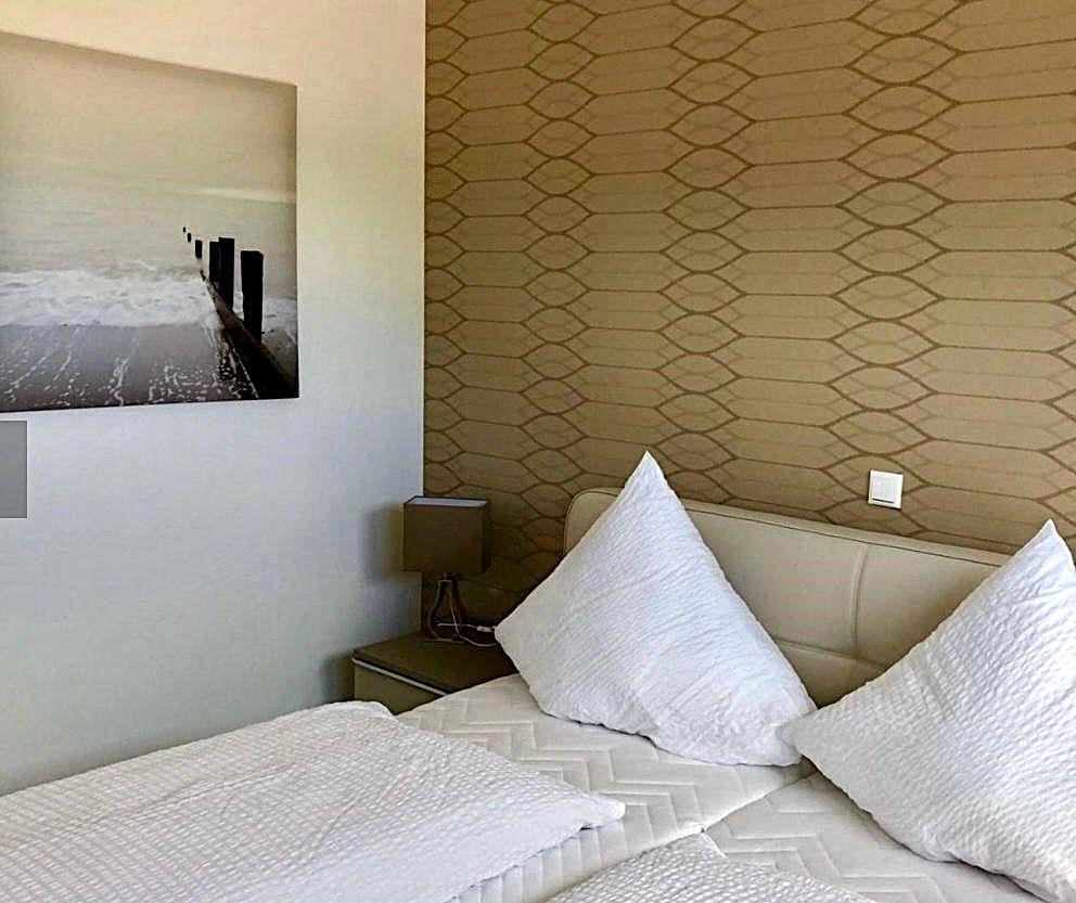Mit einer Fläche von 63 m² hat das Apartment Platz für bis zu fünf Personen und verfügt über zwei separate Schlafzimmer, die durch eine freundliche und helle Atmosphäre bestechen. Der offene Wohnbereich bildet das Herzstück der Ferienwohnung und lädt mit einer einladenden Sofaecke und einem Essbereich zum Verweilen ein. Hier können Sie gemütlich zusammensitzen, spielen oder einfach die Zeit vergessen. Die moderne Ausstattung umfasst unter anderem einen TV für entspannte Abende und kostenloses WLAN, damit Sie auch im Urlaub immer verbunden bleiben.