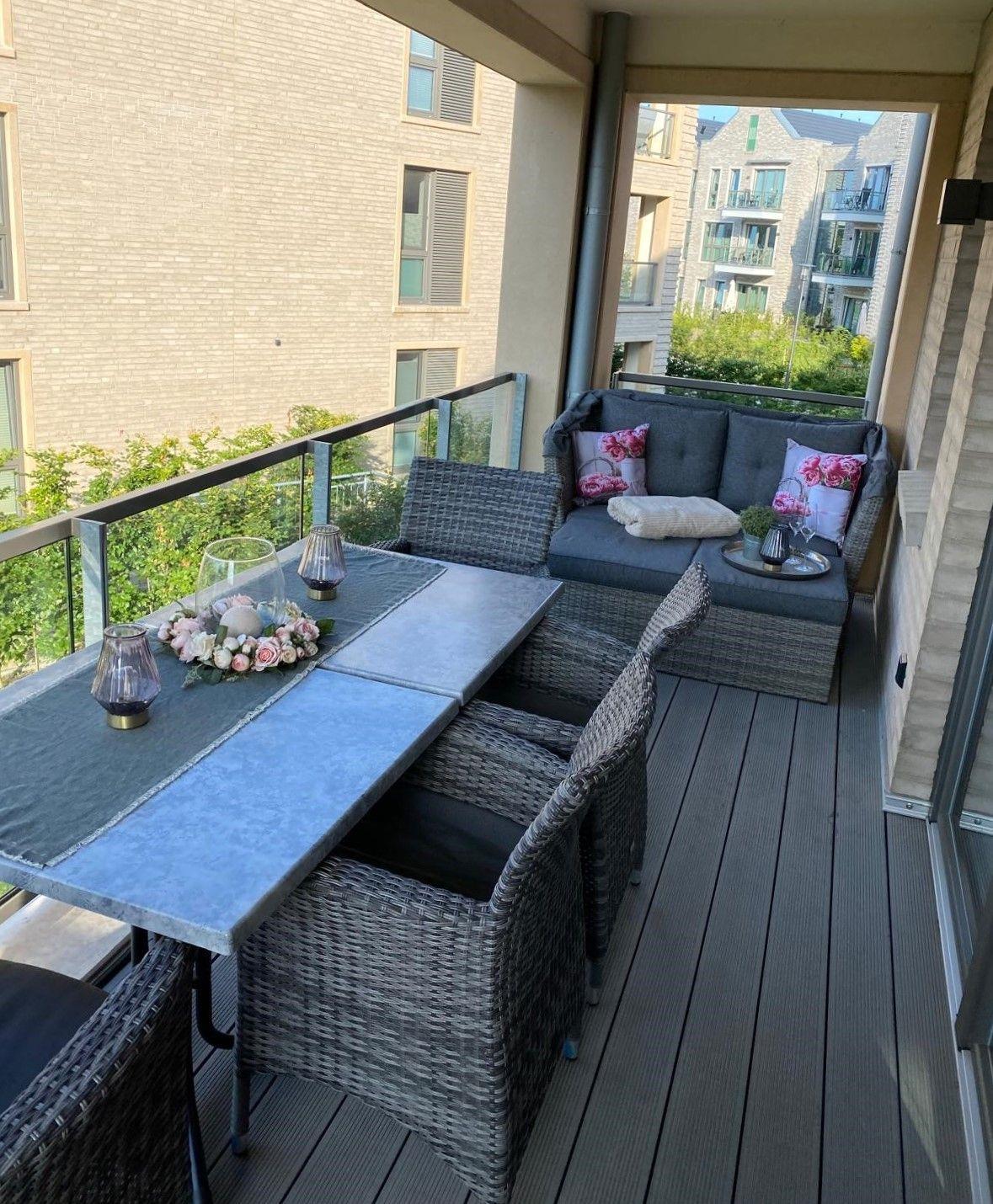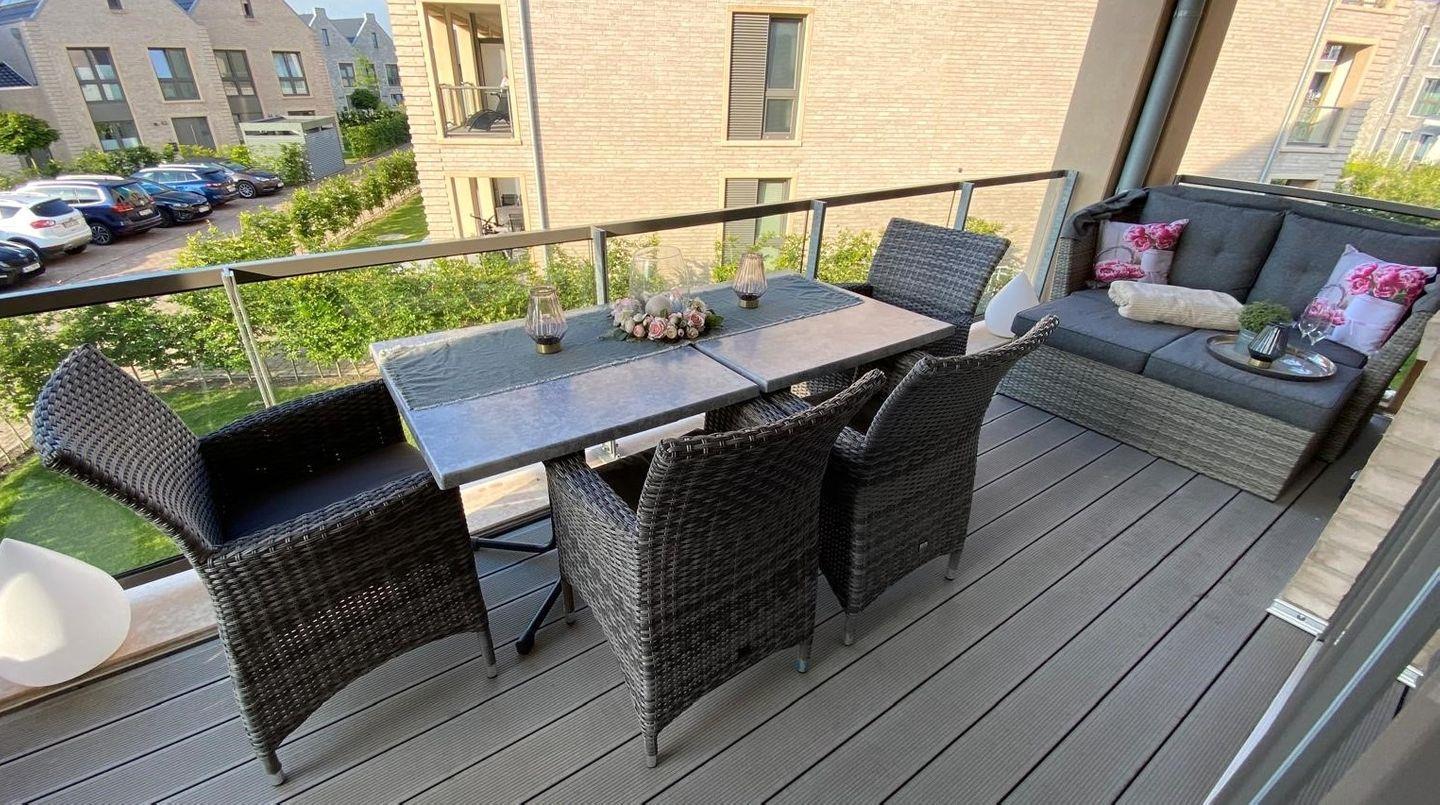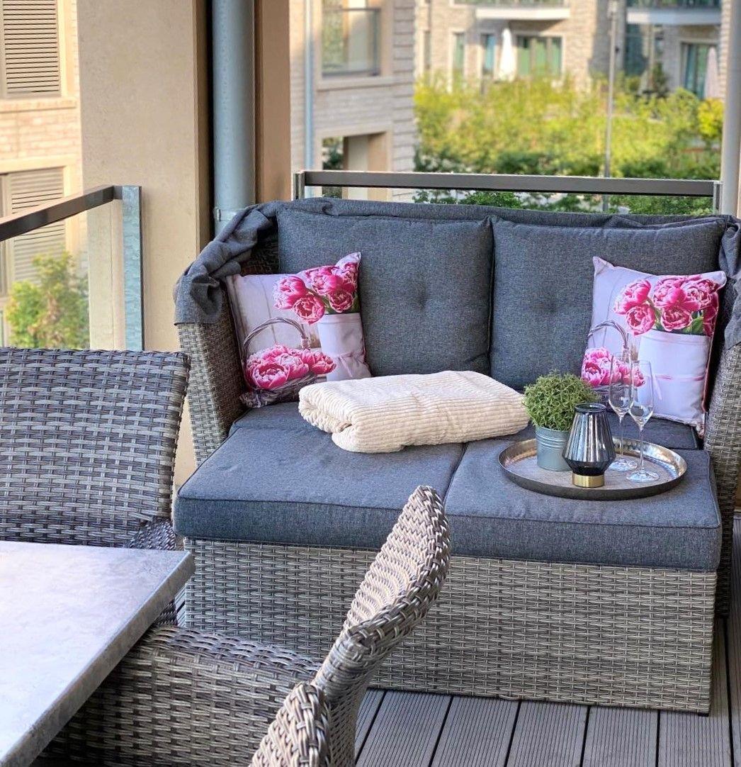 Ausstattung außen: überdachte Terrasse, hochwertige Gartenmöbel: Sitzecke und Rattanlounge mit Kissen, PKW-Stellplatz - befindet sich in unmittelbarer Hausnähe