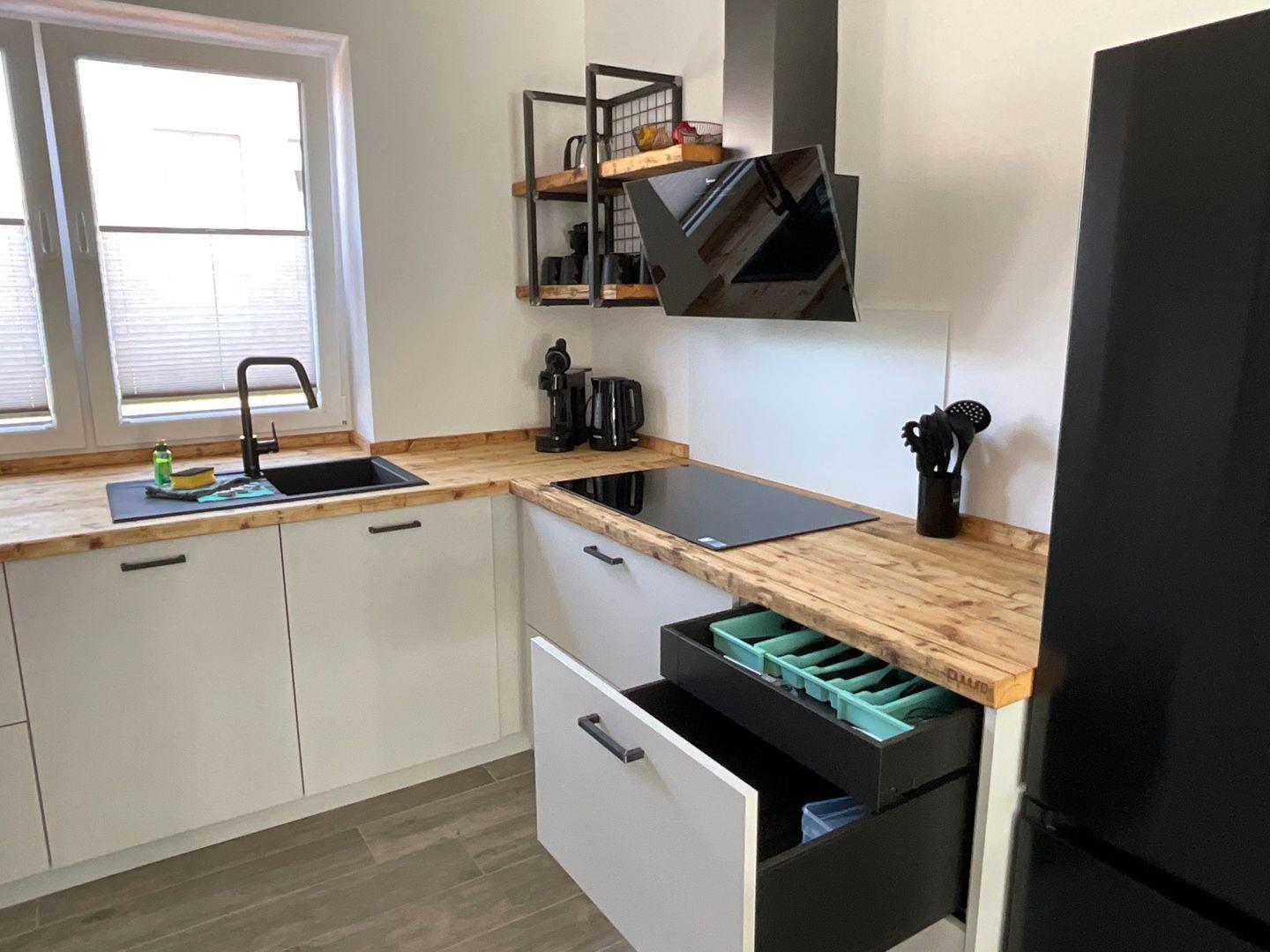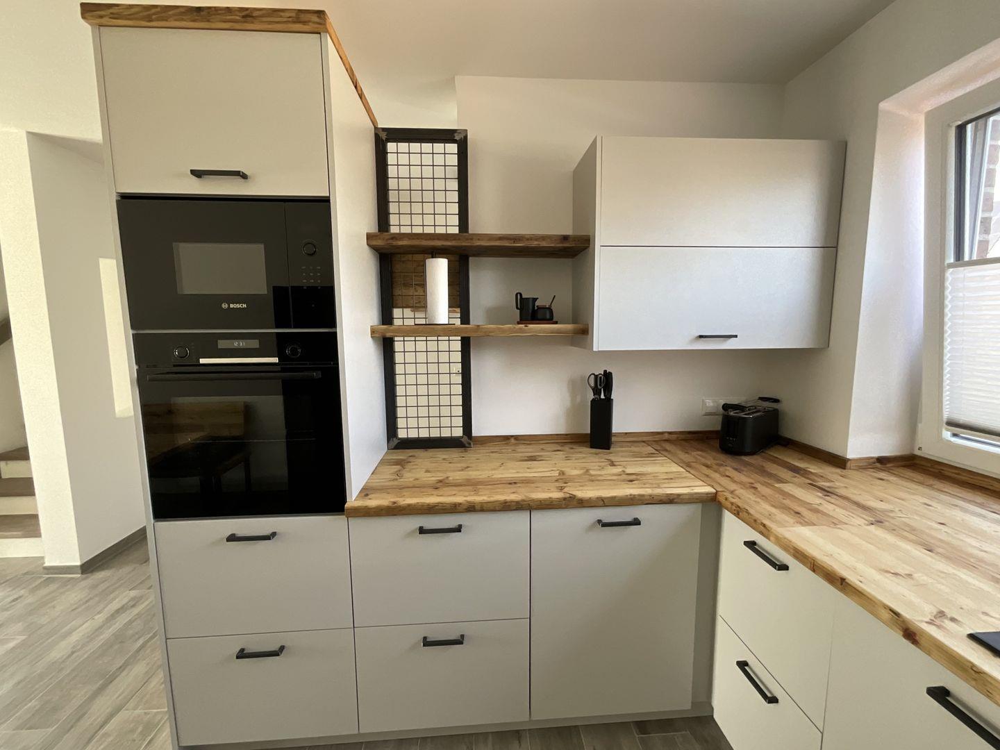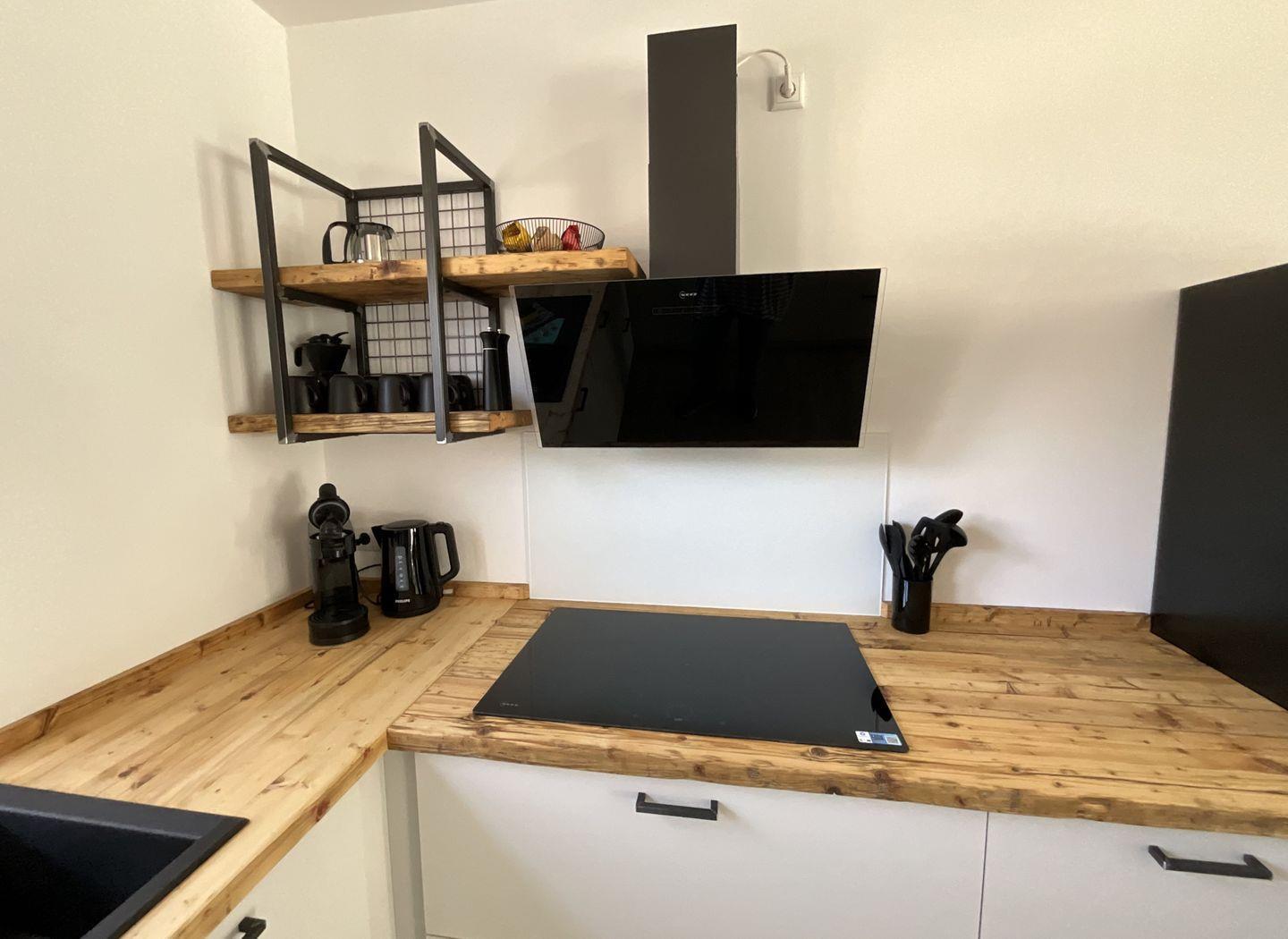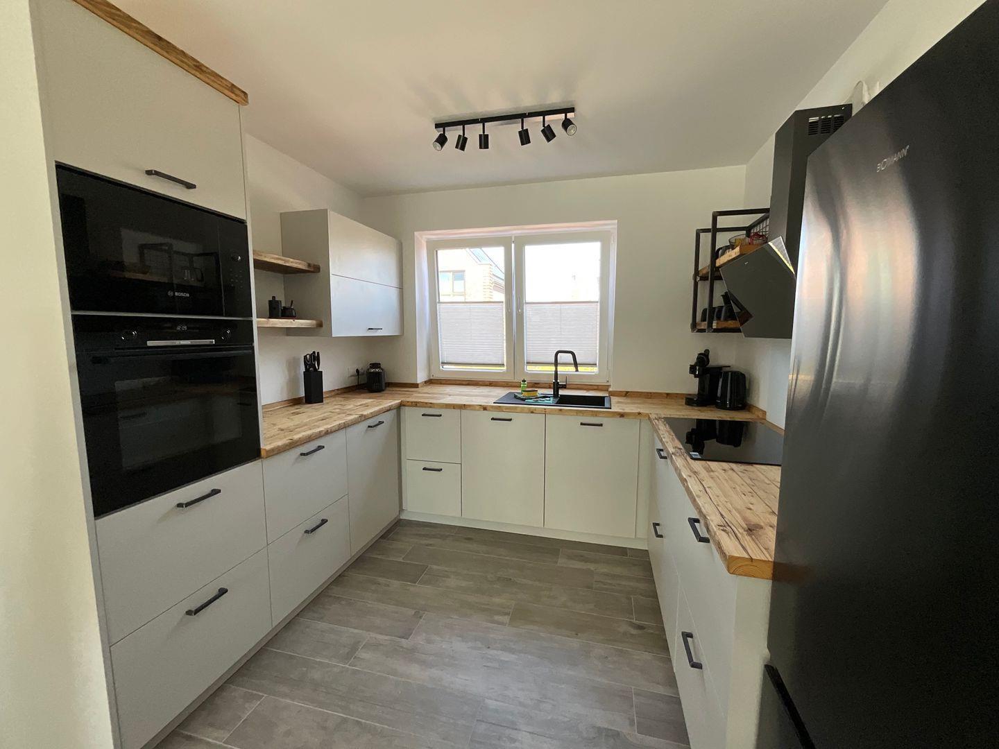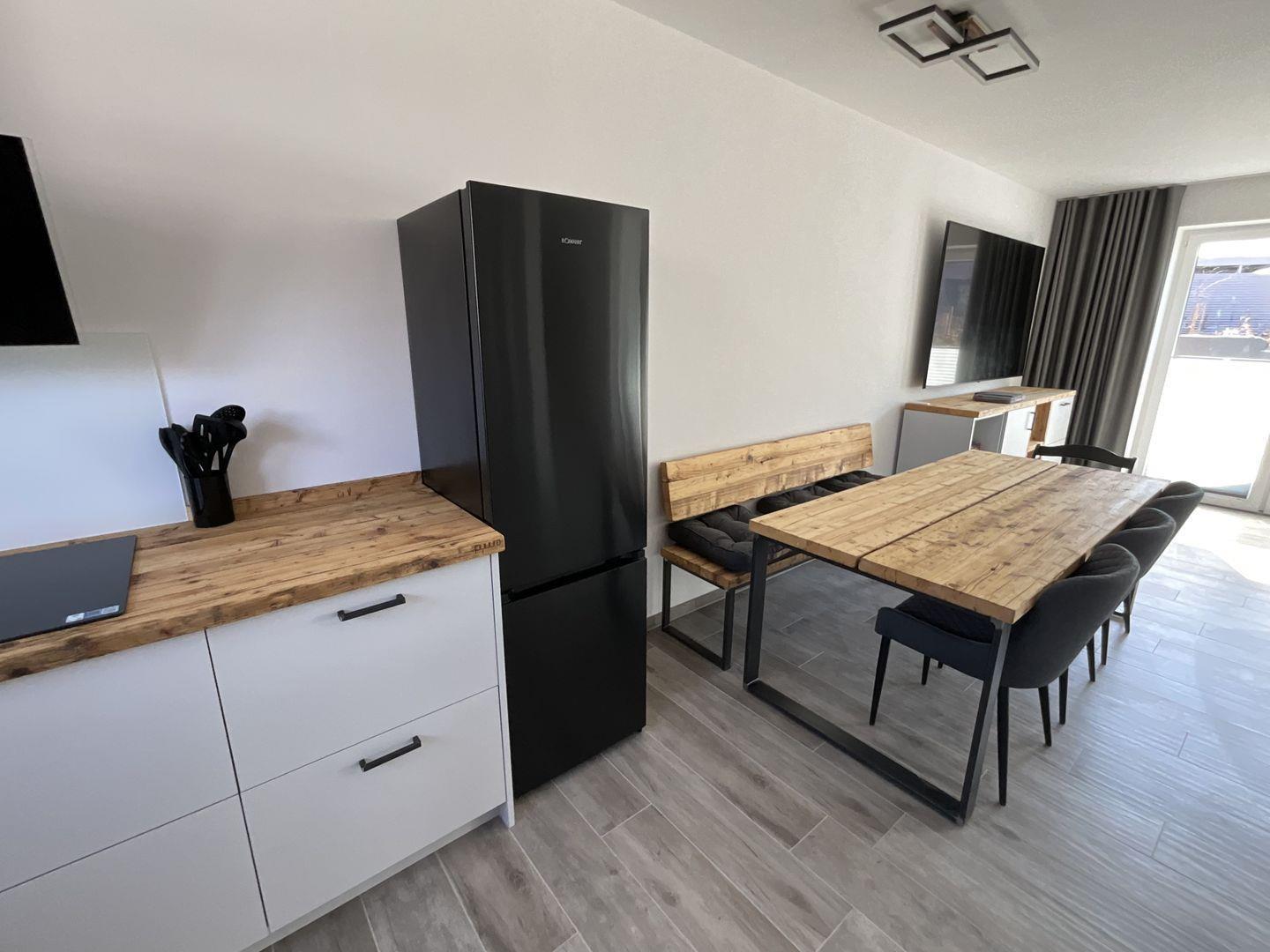 Das Haus ist modernen Standards entsprechend ausgestattet und bietet Ihnen Annehmlichkeiten, die Ihren Aufenthalt so angenehm wie möglich gestalten. Die offene Küche ist mit hochwertigen Geräten eingerichtet, einschließlich eines Cerankochfeldes, Backofens, Geschirrspüler, Kühlschrank mit Gefrierfach, Mikrowelle und Kaffeemaschine. Für gesellige Runden steht Ihnen ein Essbereich zur Verfügung, der bei Bedarf Platz für alle Gäste bietet.
