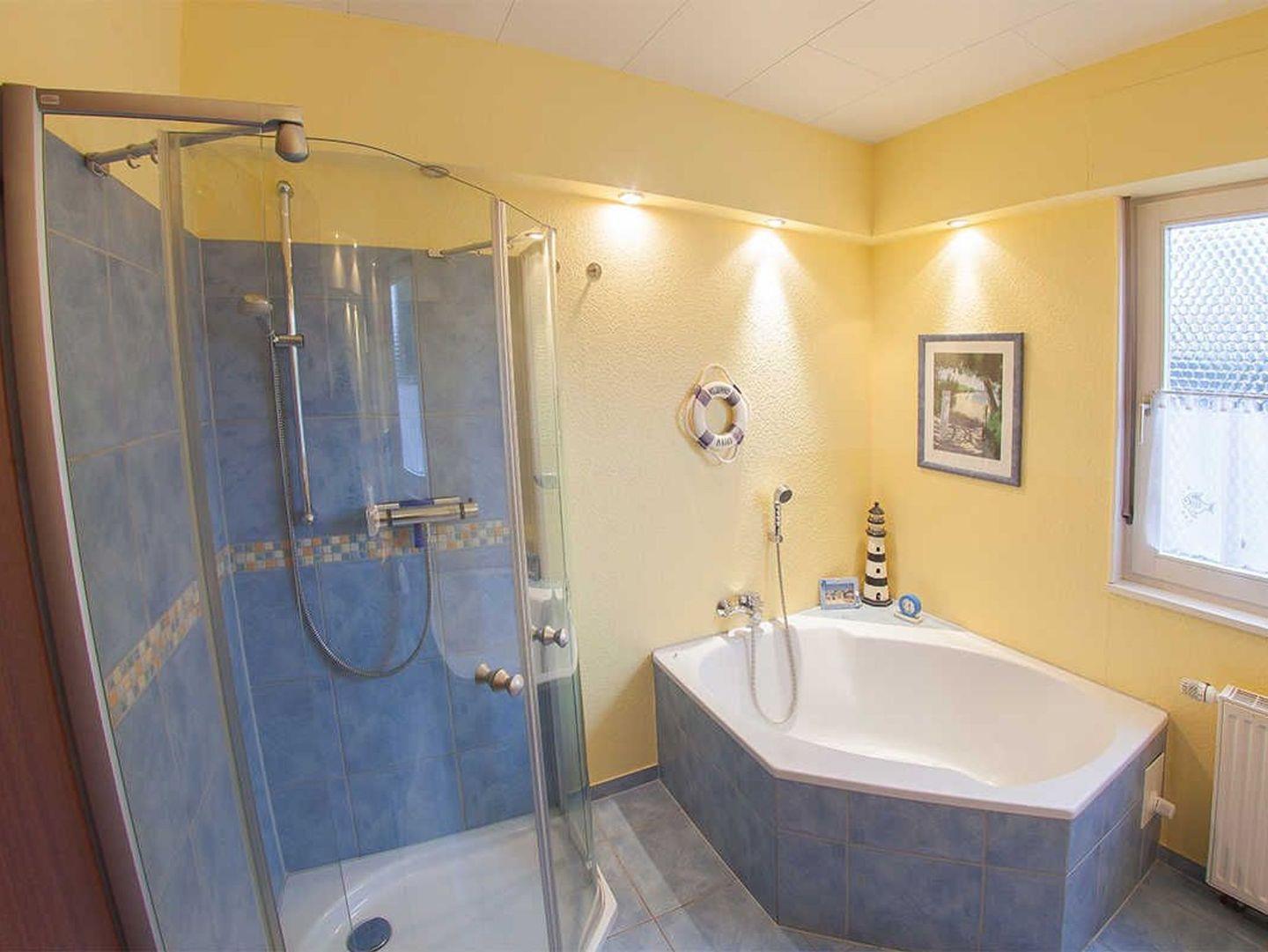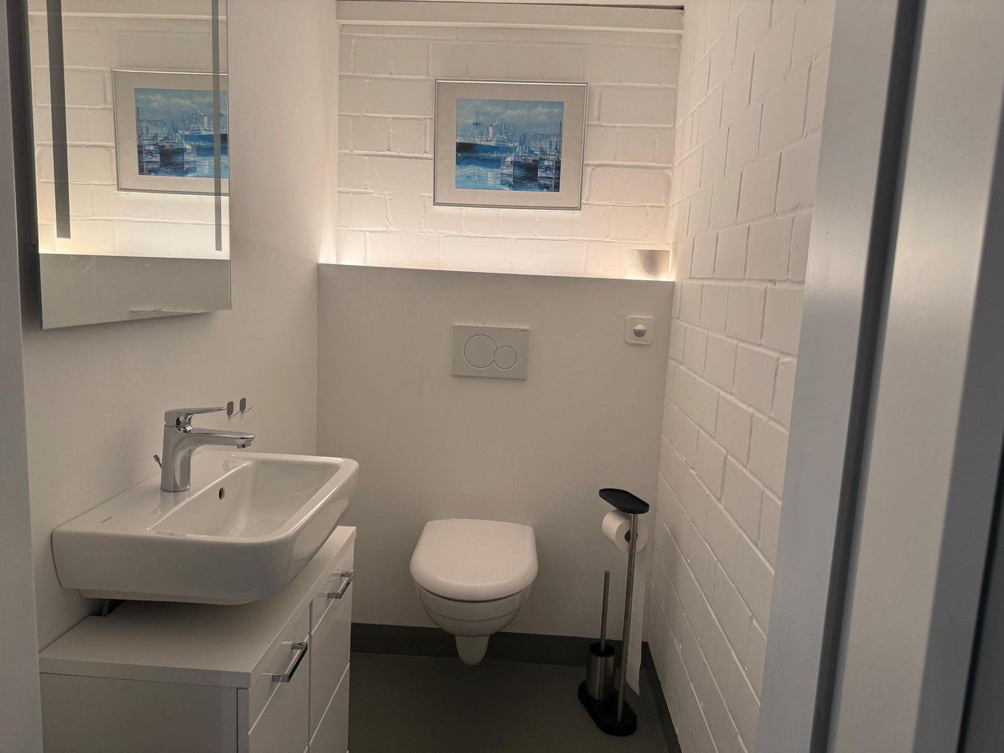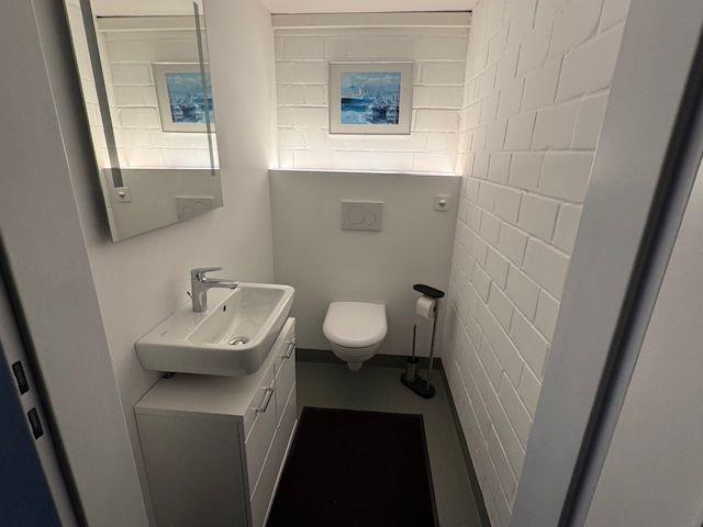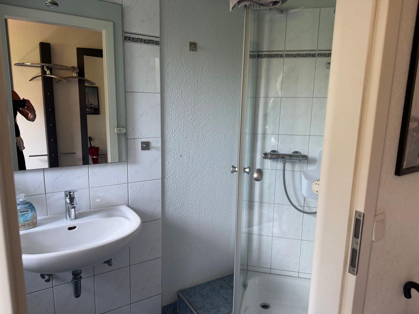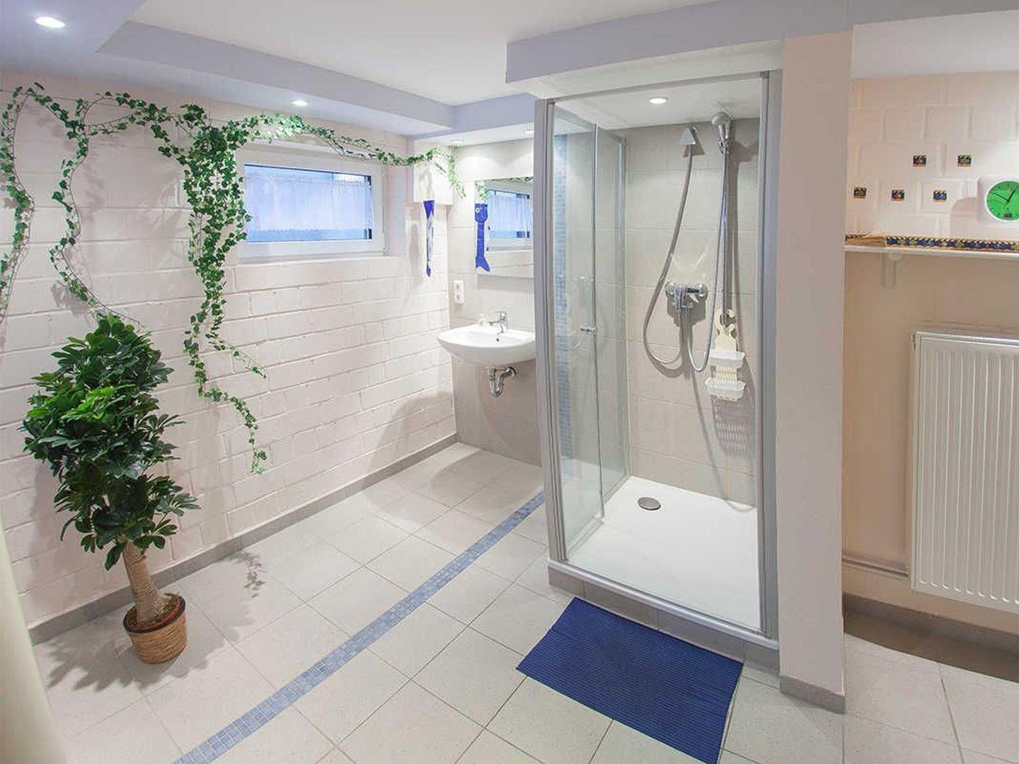 Am Ende einer Sackgasse liegt unser Haus mit der Wohnung Friesenblau EG. Die Wohnung im Erdgeschoss erreichen Sie über 4 kleine Stufen. Im großen Eingangsbereich mit Garderobe gibt es eine separate Dusche mit WC.