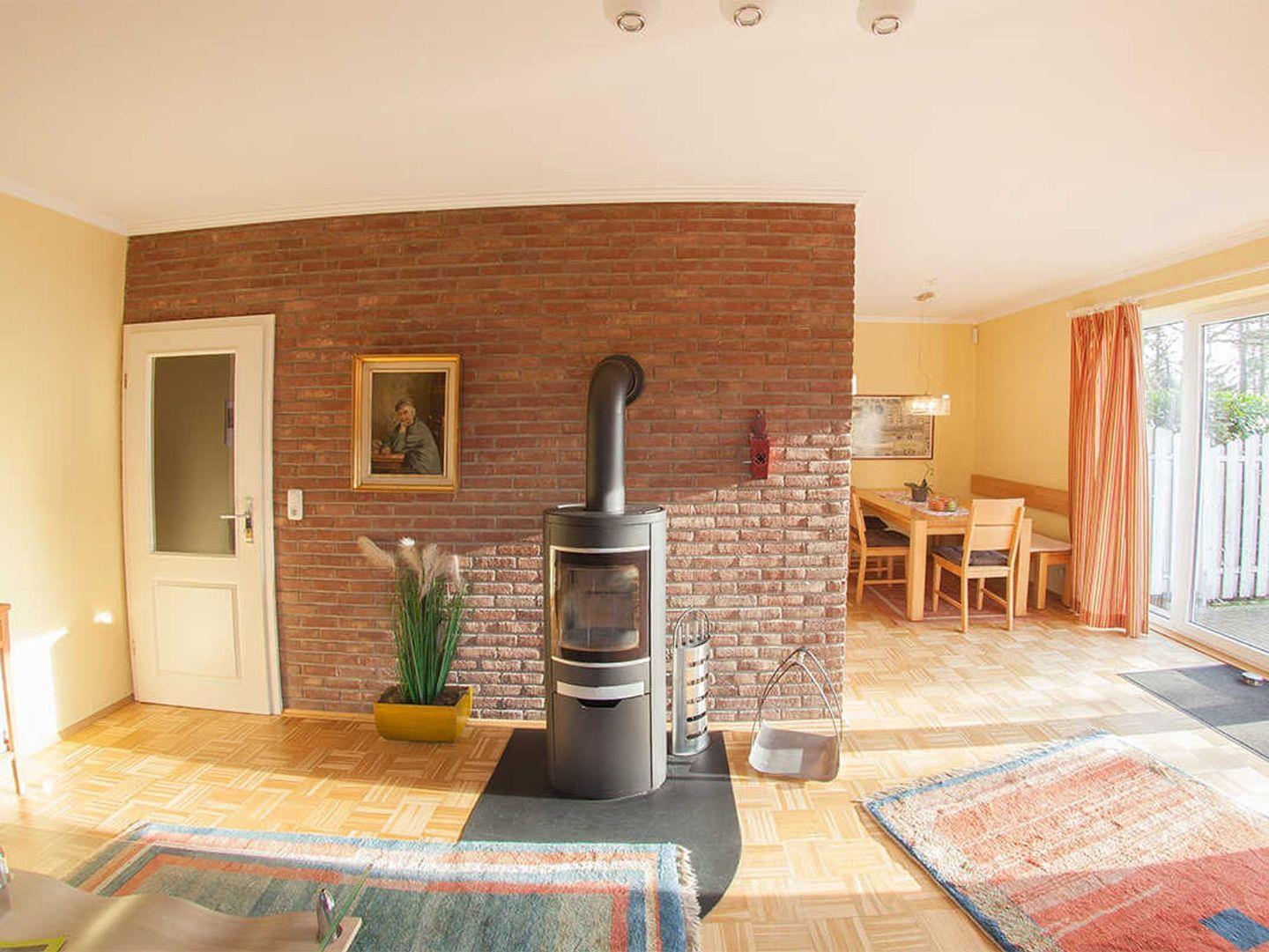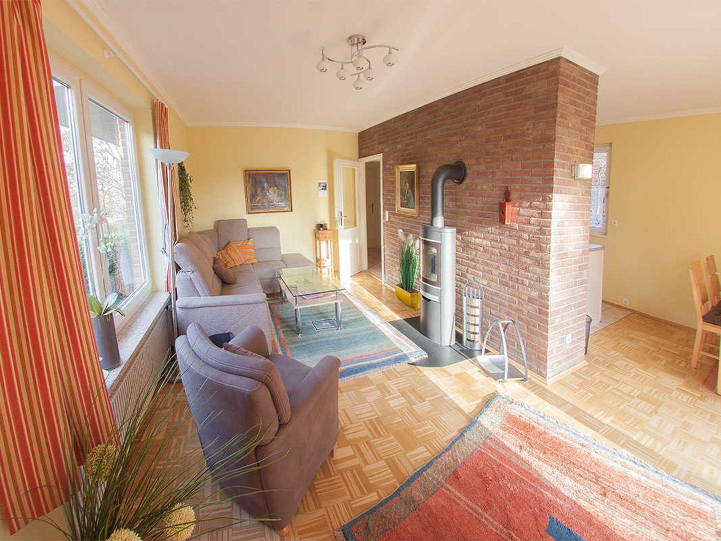 Durch den geräumigen Flur mit Garderobe und Gäste-WC gelangen Sie in den offenen Wohnbereich, der sich harmonisch anschließt an den Essplatz mit Küchenzeile. Getrennt durch eine Klinkerwand ist der Raum in U-Form gestaltet und vermittelt ein angenehmes Raumgefühl. Hier geht es auch hinaus auf die Süd-Terrasse. Der große Garten bietet ein Gartenhaus nebst Brunnen und Kamingrill.