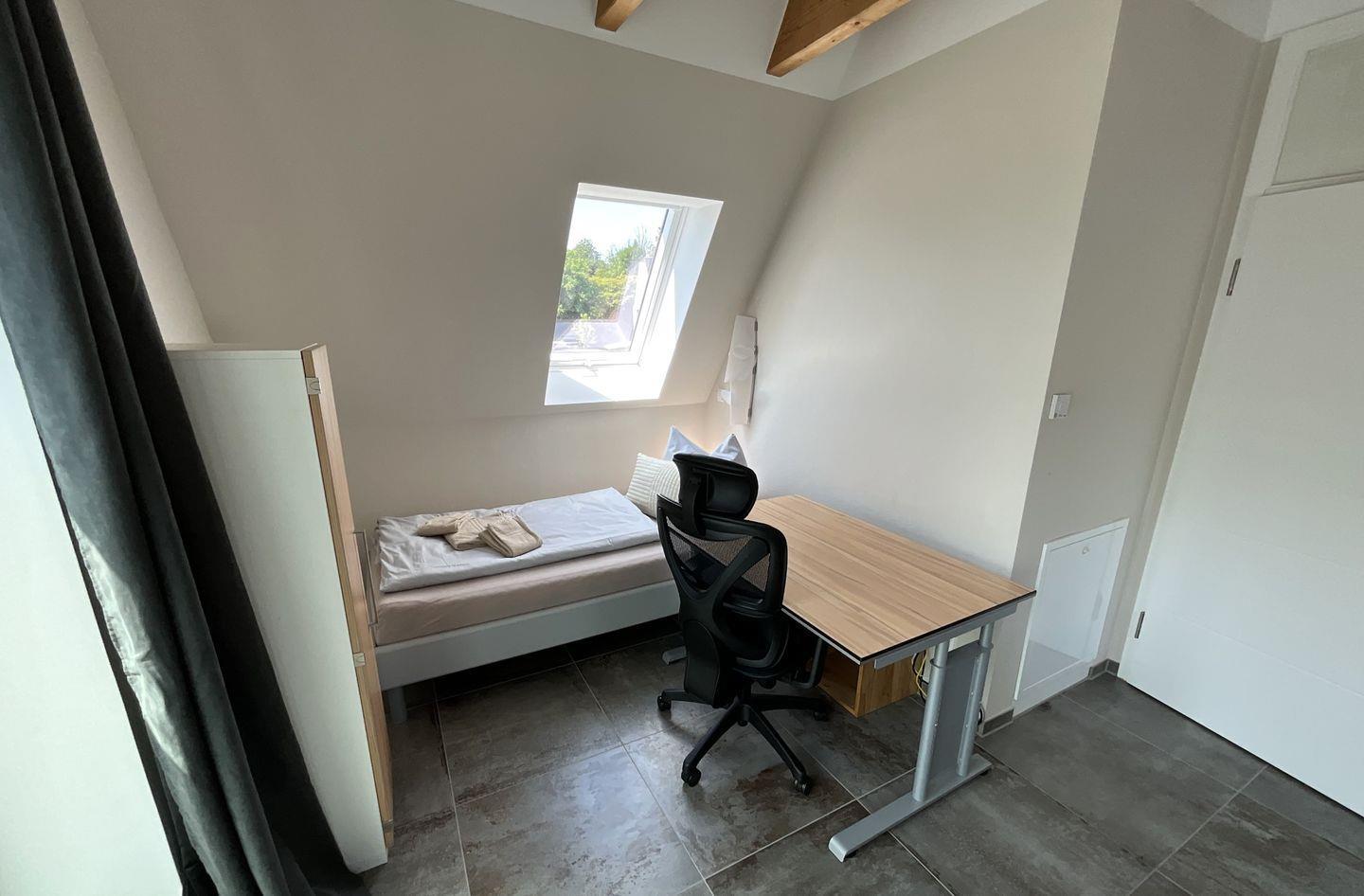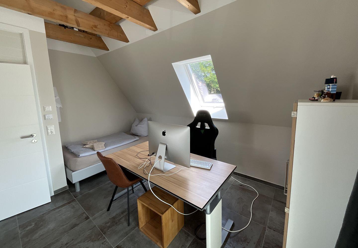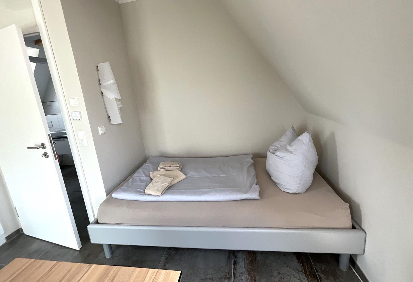 Schlafzimmer 2: 2 Einzelbetten (2 Einzelmatratzen je 90x200cm), Nachttische, Leselampen, Kleiderschrank, 2 Schreibtische (Workstation)