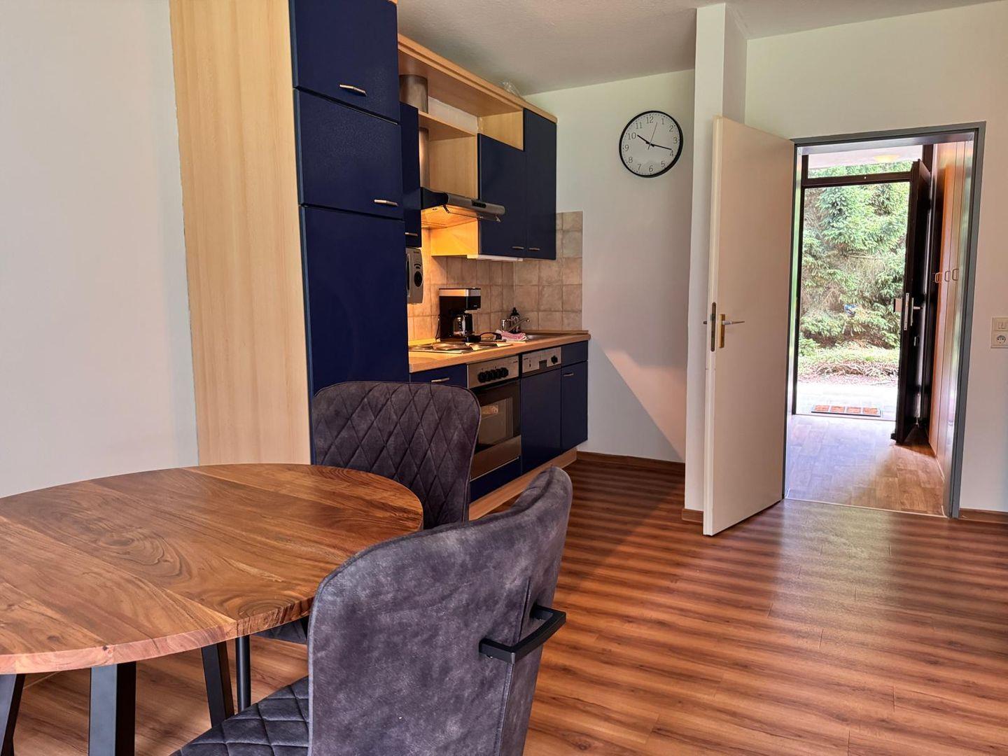 Die offene Küche (Küchenzeile) zum Wohnzimmer ist vollständig ausgestattet und überzeugt mit modernen Geräten: Hier stehen Ihnen ein Ceranherd, ein Backofen, ein Kühlschrank sowie eine Spülmaschine zur Verfügung. Ergänzt wird die Küchenausstattung um Küchenutensilien, Geschirr, Besteck, Kaffeemaschine, Toaster und Wasserkocher – somit lassen sich alle Mahlzeiten unkompliziert zubereiten. Ein eigener Essbereich mit Esstisch bietet Platz für gemütliche Stunden beim Frühstück oder Abendessen.